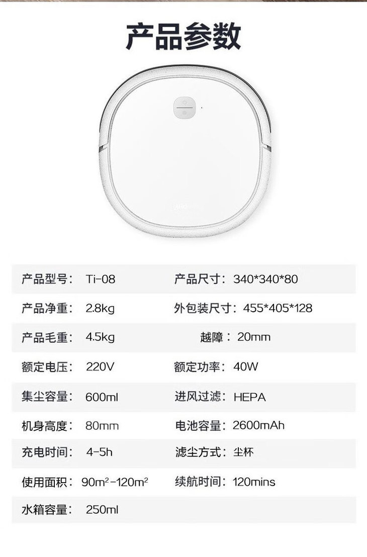 美的扫地机器人吸扫拖一体持久续航APP智控定时智能防撞Ti-08W