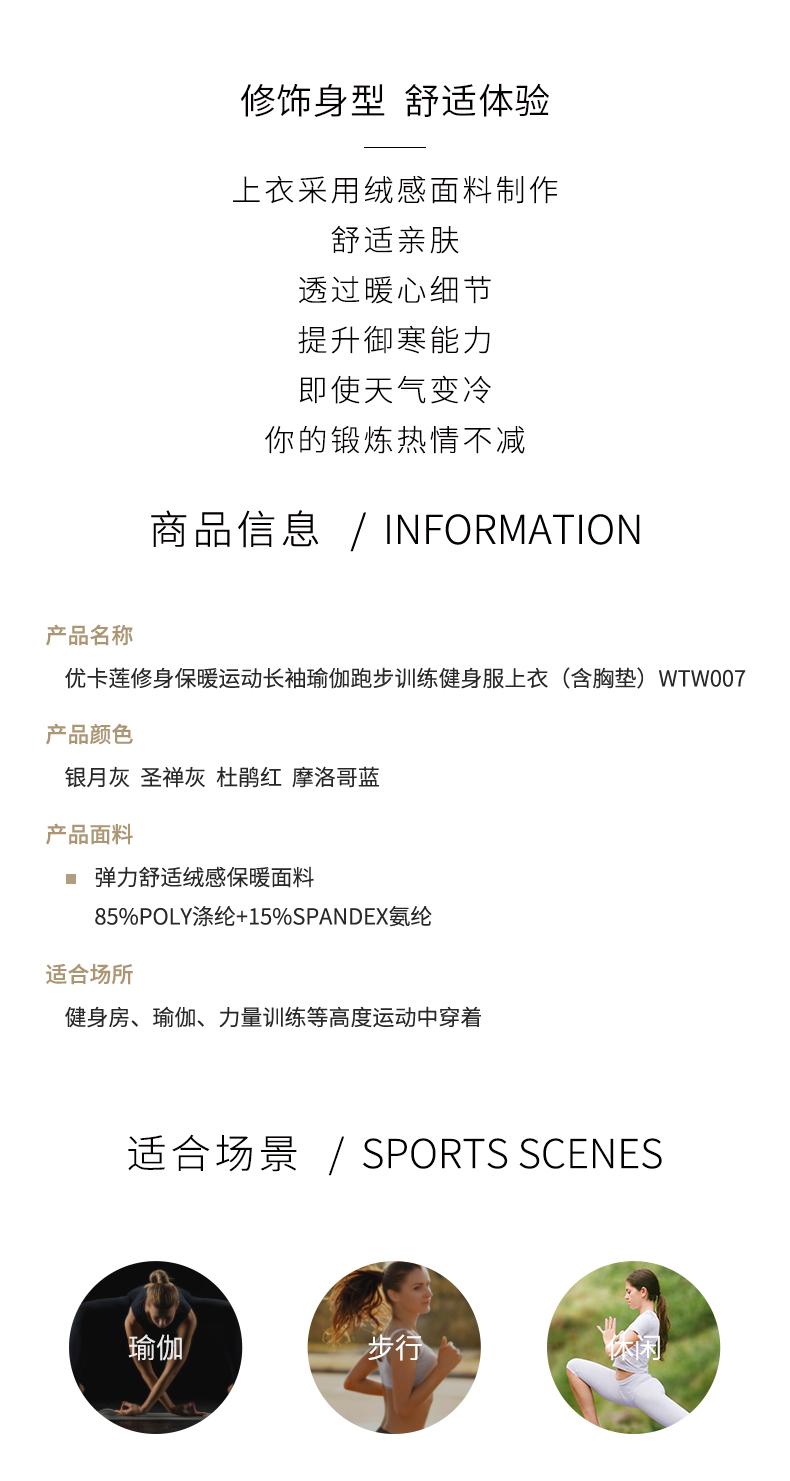 优卡莲修身保暖WTW007运动长袖瑜伽跑步训练健身服上衣(含胸垫)