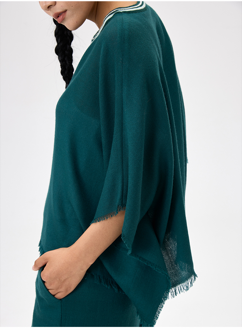 羊绒夹道圆领斗篷式女上衣 SJF97W366A