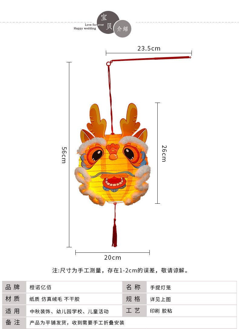 中秋节兔子灯笼手提发光儿童舞龙国潮绒毛摆摊手工 diy材料包纸灯中秋节灯笼兔子灯笼中秋挂饰手提花灯宫灯儿童diy手工制作材料包