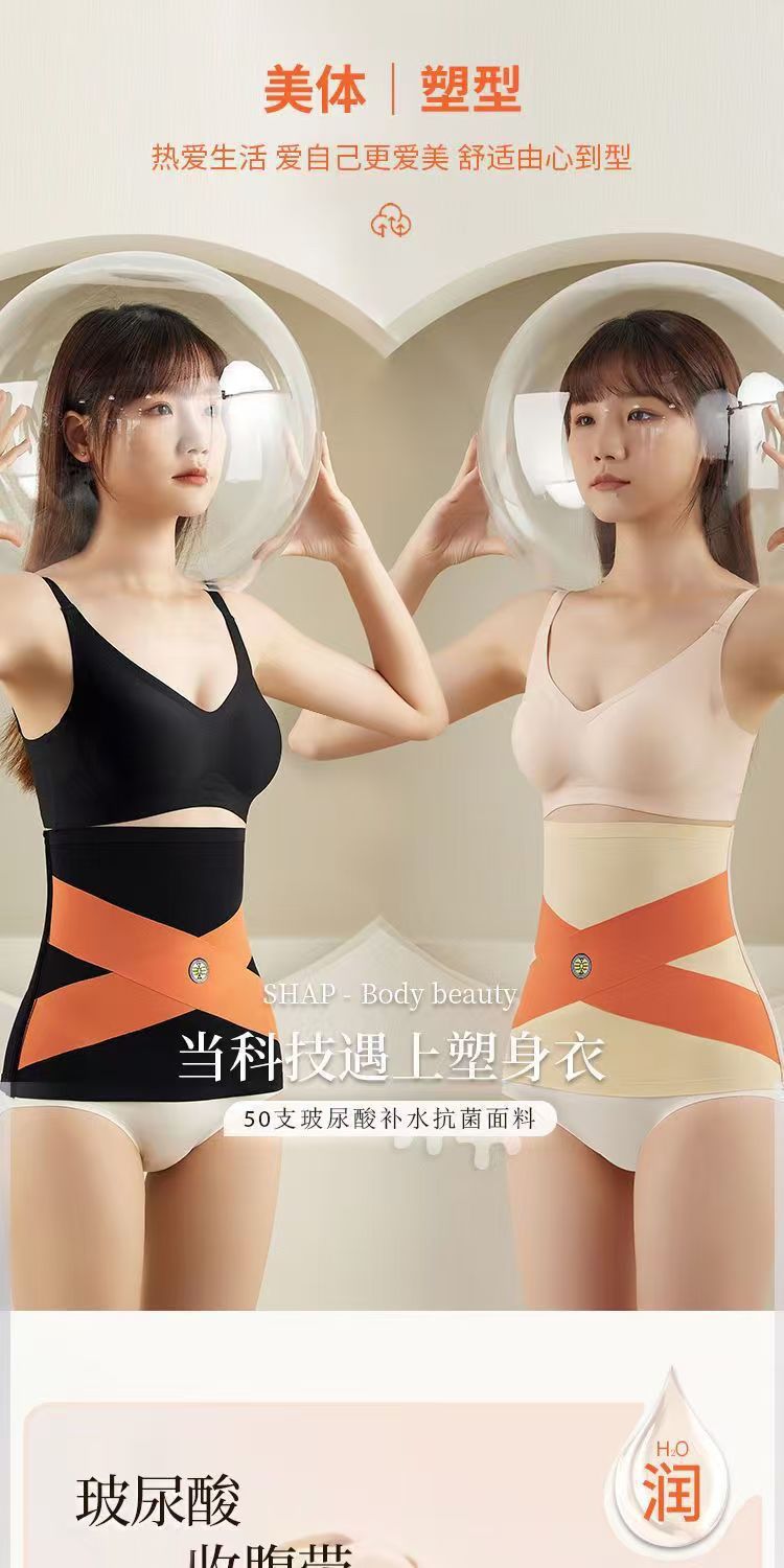 【秒变小妖精❗️玻尿酸收腹带】升级柔软透气冰丝面料,亲肤贴合无压力,不刺痒/敏感肌可穿,女士收腹腰带交叉护腰带贴身收腰带塑身腰封弹力收小肚子L