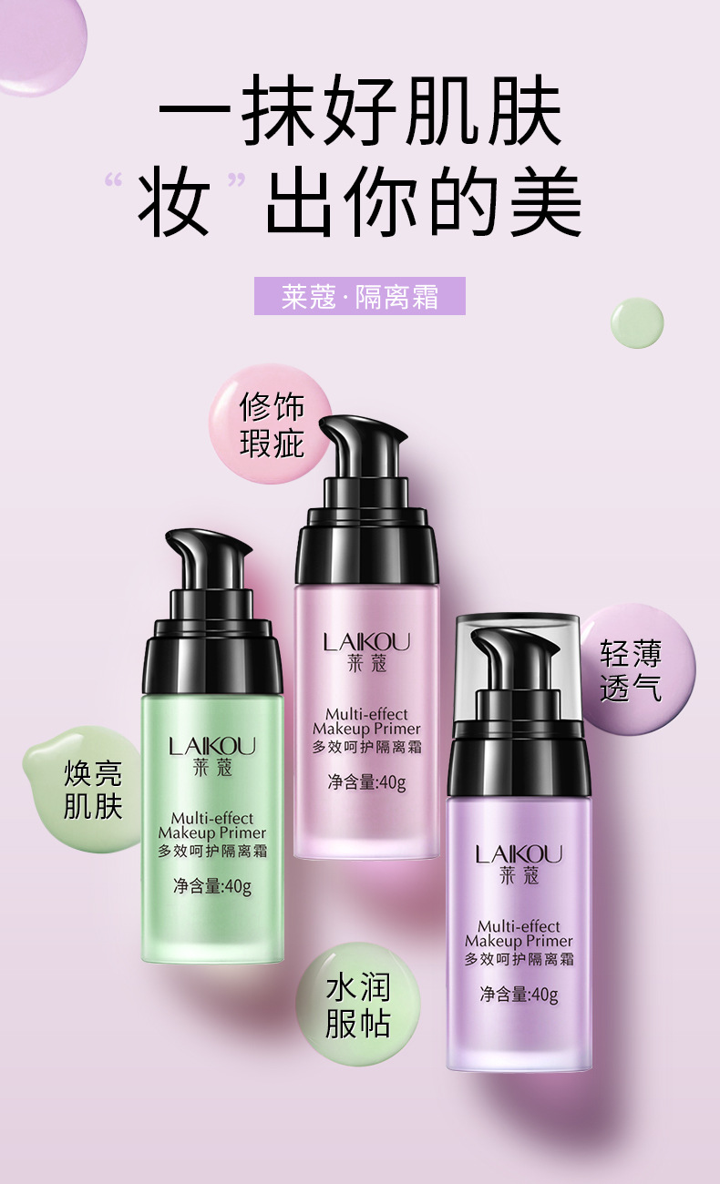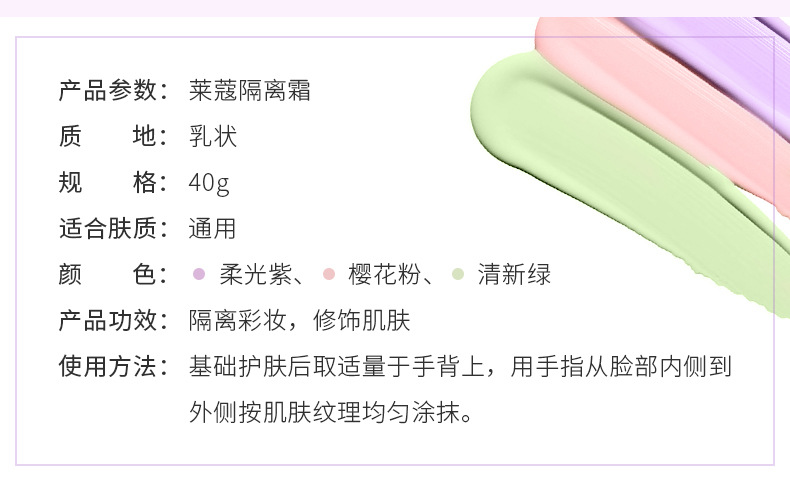 【美妆个护】莱蔻隔离霜三色红绿紫色 打底保湿自然妆容 妆前乳学生