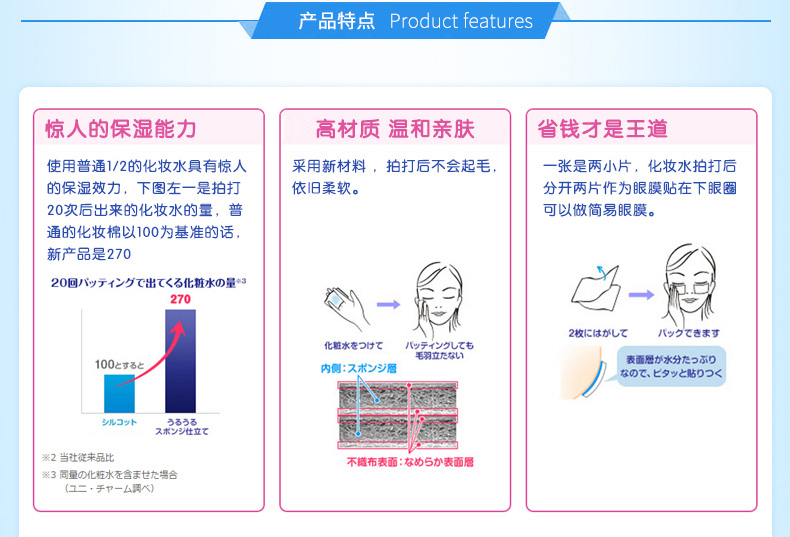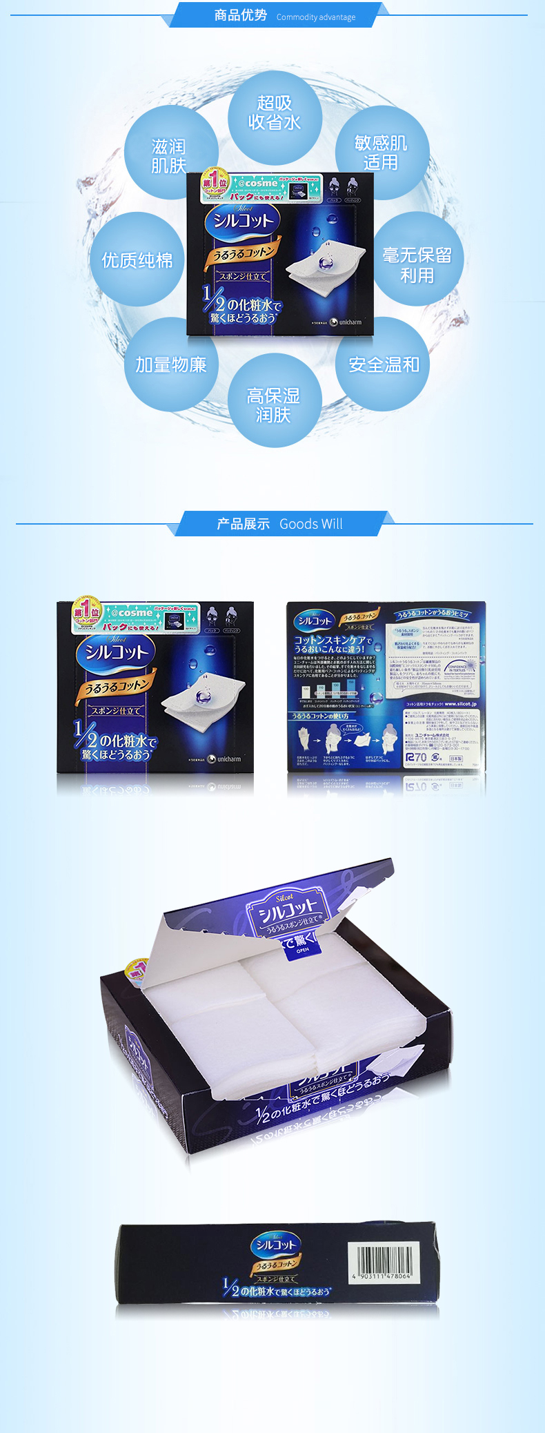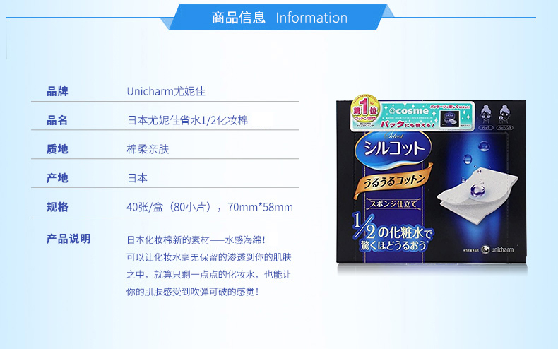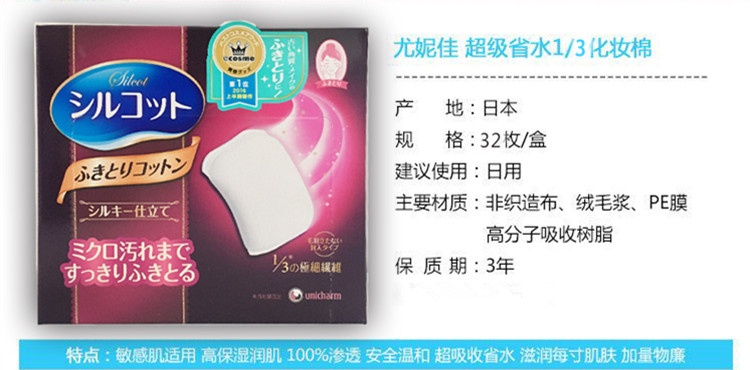 日本 cosme大赏Unicharm尤妮佳超吸收省水化妆卸妆棉40枚