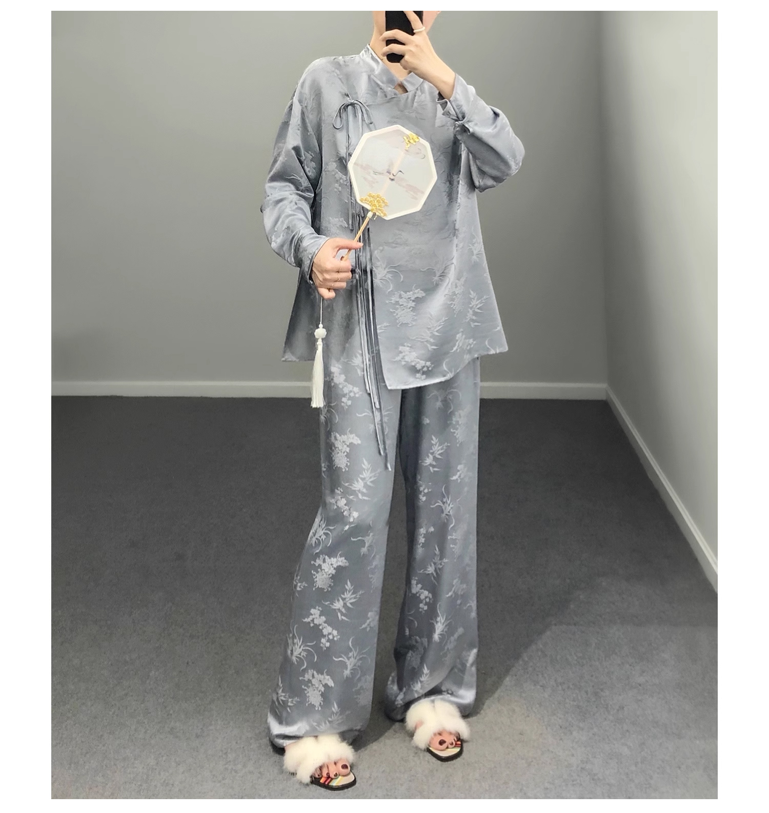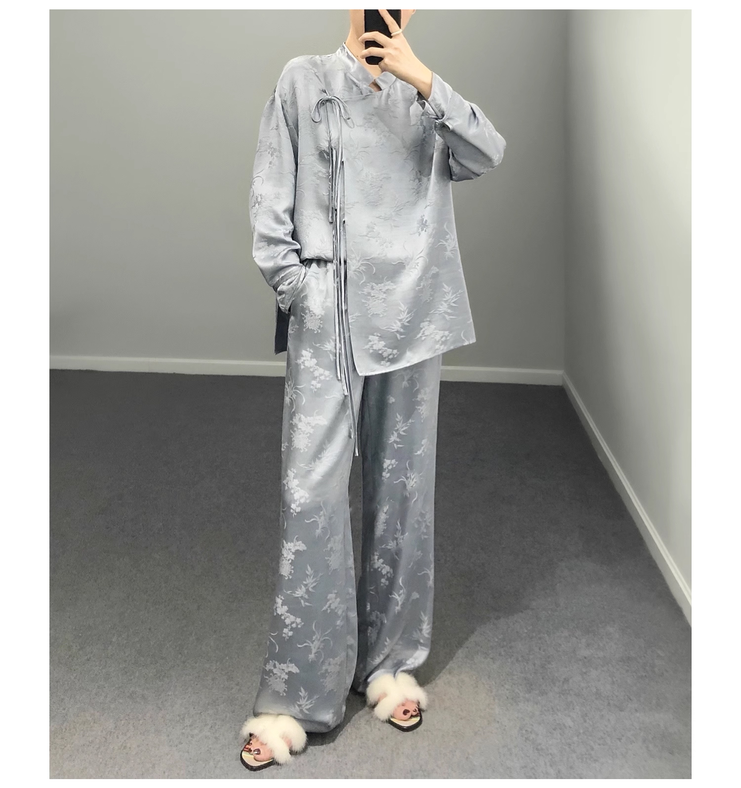 裁缝学苑AS184提花中式斜襟套装纸样女装上衣阔腿裤子裁剪版型