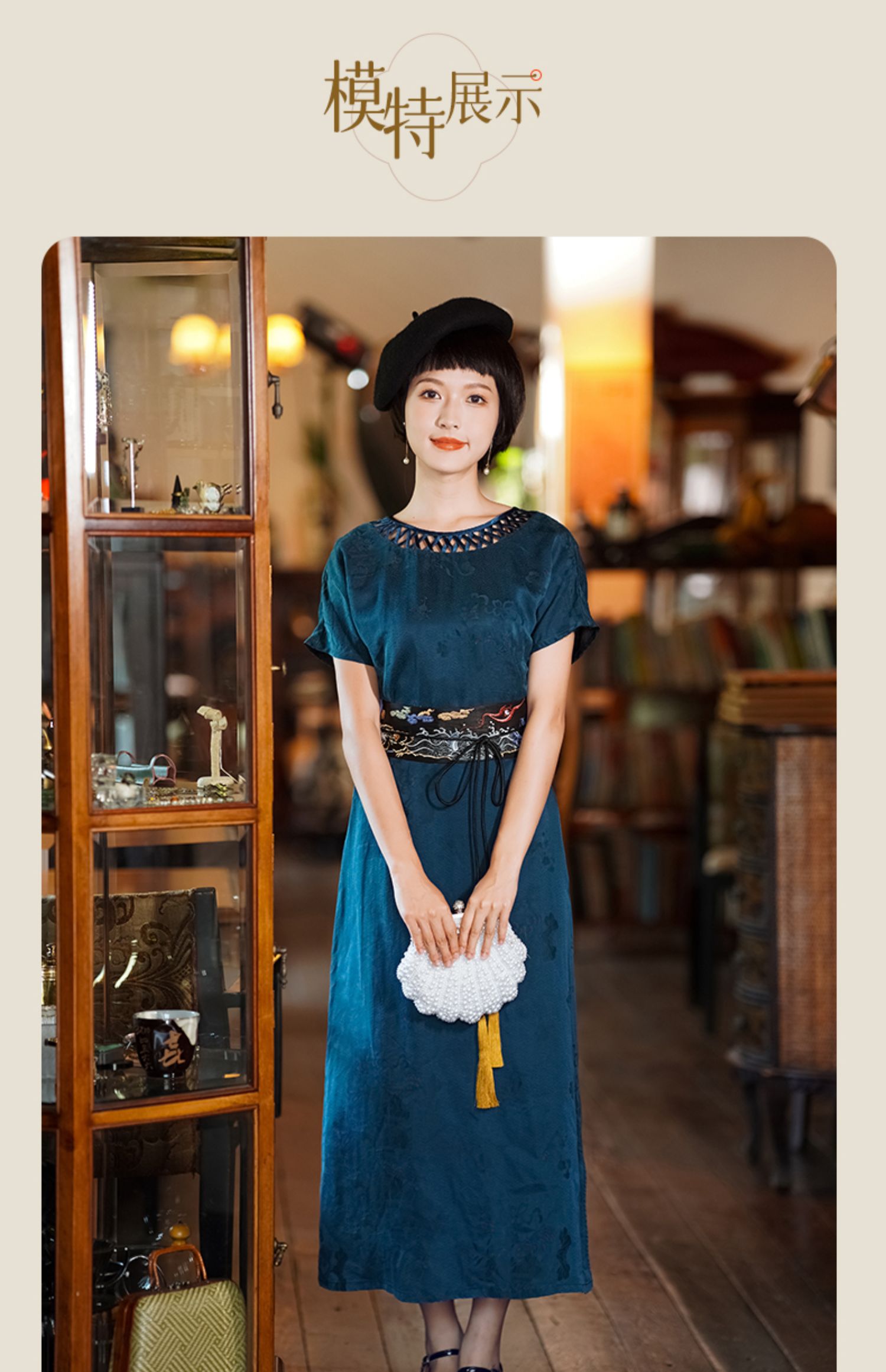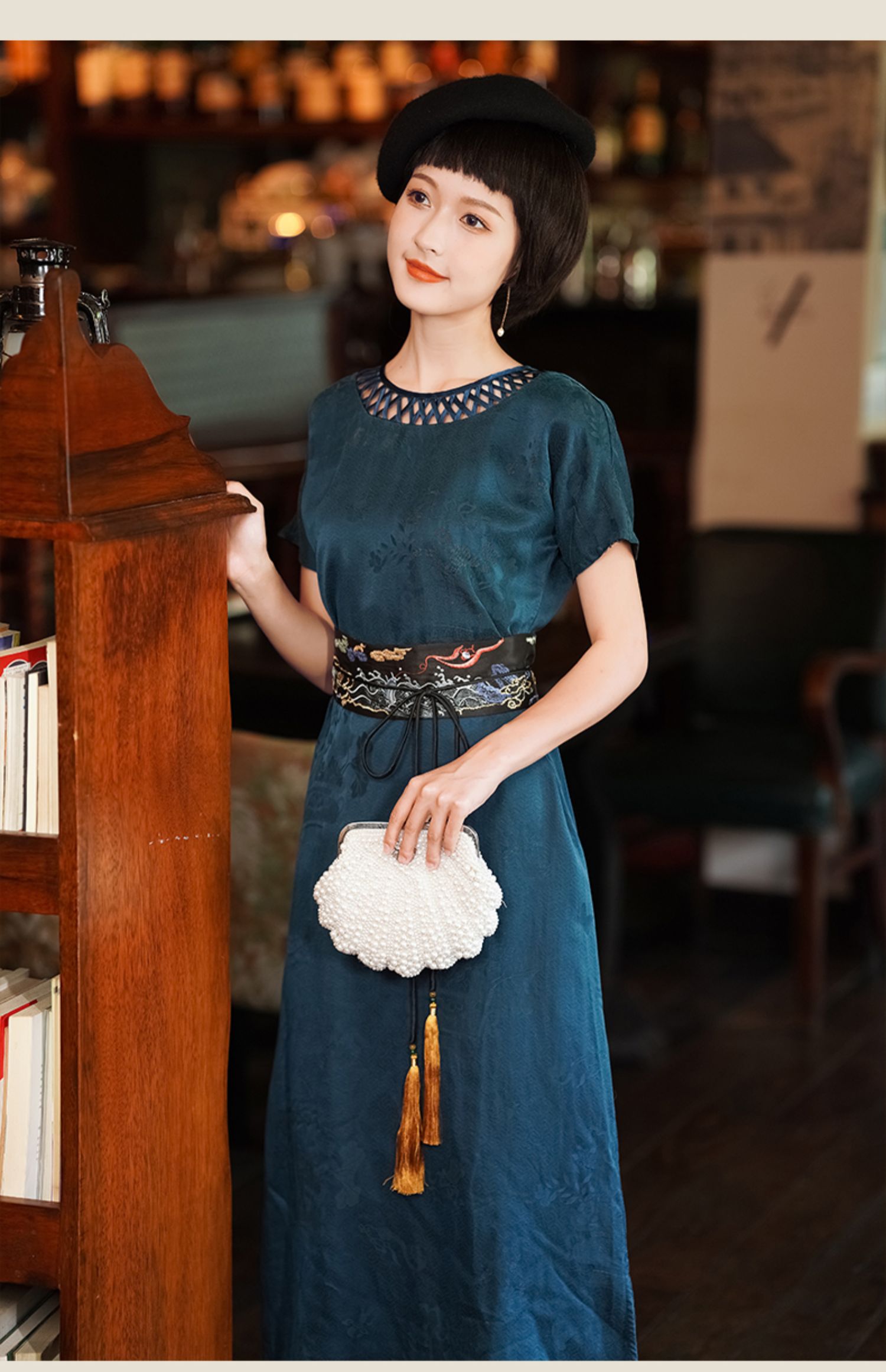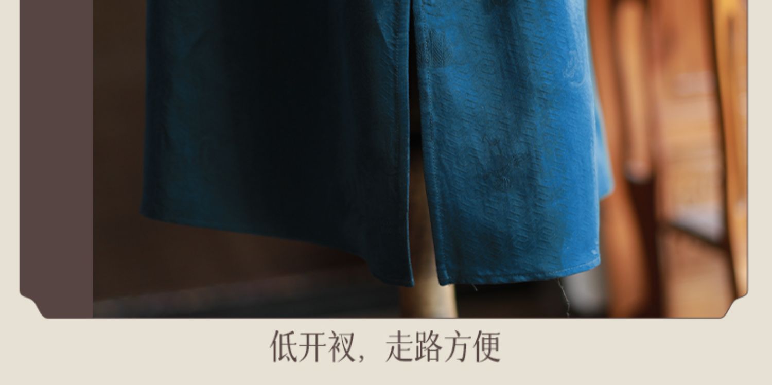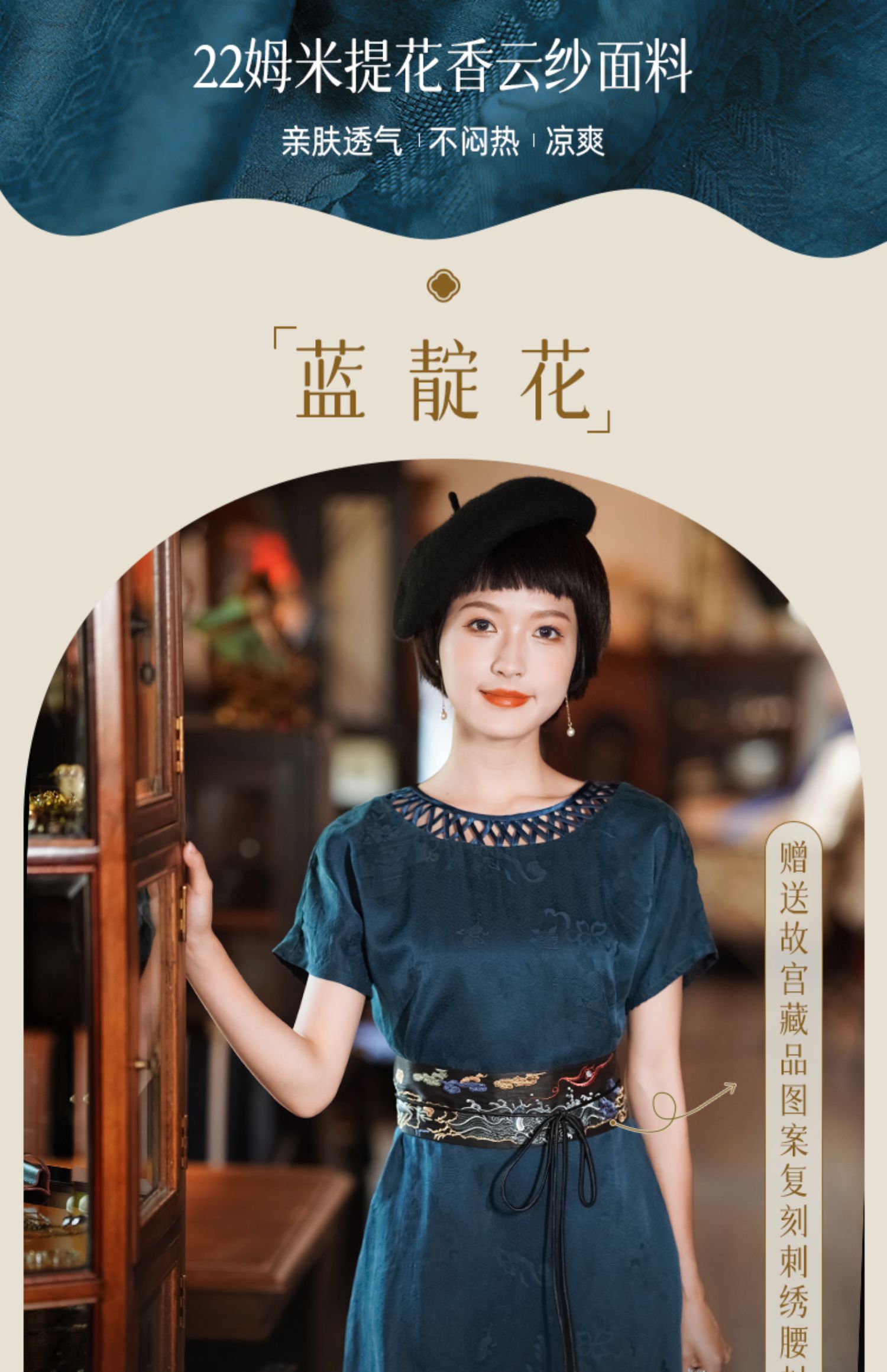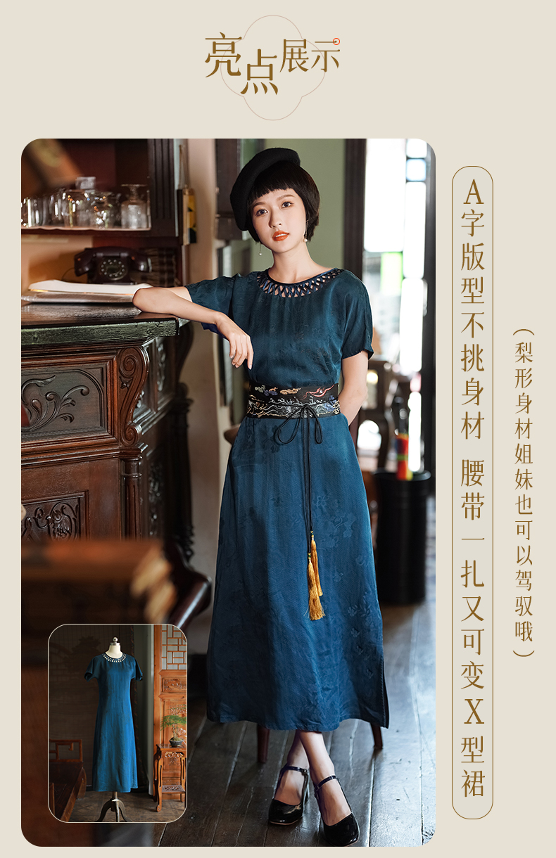 逸红颜明月优选#温婉新中式古董裙「瓷梦」淑女灵动蝴蝶结领,收腰显瘦微鱼尾