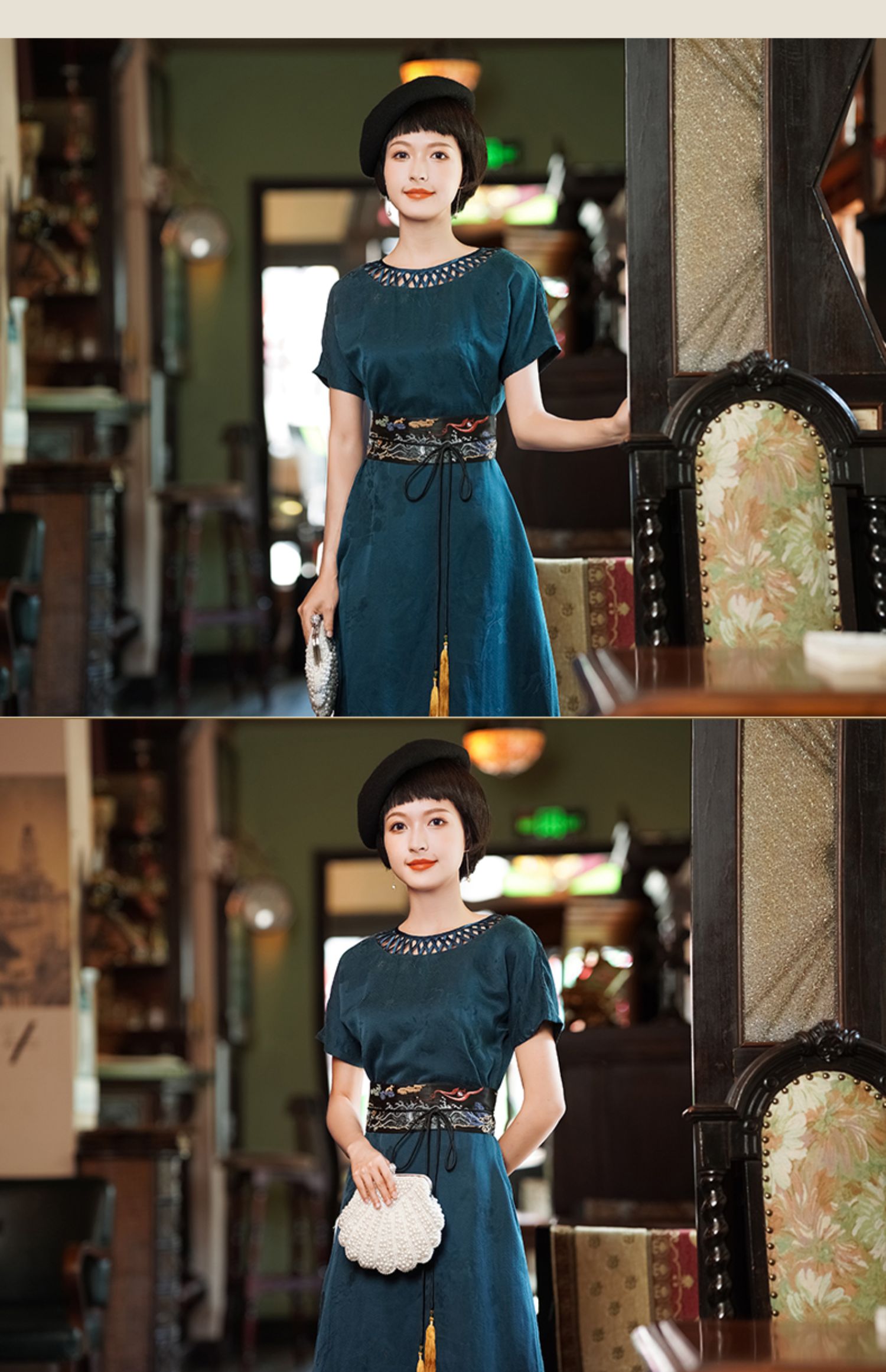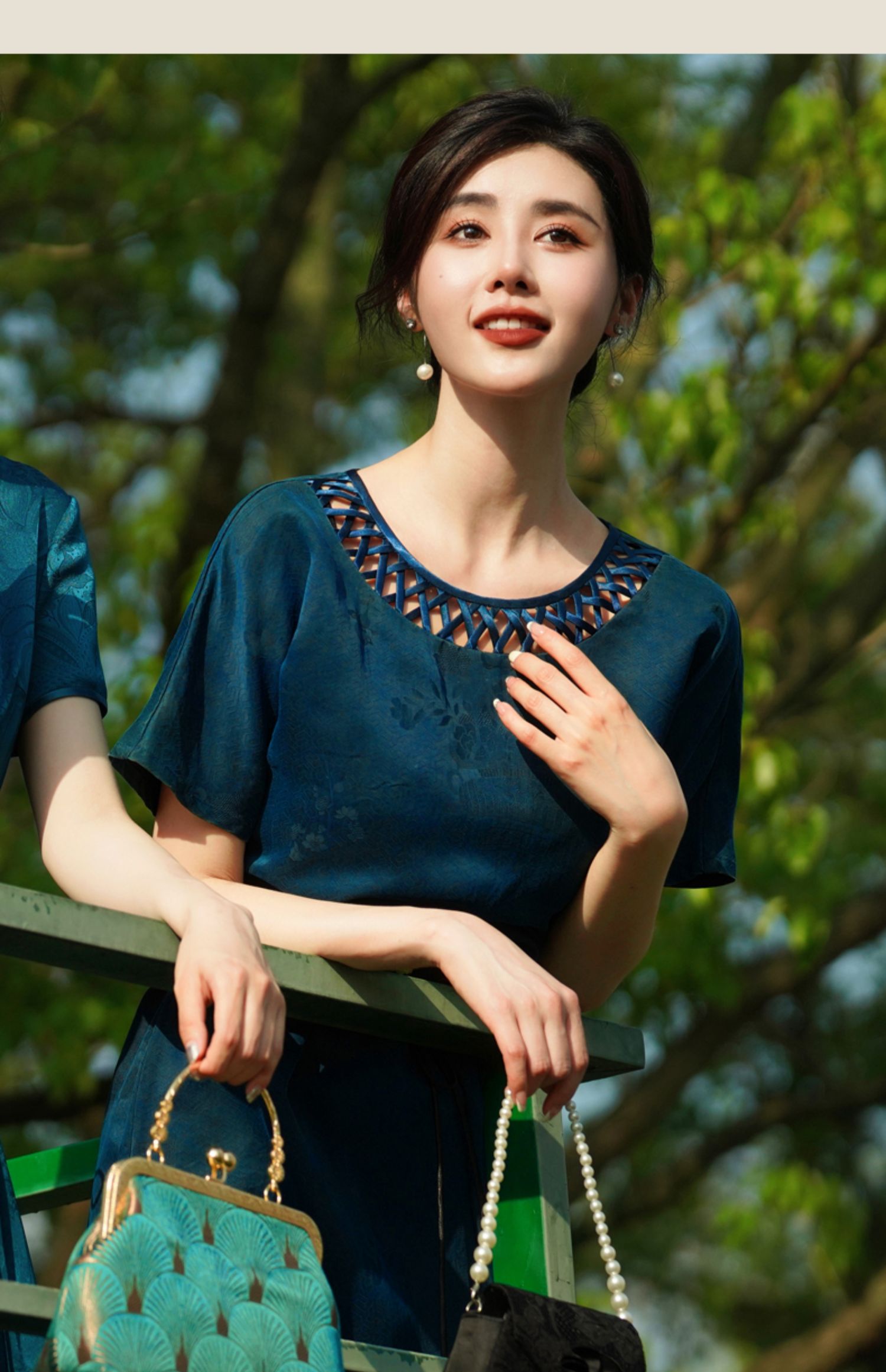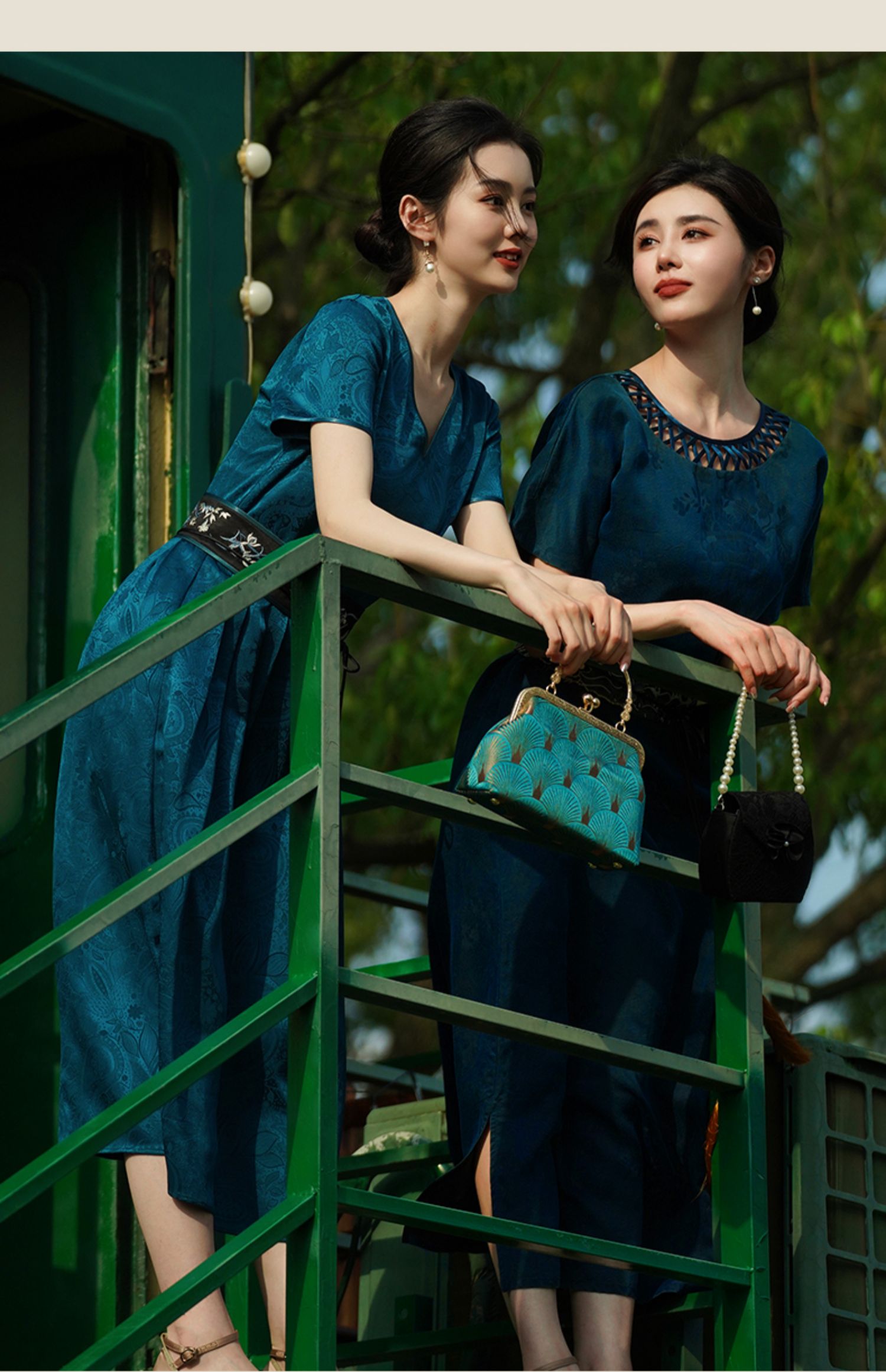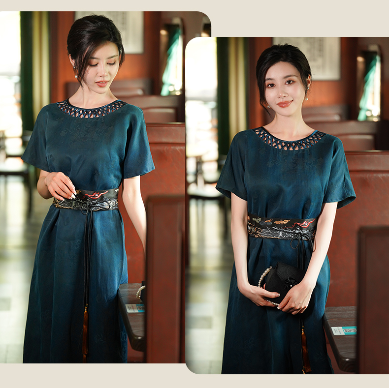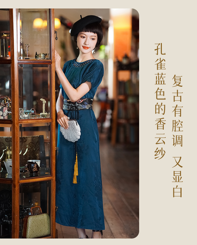 逸红颜明月优选#温婉新中式古董裙「瓷梦」淑女灵动蝴蝶结领,收腰显瘦微鱼尾