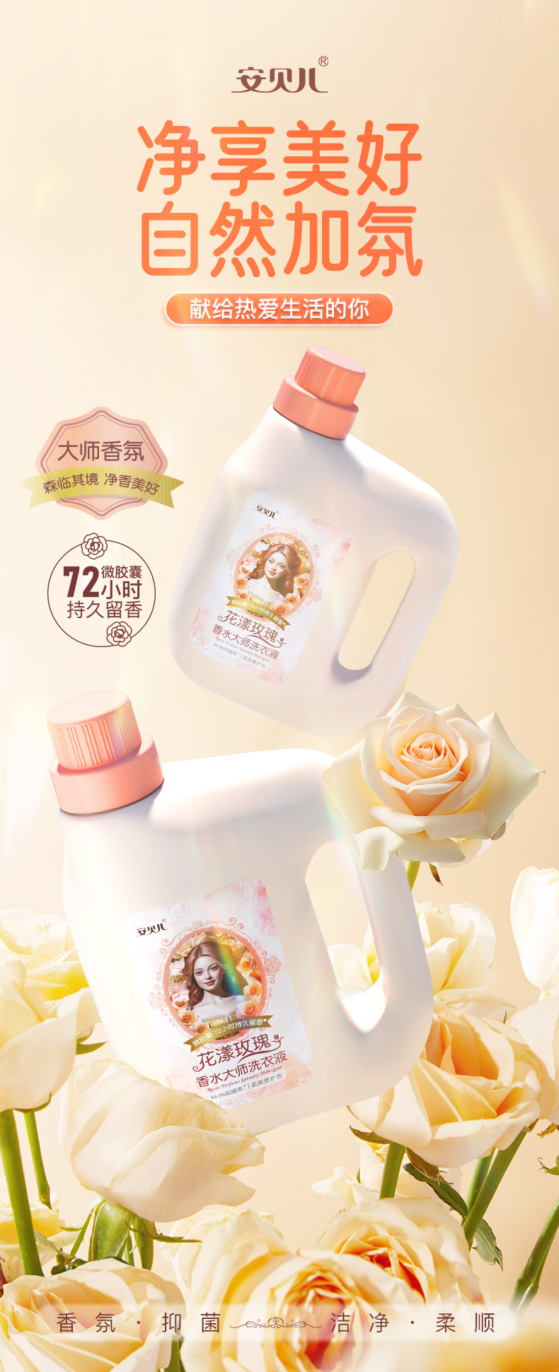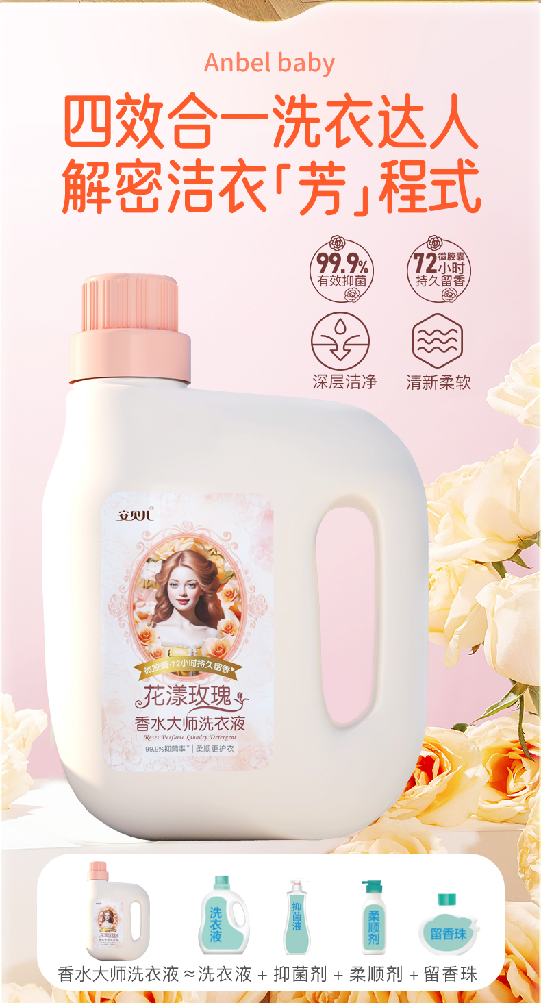 安贝儿花漾玫瑰香水大师洗衣液2L买一送一