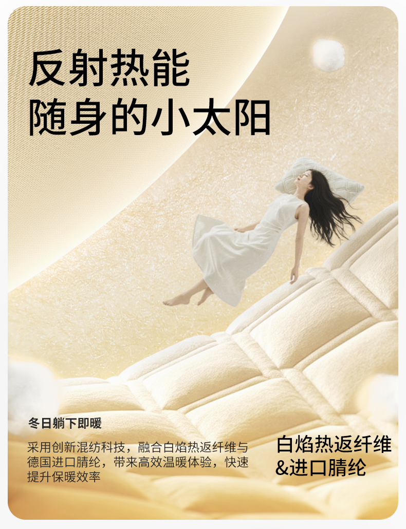 [屁侠推荐]一默 糯糯抗jun暖垫 自发热混纺科技 白焰热返纤维与腈纶 高效温暖体验快速升温,添加桑蚕丝 ;Lastin德国抗jun纤维 ;A类母婴级可机洗