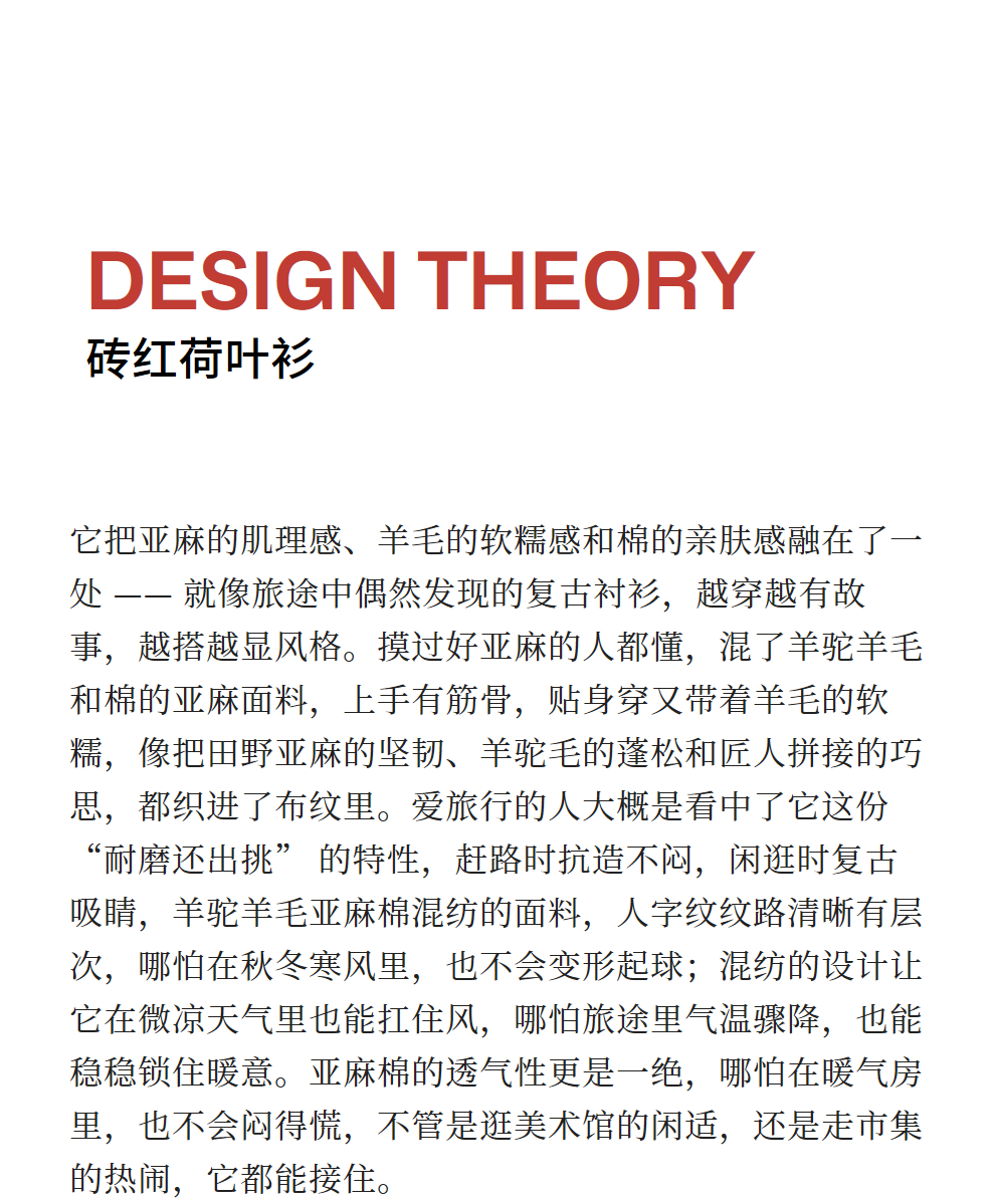以天然亚麻为载体,融合热烈色彩与自在剪裁为身在城市、心怀远方的女性提供兼具美学与舒适的旅行着装