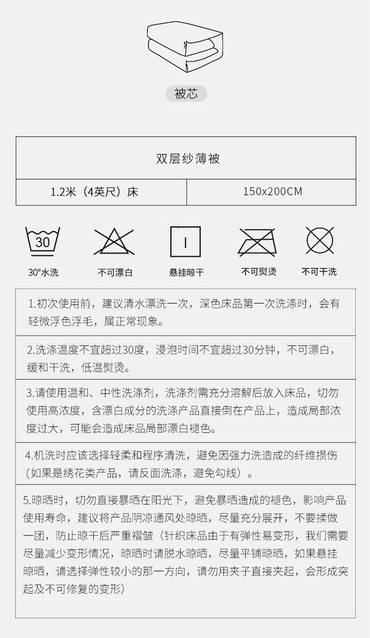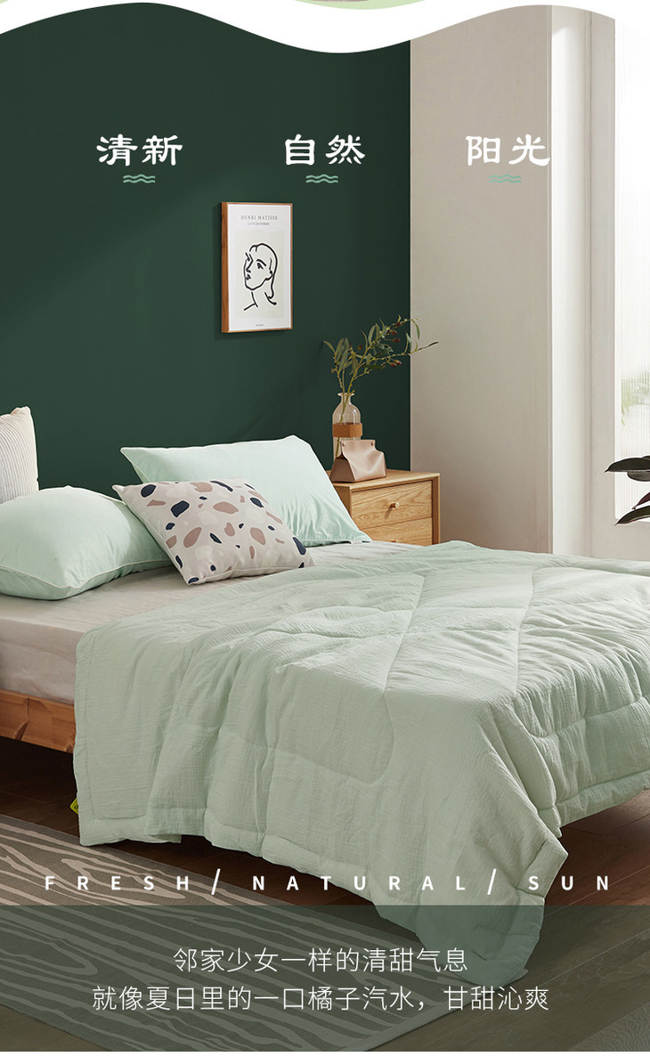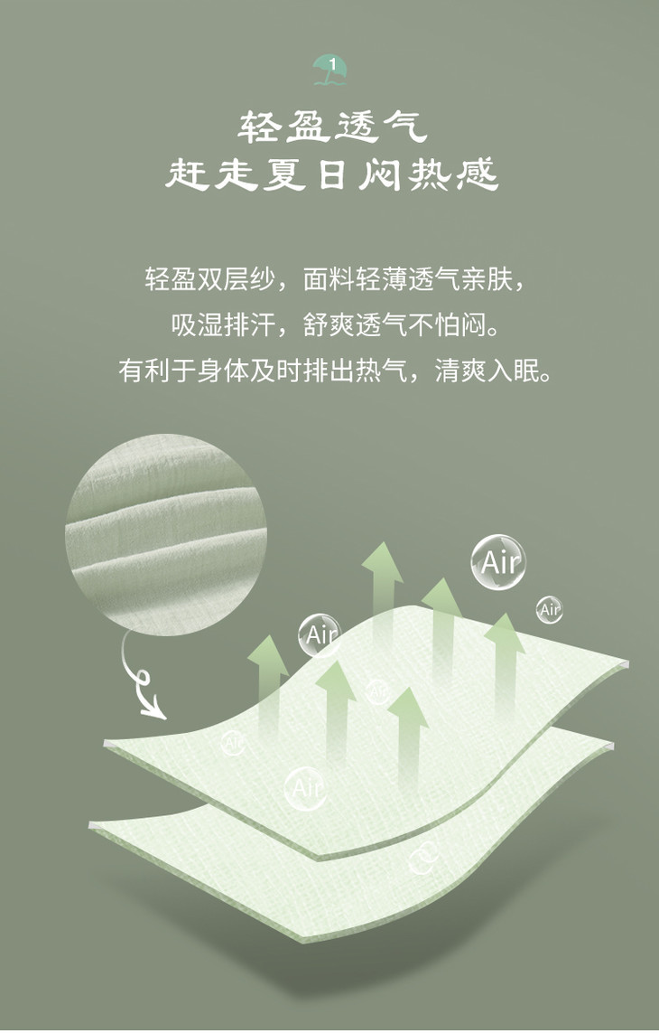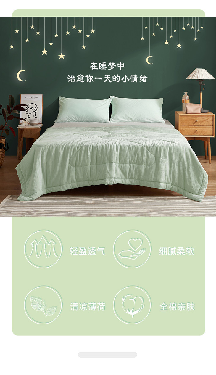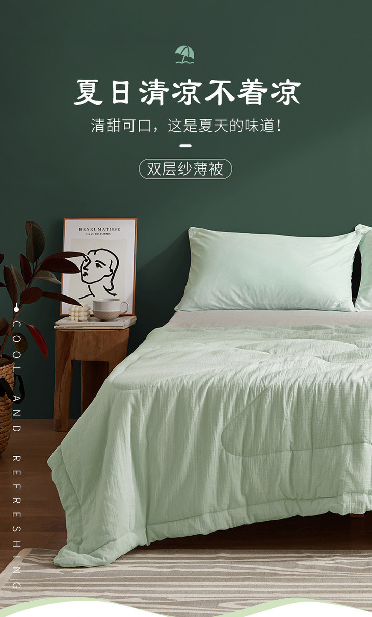 大朴A类双层纱纤维薄被,夏季空调被单,双人清爽透气,亲肤舒适,可水洗夏被