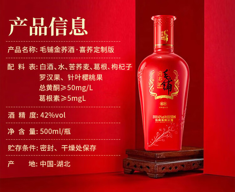 毛铺喜荞酒(金荞)42度500ml 盒装 荞香型 宴请 接待 送礼