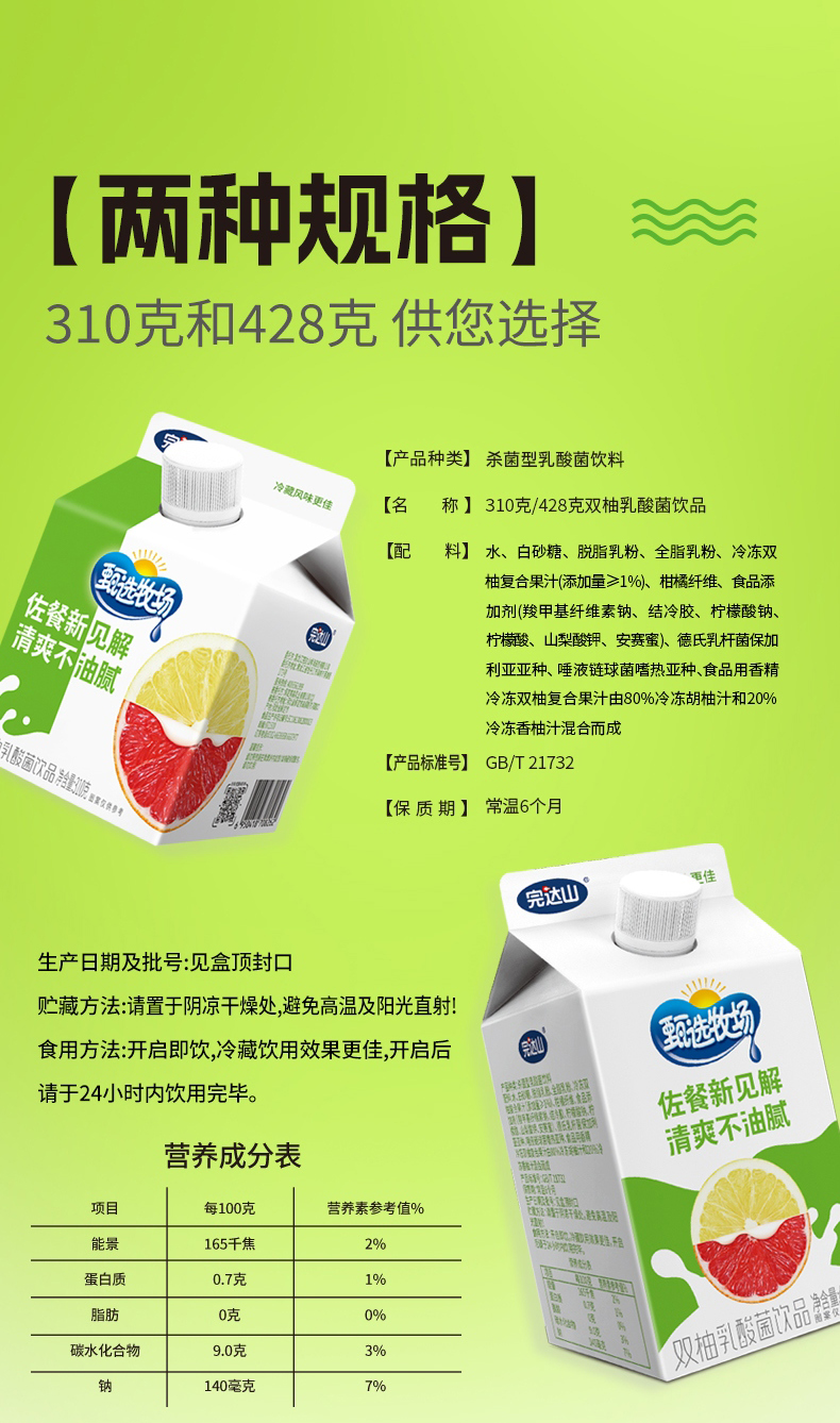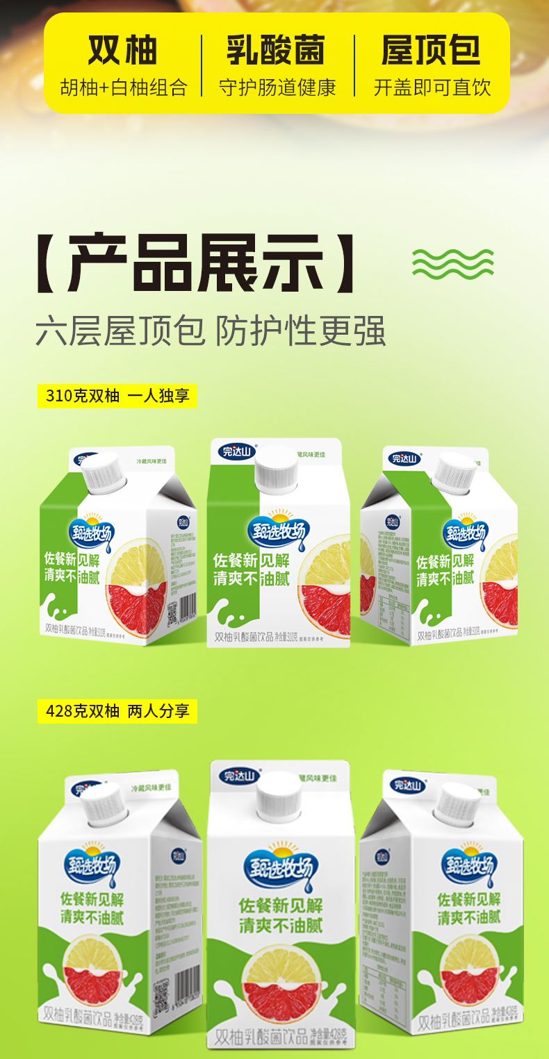 完达山甄选牧场双柚乳酸菌饮品小盒装310g和428g两种规格可选