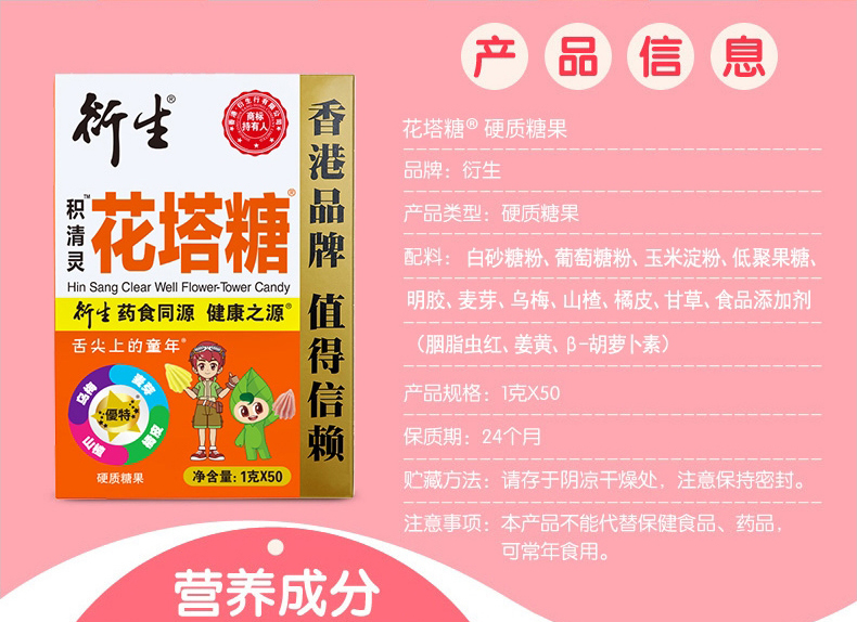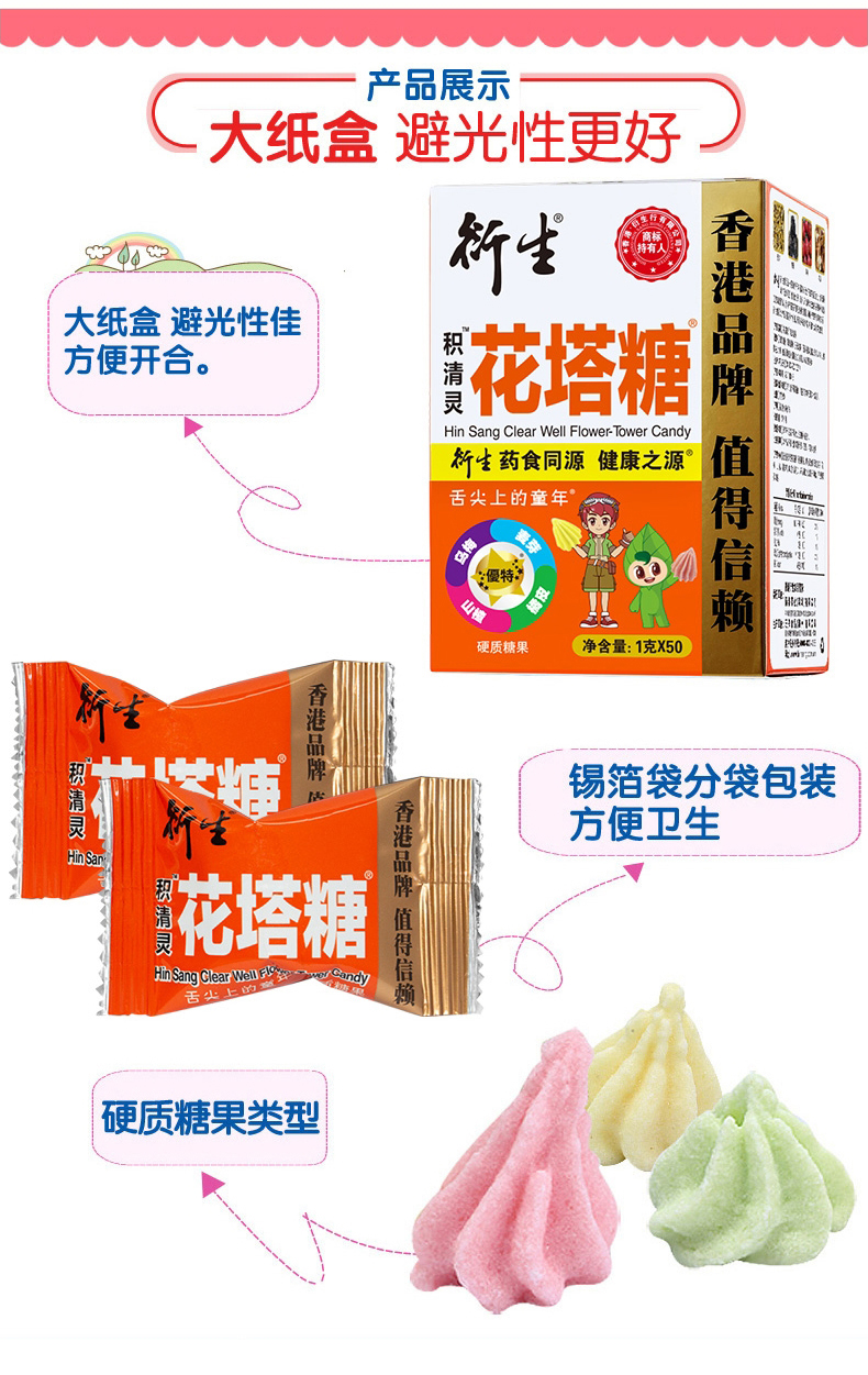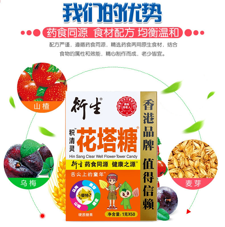 【每日必抢】香港衍生小儿积清灵花塔糖50粒(驱虫清肠道去积食)