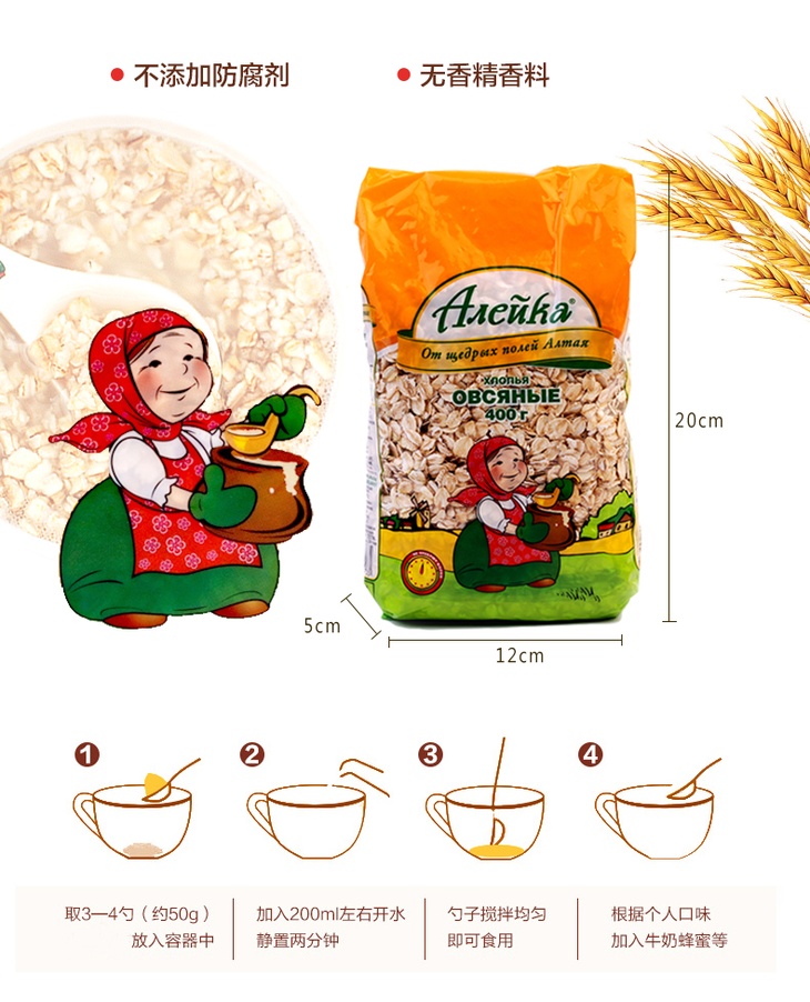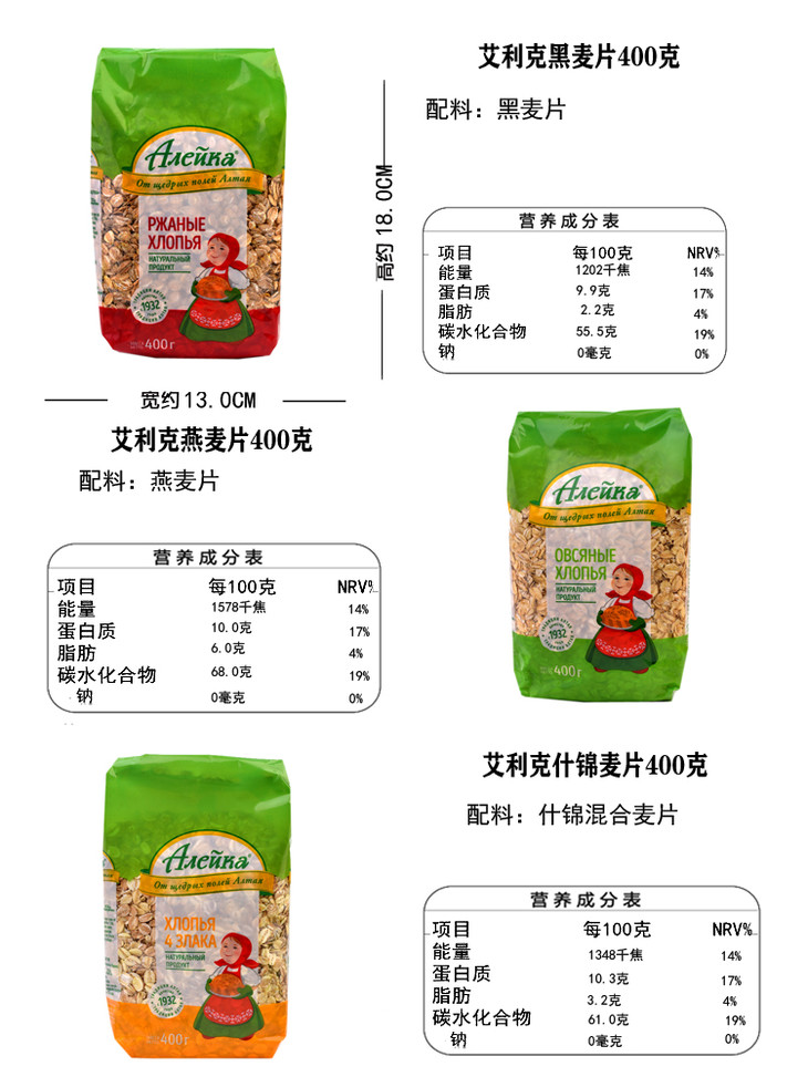 俄罗斯进口艾利克燕麦片、混合麦片400g