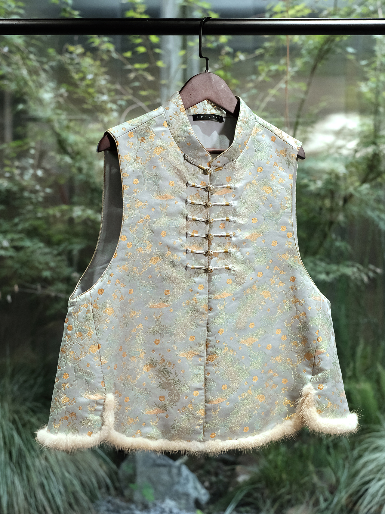 盛唐婧 | 喜报春禄新中式宋锦拼水貂夹棉对襟马甲