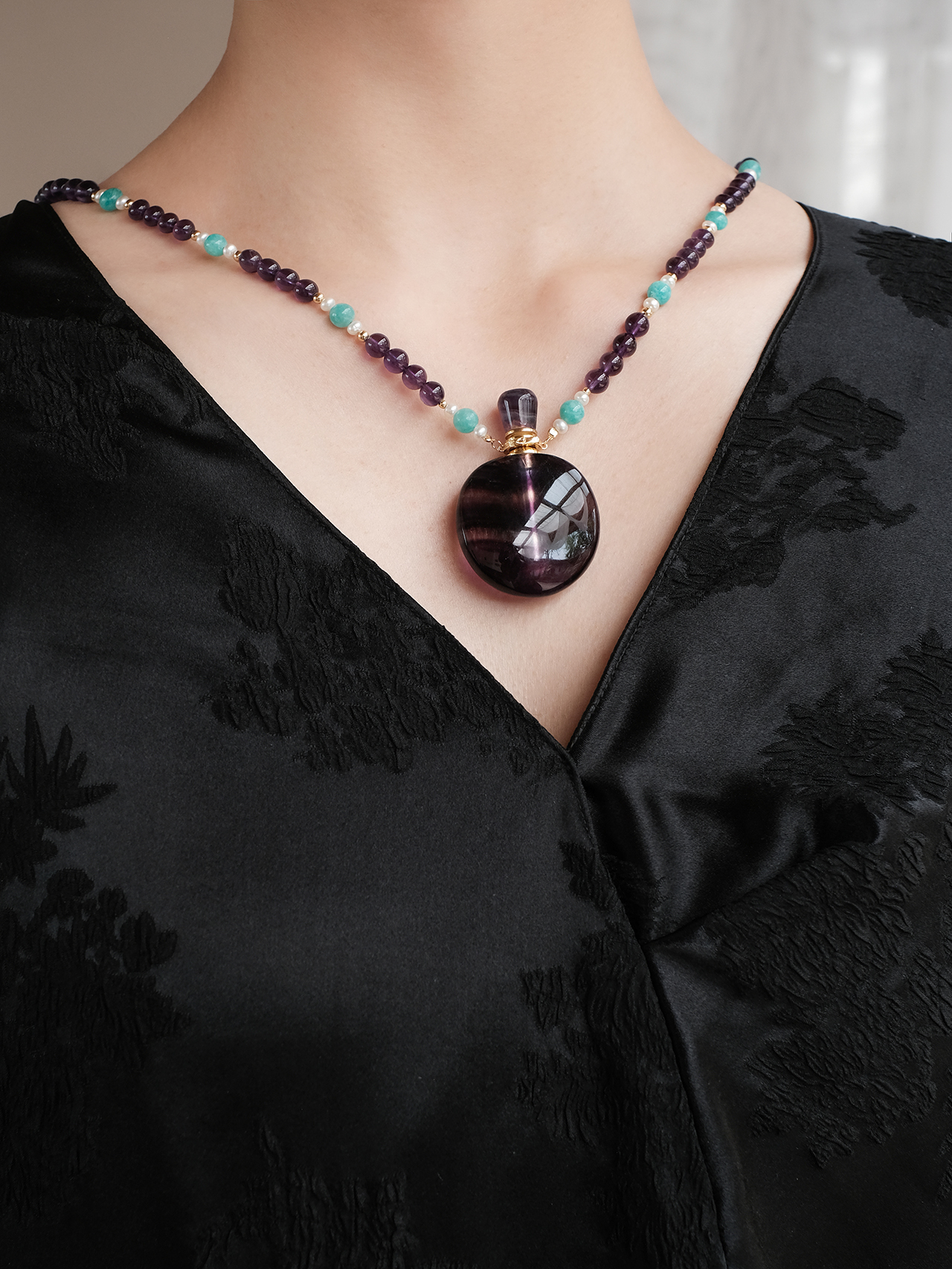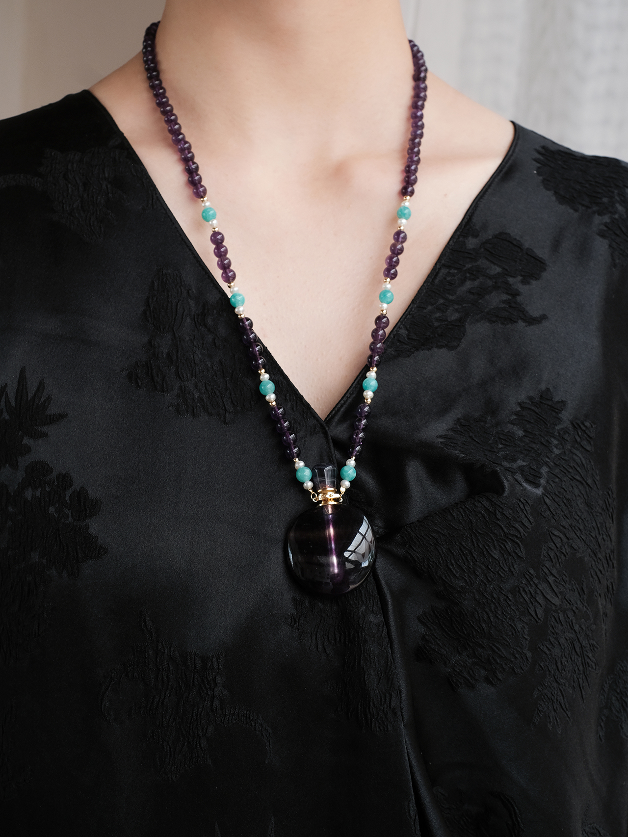 盛唐牡丹 | 粉色蝶恋花/紫色喜鹊缠枝真丝提花褶皱上衣