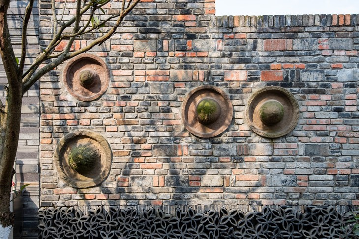 设计师利用秦砖、汉瓦、琉璃、青花瓷、石磨、石碾、砂锅、陶器结构重组,演绎出鱼跃龙门、福禄寿喜、溪山远境、花开富贵等现代的触觉。