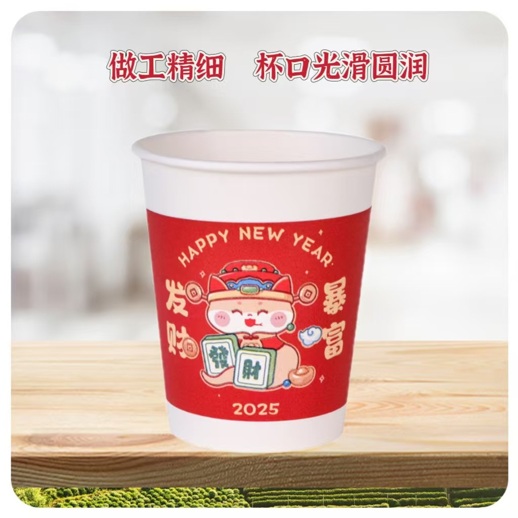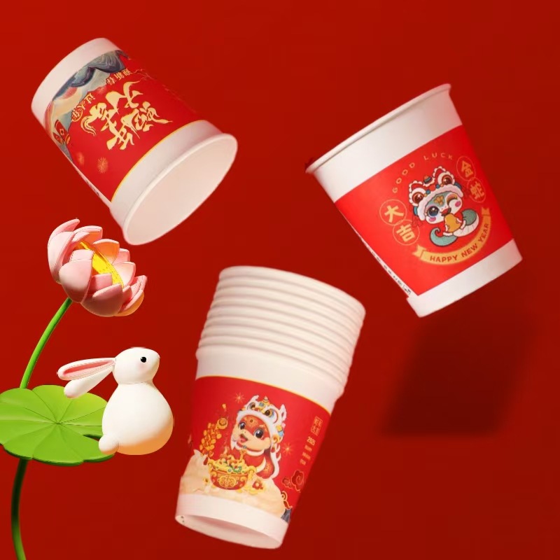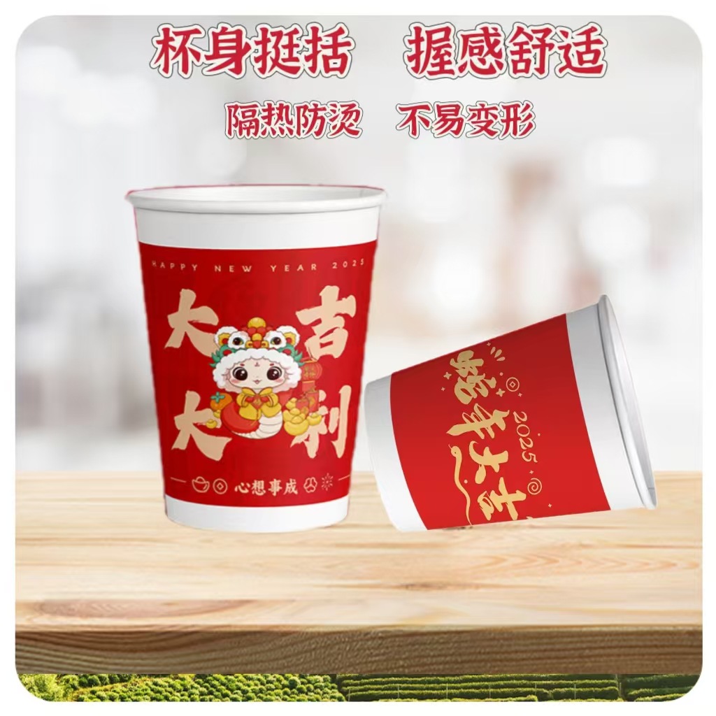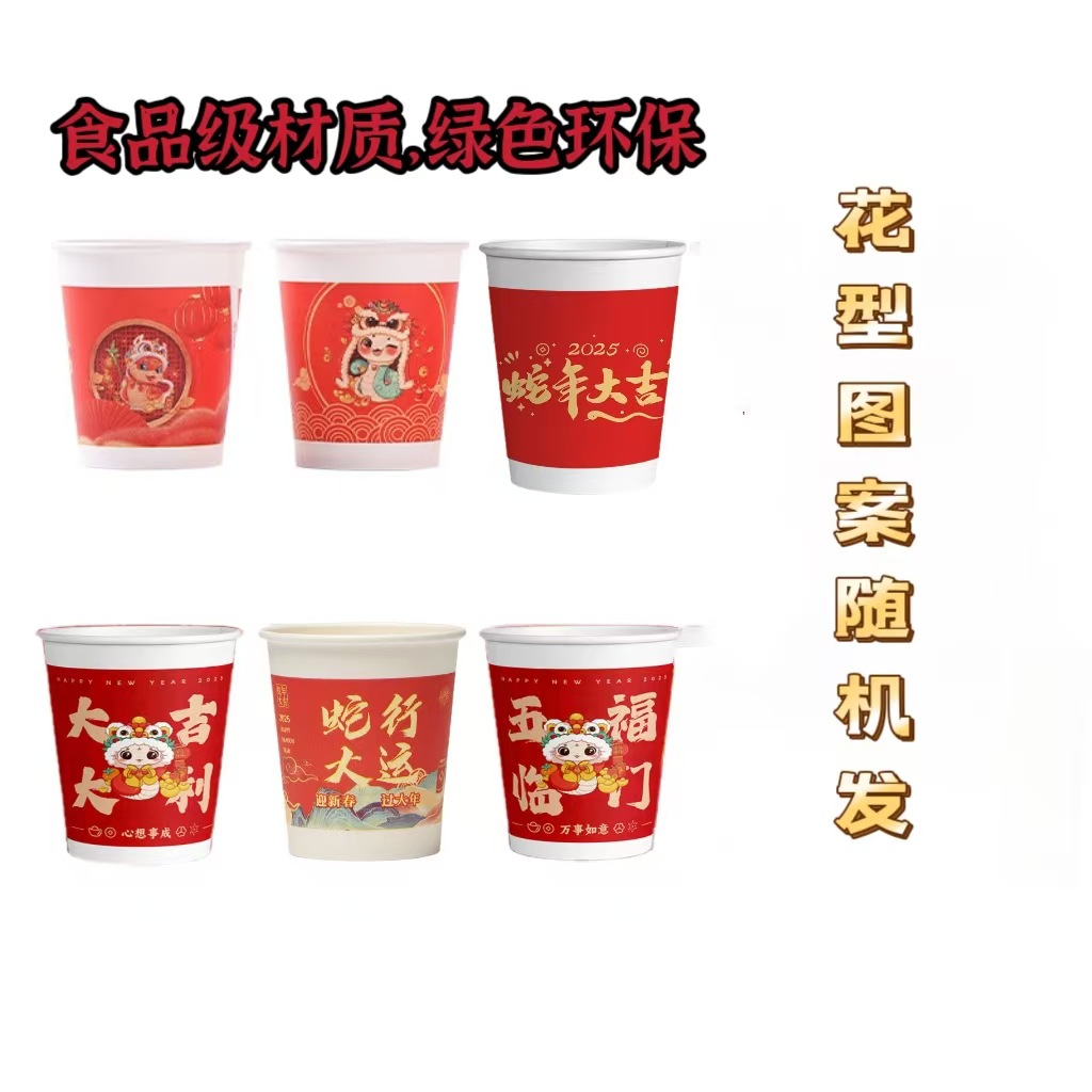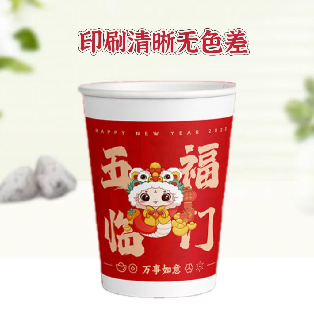 【9.9抢50只❗️马腾瑞气升马迎福一次性纸杯】无异味防渗透 商业国潮新年春节马年大吉贺岁一次性杯子杯超厚好礼-yl新年礼盒年货礼盒