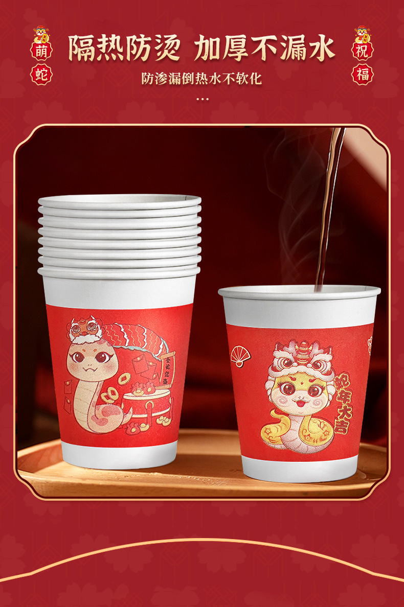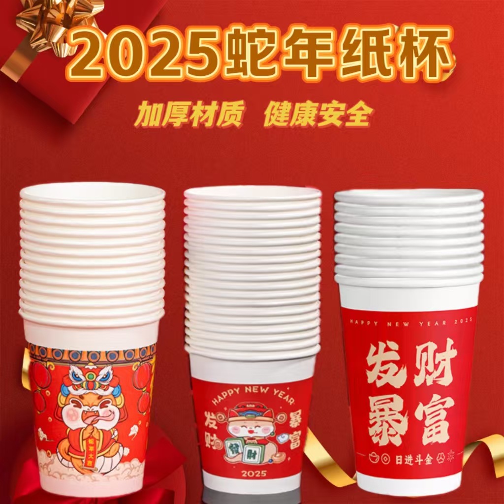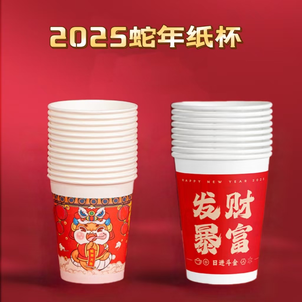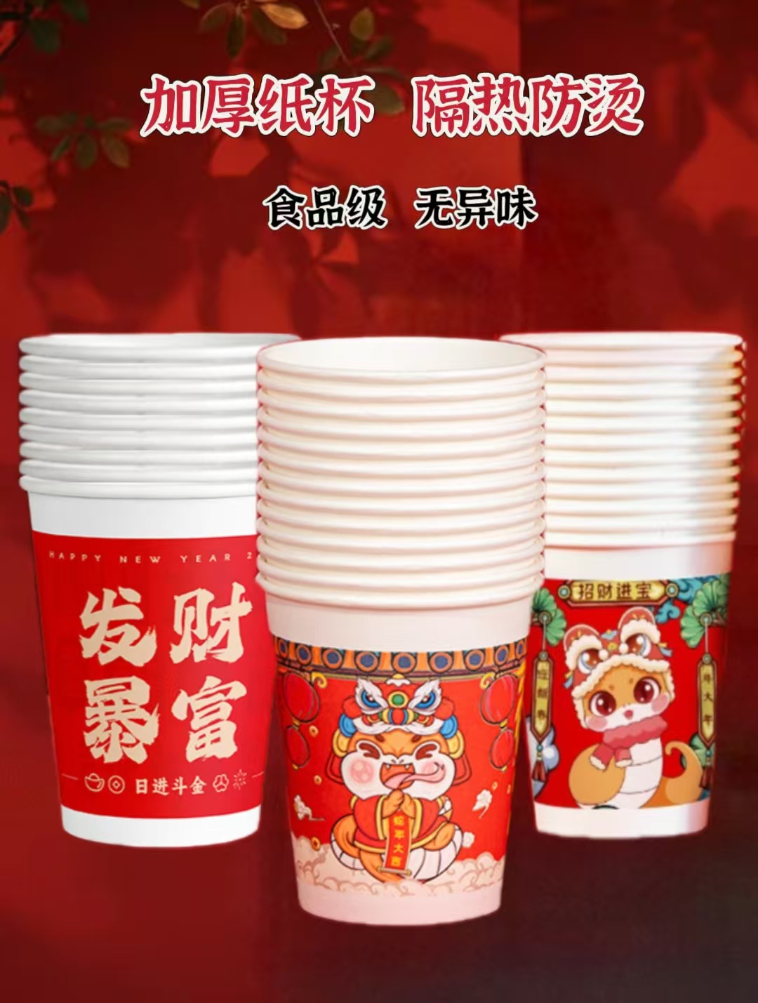 【9.9抢50只❗️马腾瑞气升马迎福一次性纸杯】无异味防渗透 商业国潮新年春节马年大吉贺岁一次性杯子杯超厚好礼-yl新年礼盒年货礼盒