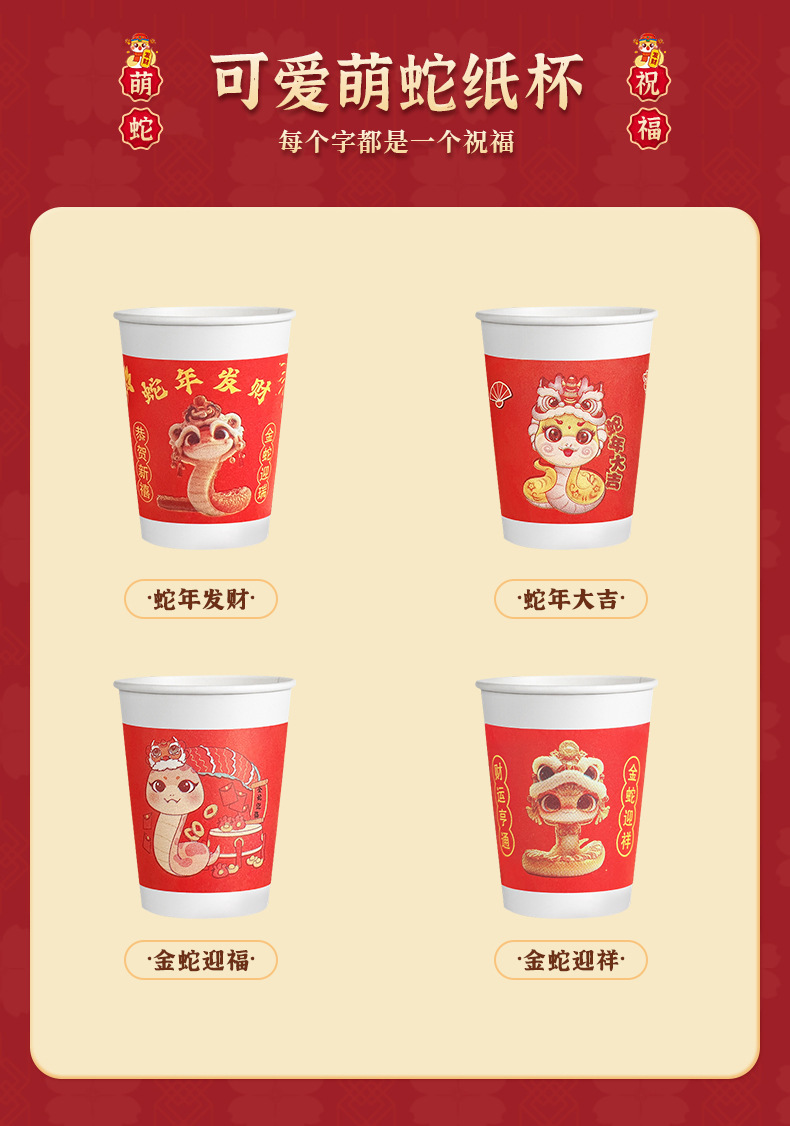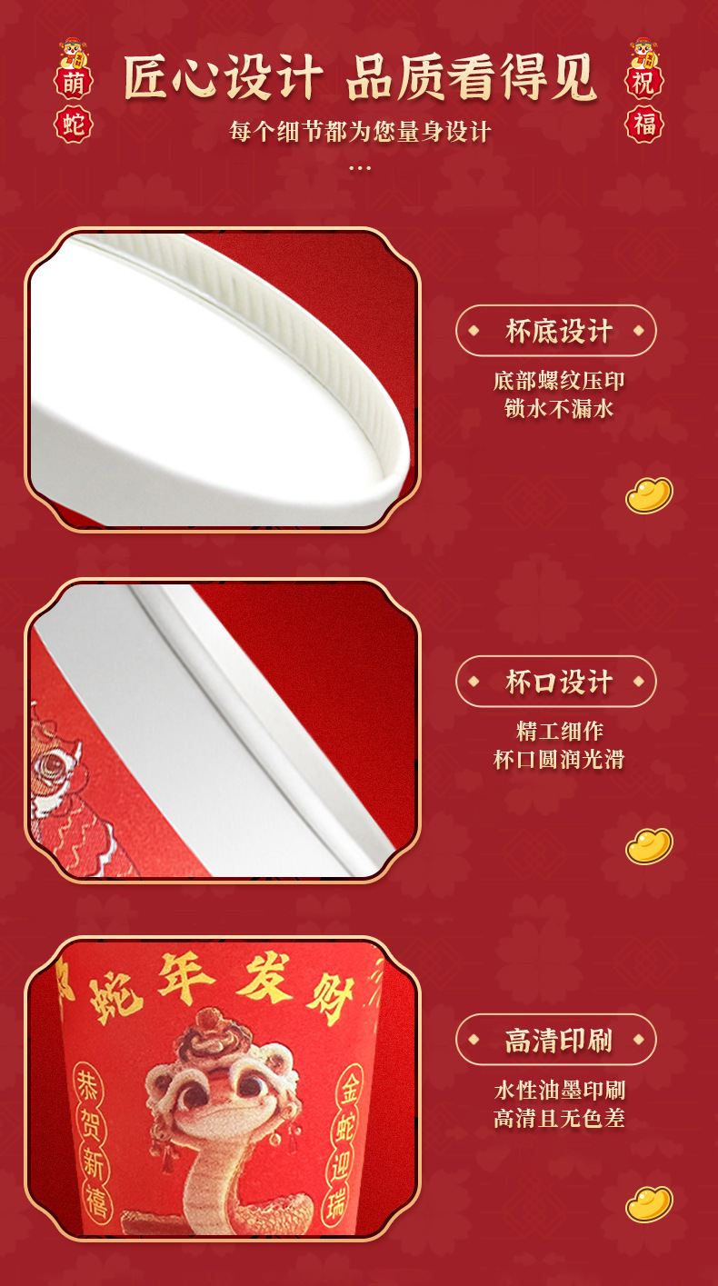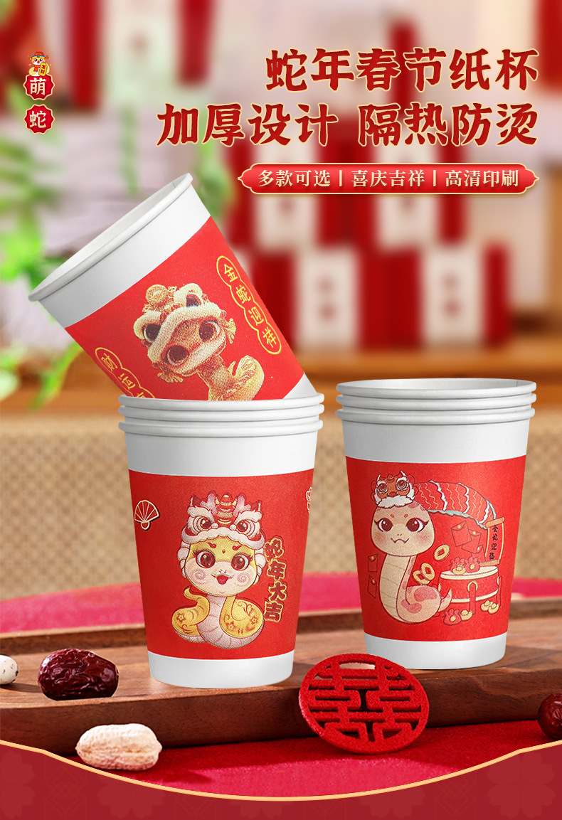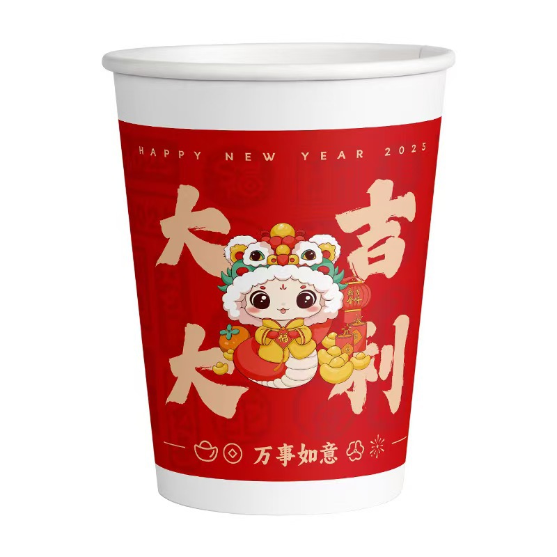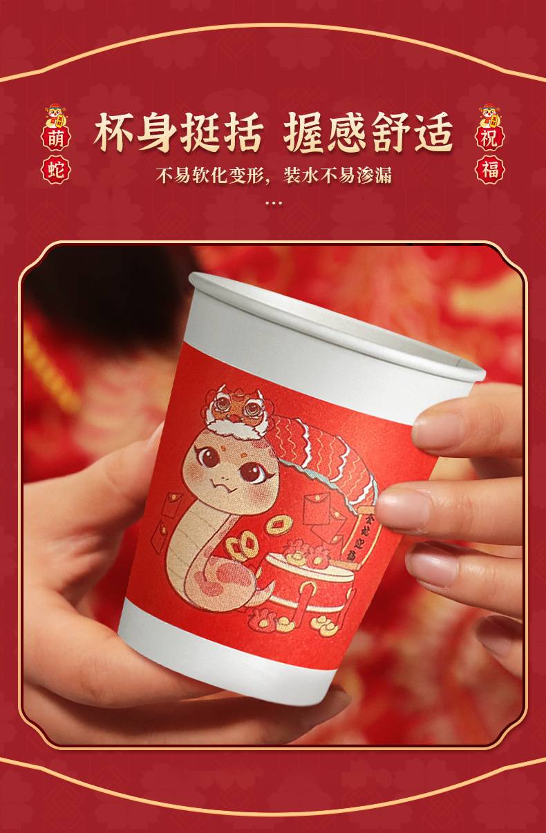 【9.9抢50只❗️马腾瑞气升马迎福一次性纸杯】无异味防渗透 商业国潮新年春节马年大吉贺岁一次性杯子杯超厚好礼-yl新年礼盒年货礼盒