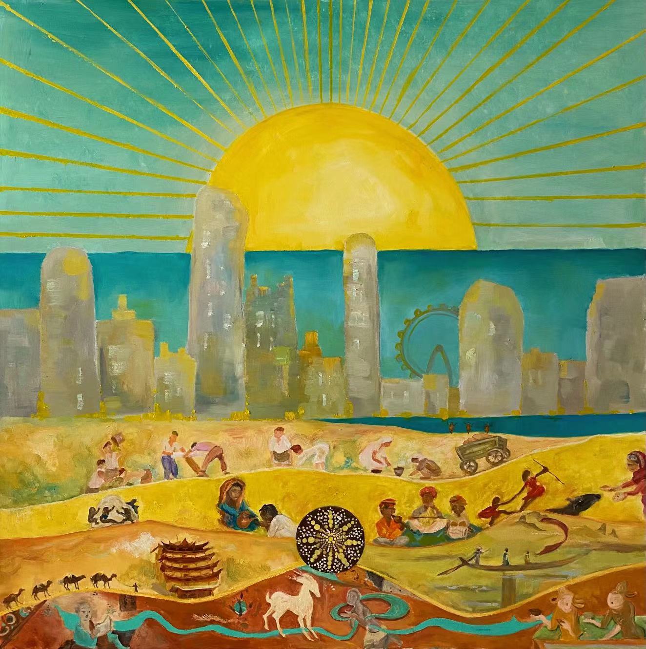 丝巾的画面灵感取材于作者对于在专研古老经典中所产生的画面,希望将这些美丽的意识图片捕捉下来,带入人们的心间,以人们之间相互关爱的传递方式,滋养着彼此的心灵。