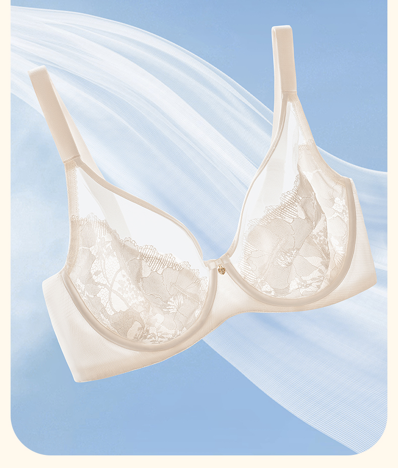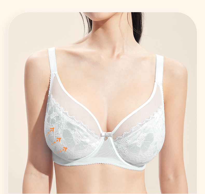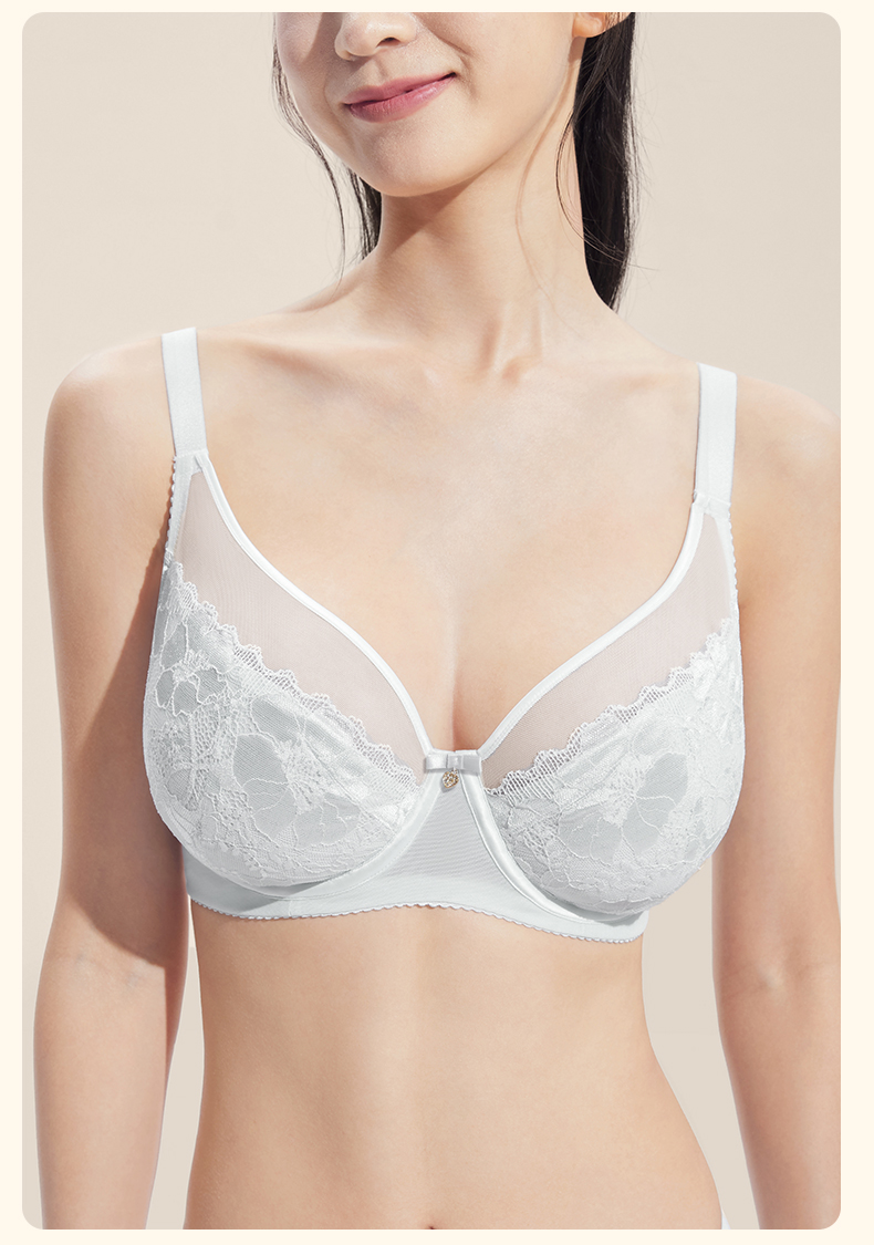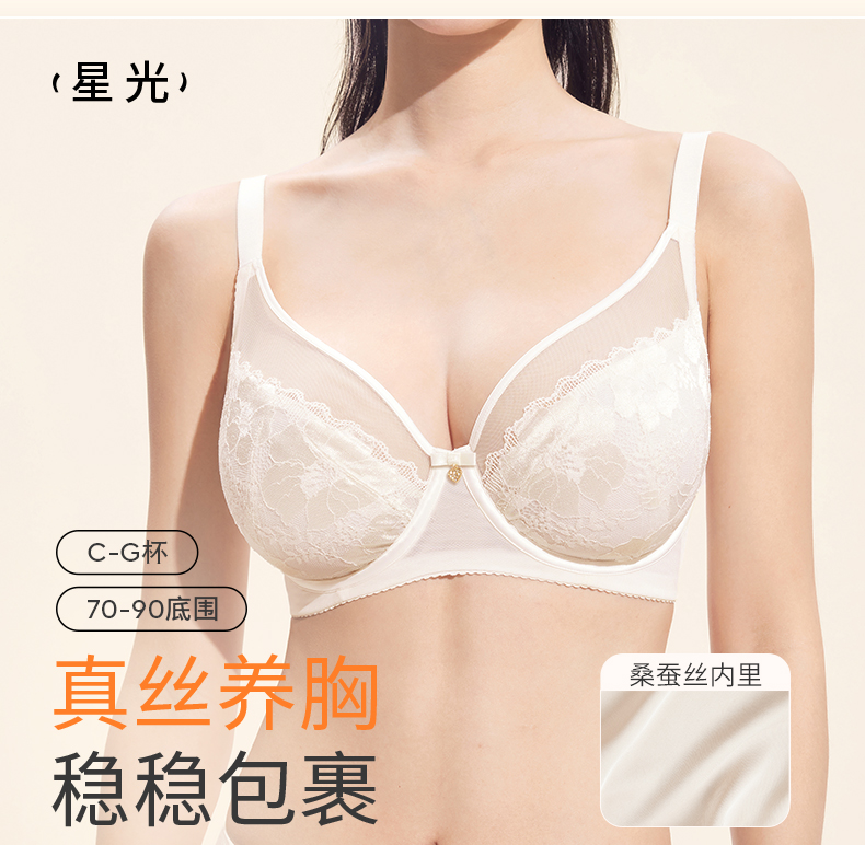 [星光超薄文胸]大胸显小真丝大码显瘦内衣防凸点蕾丝全罩杯文胸显瘦女