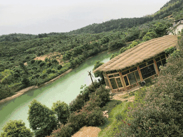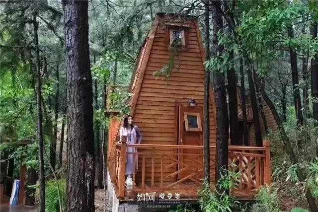12栋原生态合掌式小木屋沿着山势错落有致,竹林、果树、池塘包围着它,石门、竹篱笆、木栅栏环绕着它,再加上树影的遮遮挡挡,小径通幽处,远远看去颇有几分在云端的味道。