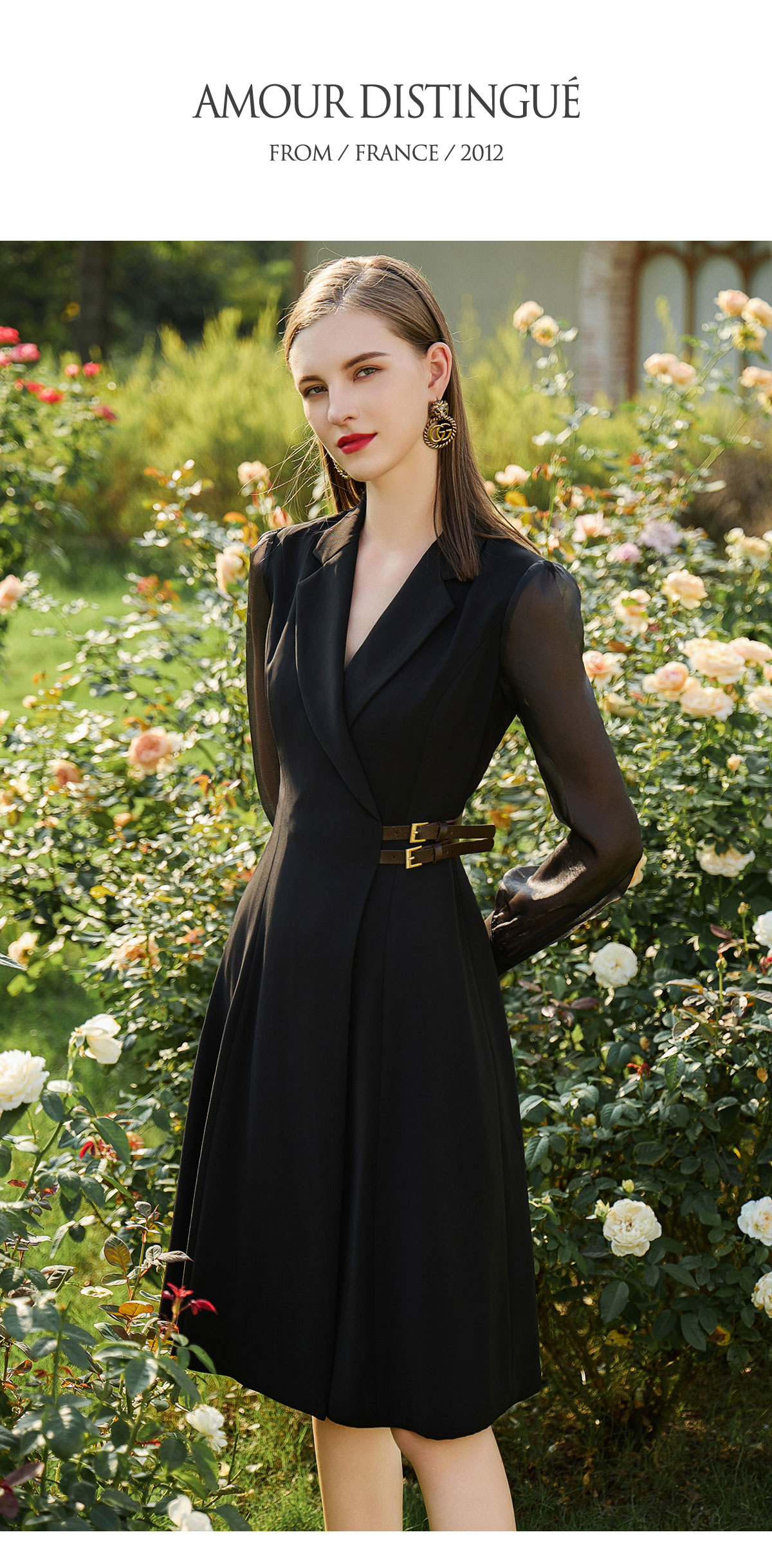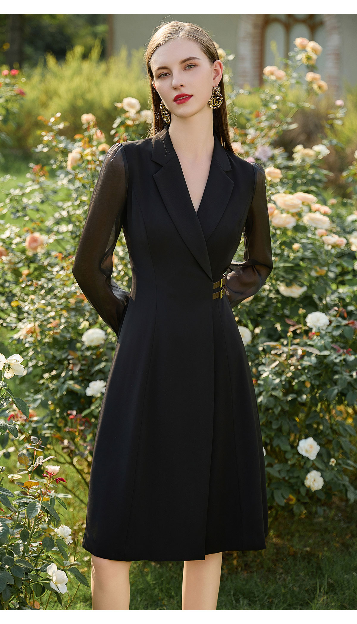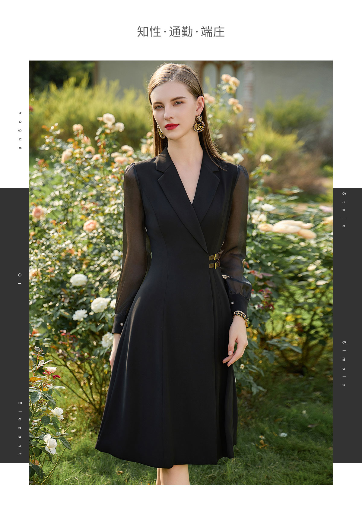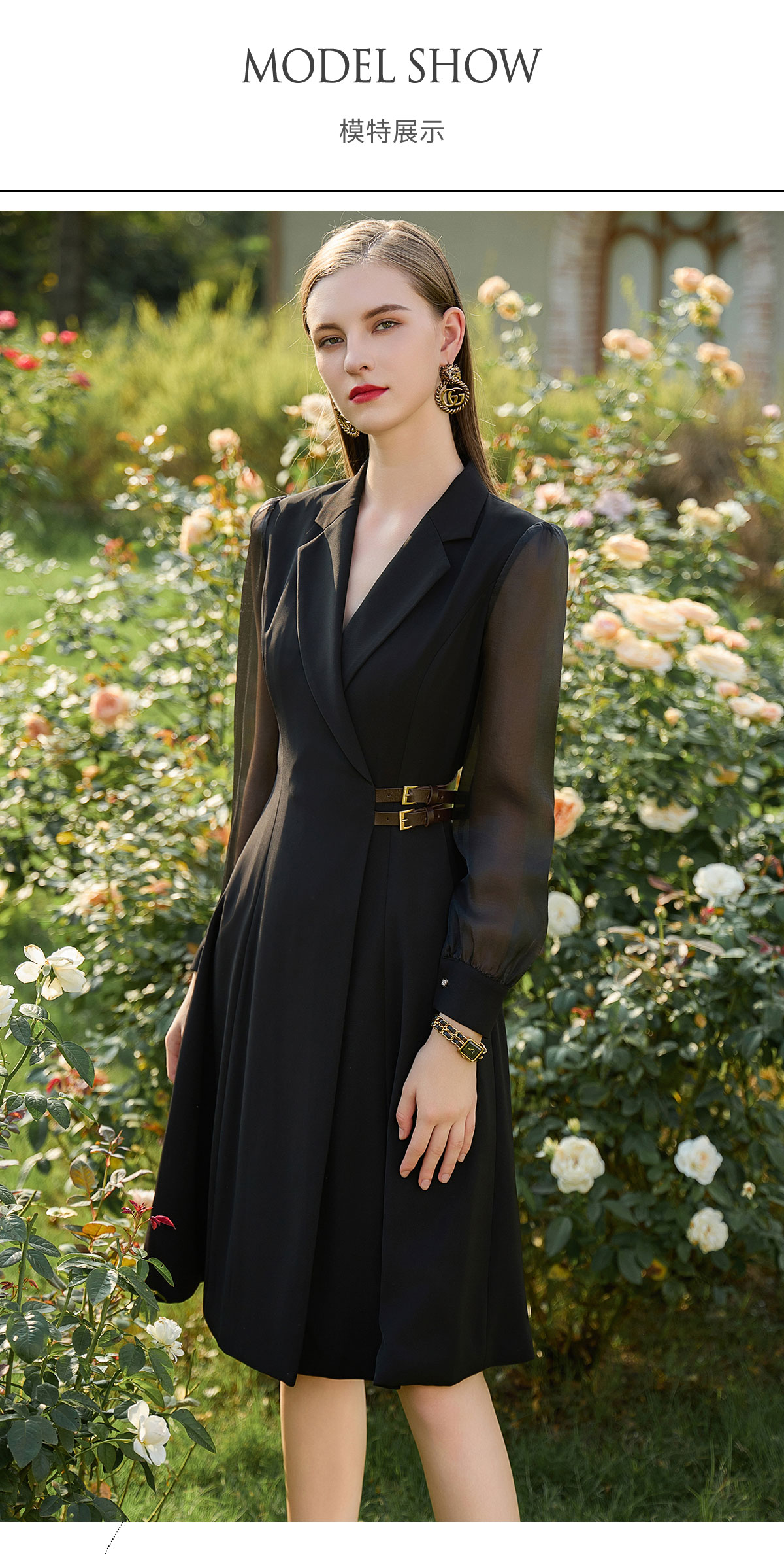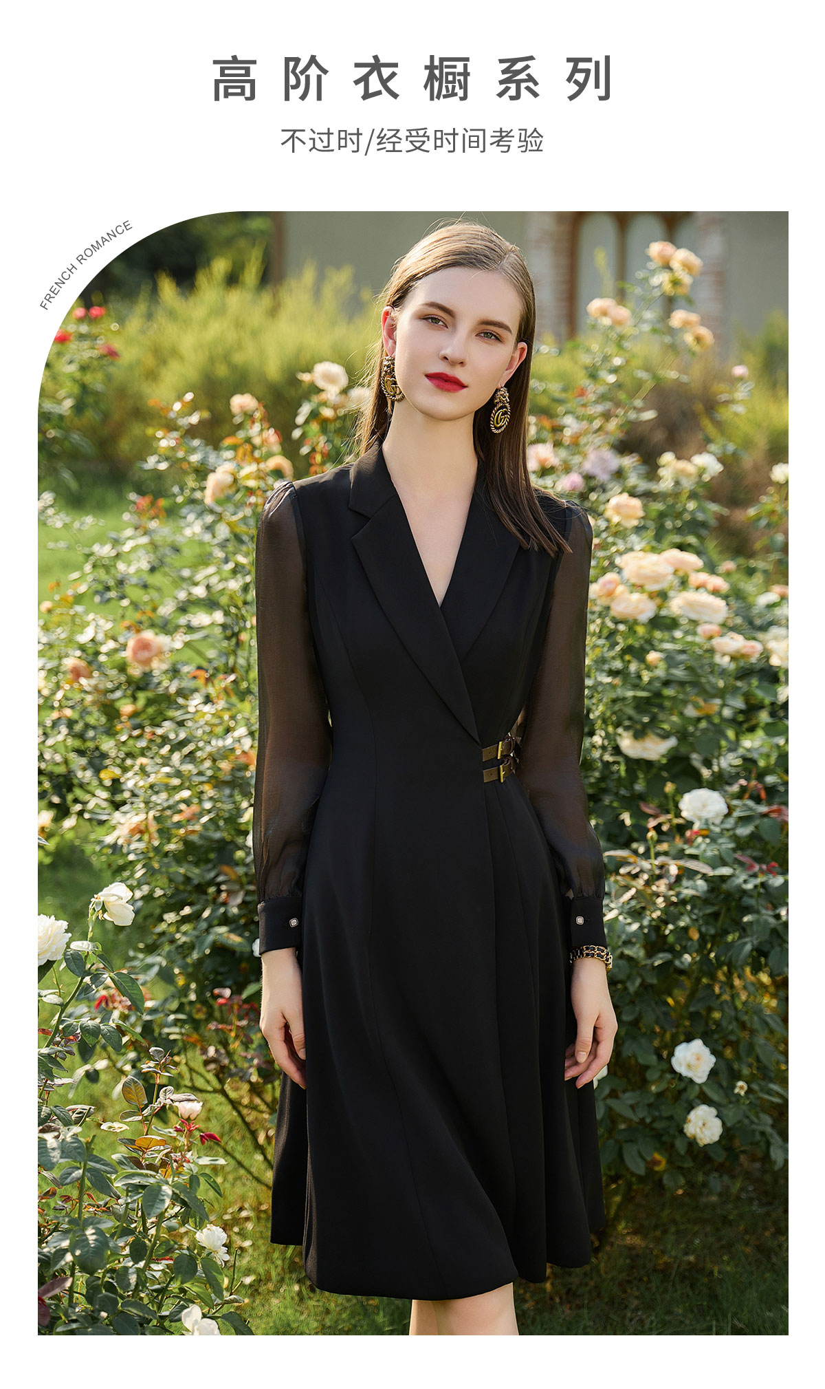 AD新中式连衣裙女遮肉显瘦接拼西服裙子正式场合国风长袖裙子春季