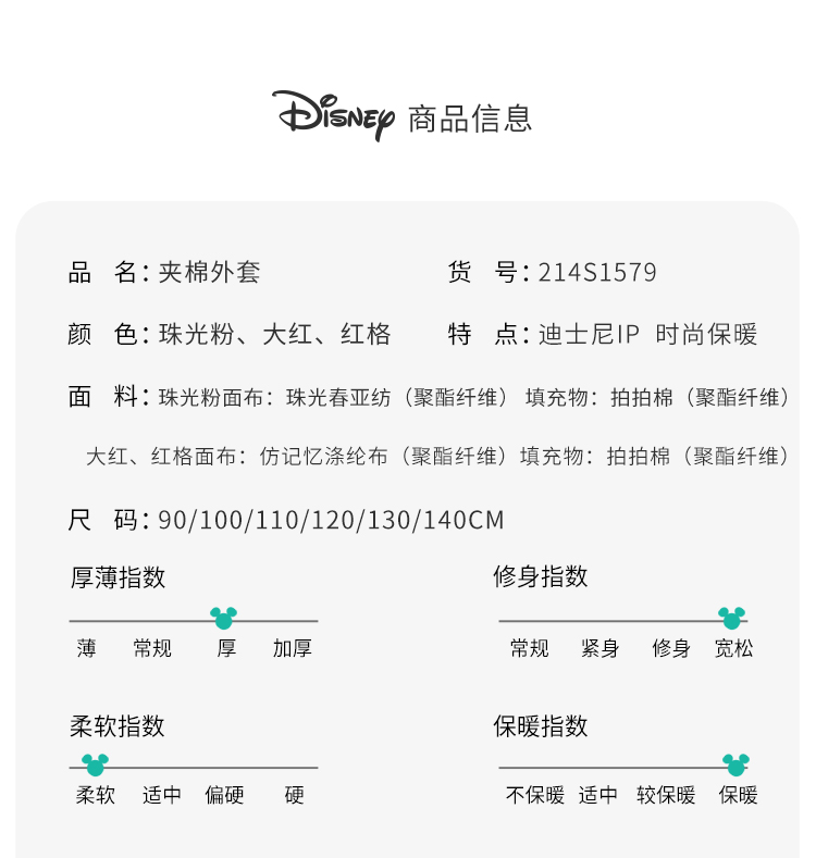 迪士尼童装男女童棉服外套加厚儿童冬棉袄宝宝冬装衣服214S1579