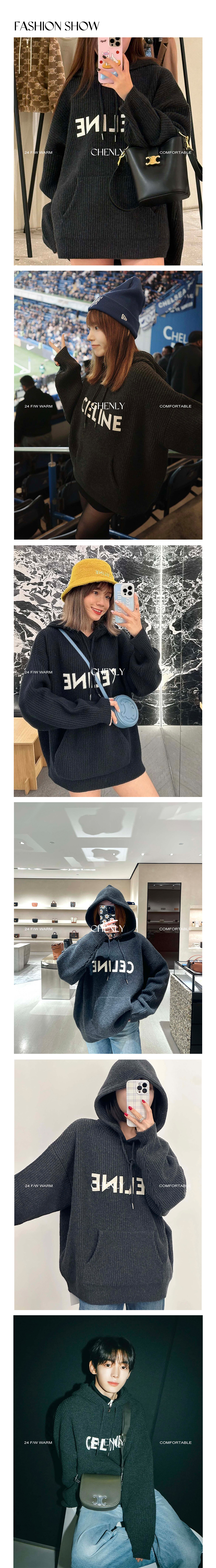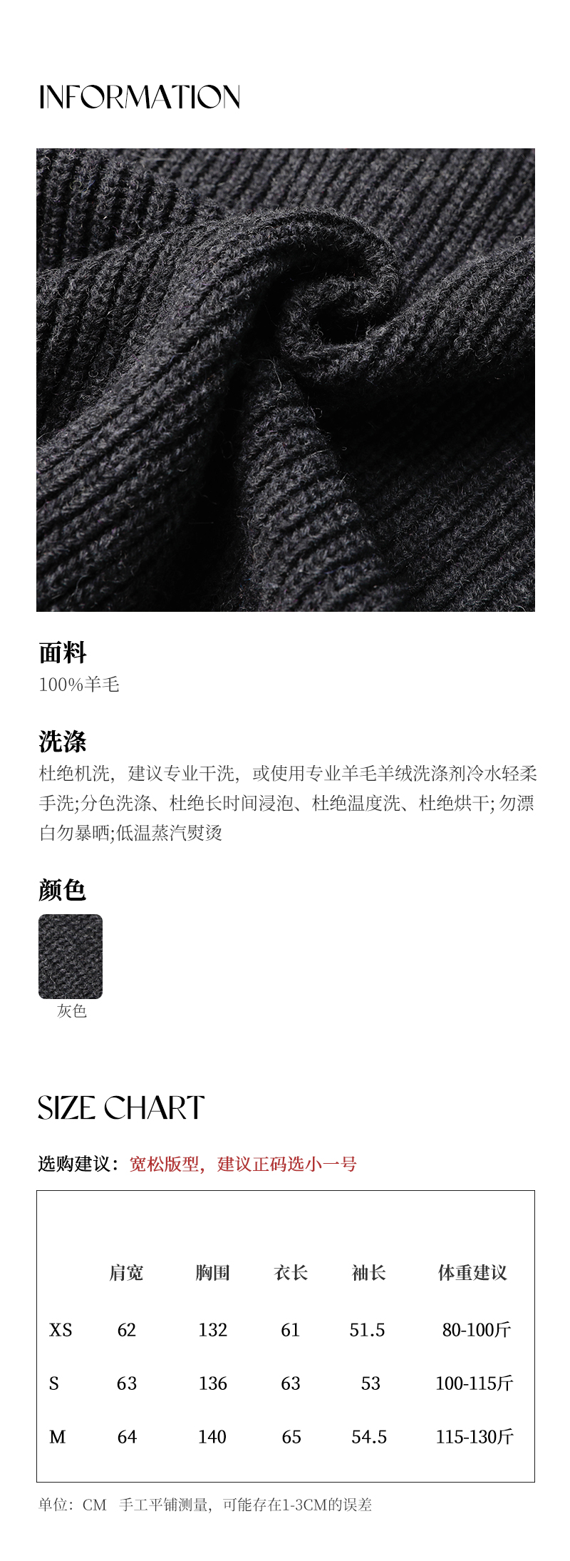 尘衣|宽松坑条灰色连帽羊毛毛衣