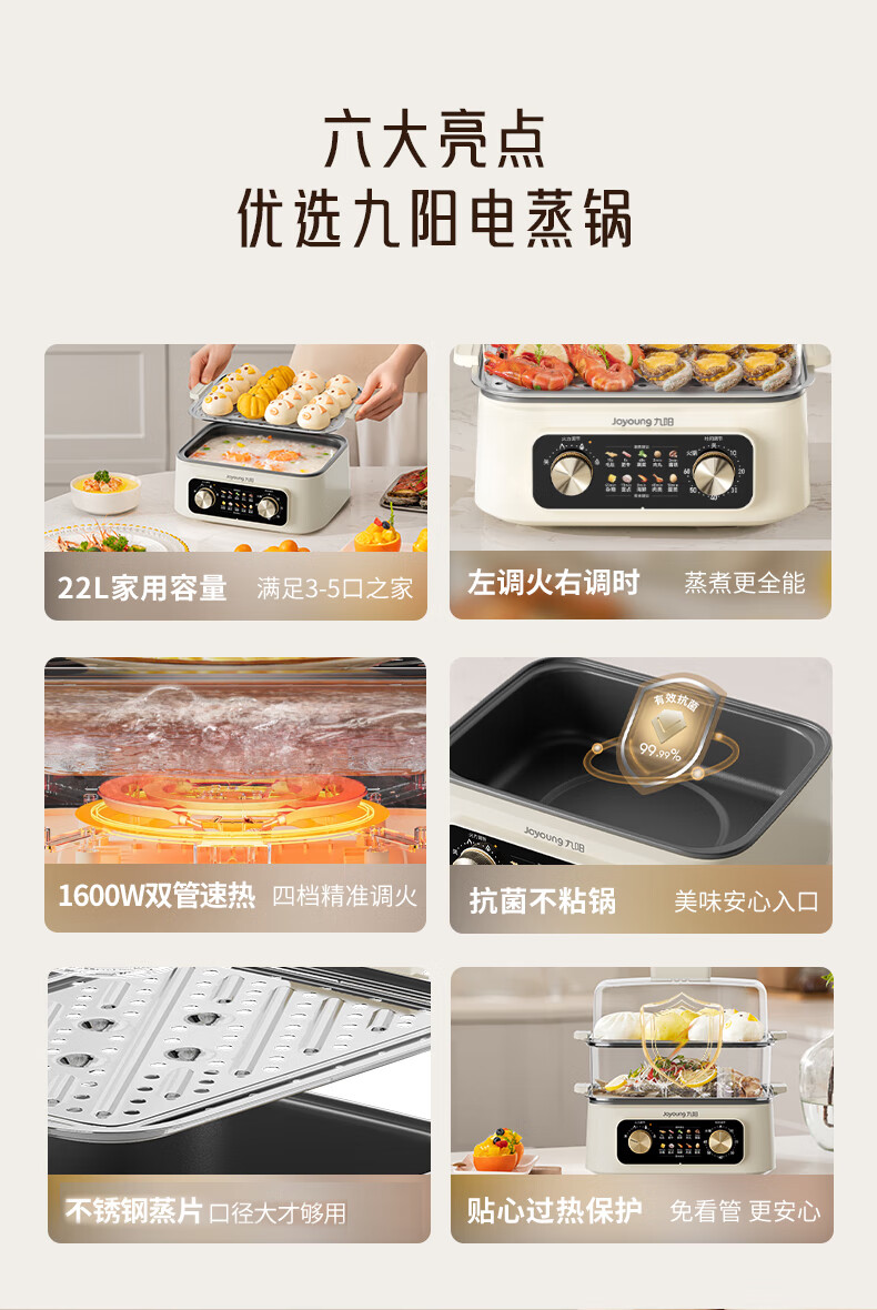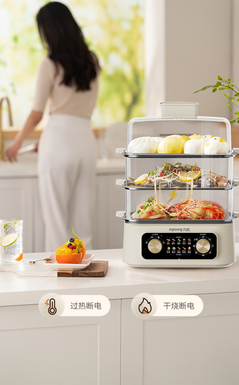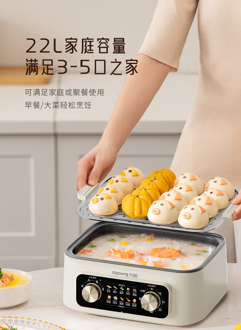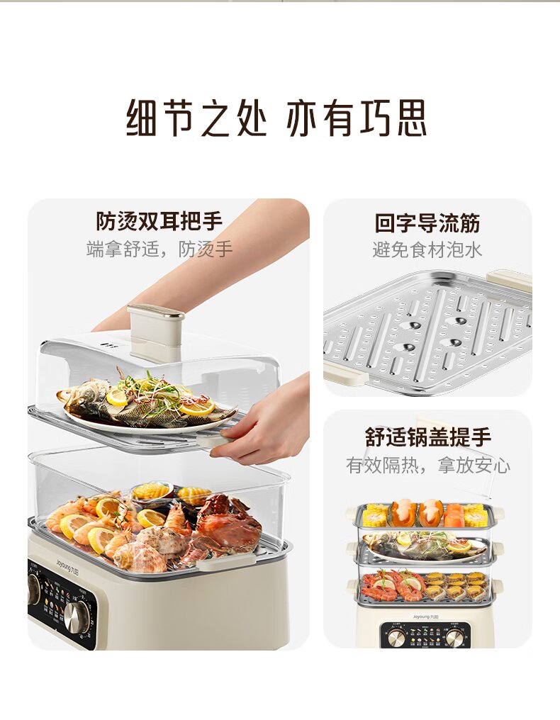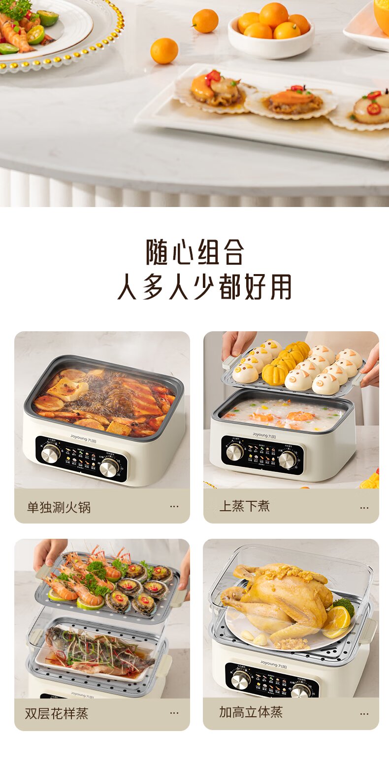 九阳电蒸锅不锈钢分体式可拆家用多功能三层蒸煮炖火锅一体电煮锅