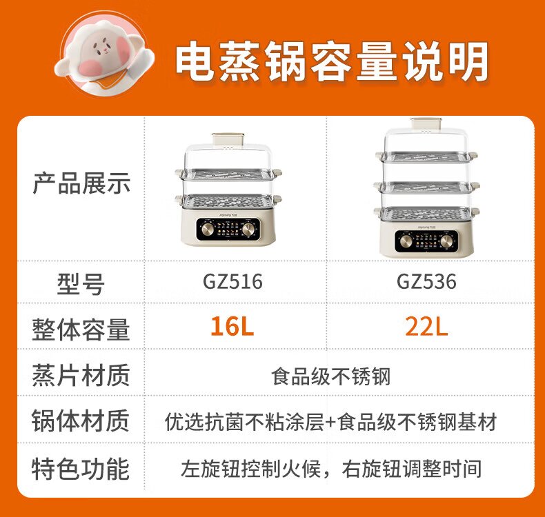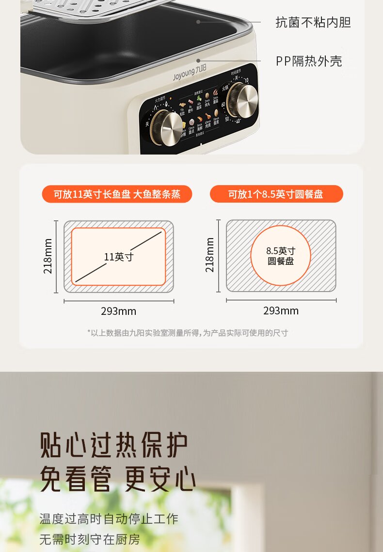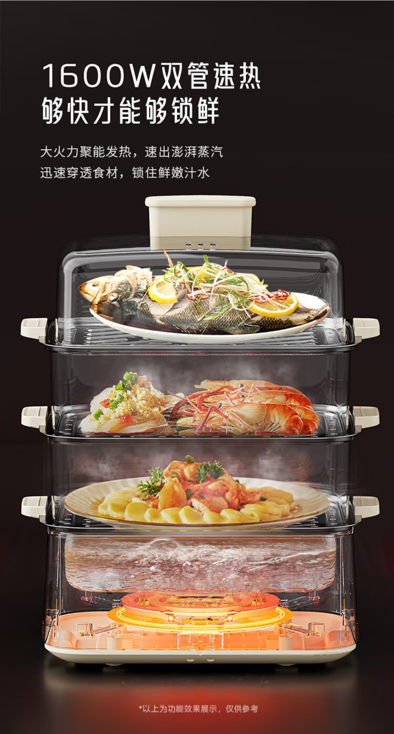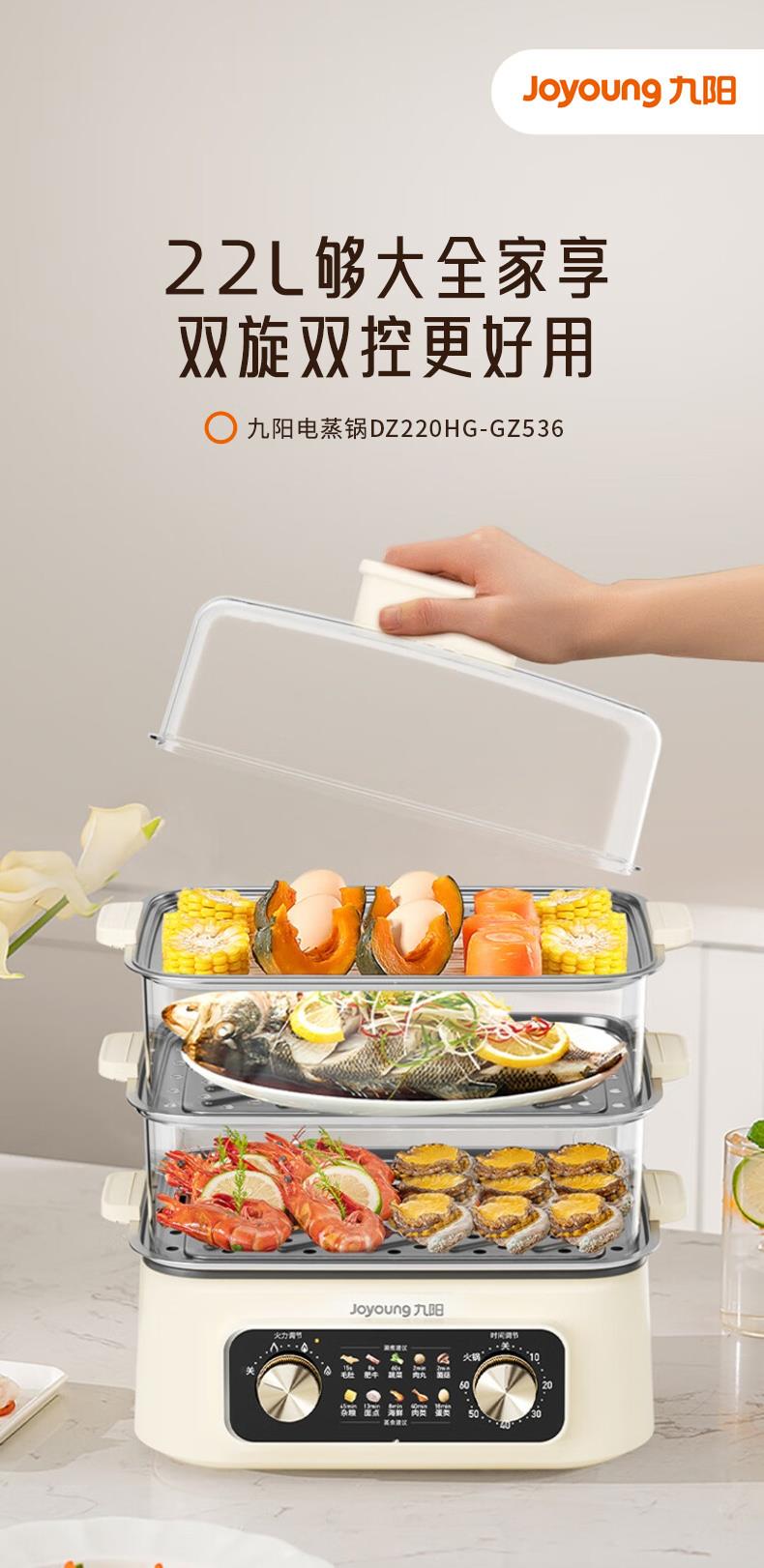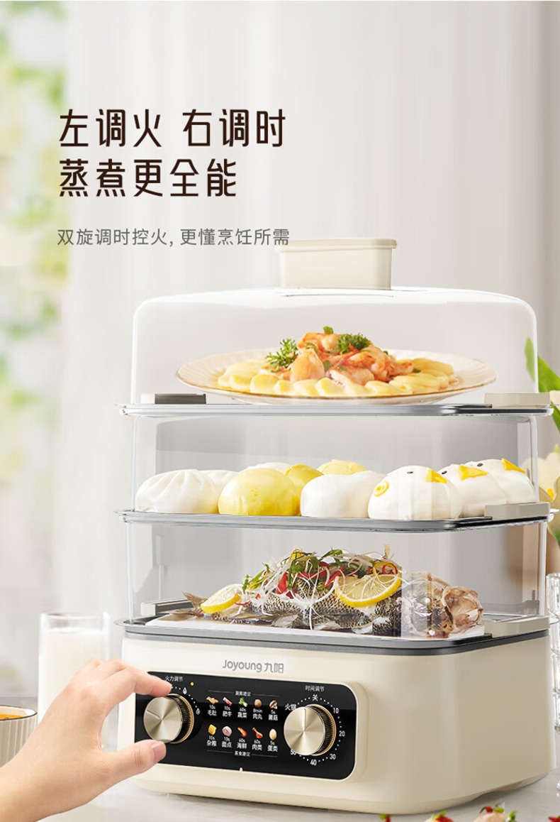 九阳电蒸锅不锈钢分体式可拆家用多功能三层蒸煮炖火锅一体电煮锅