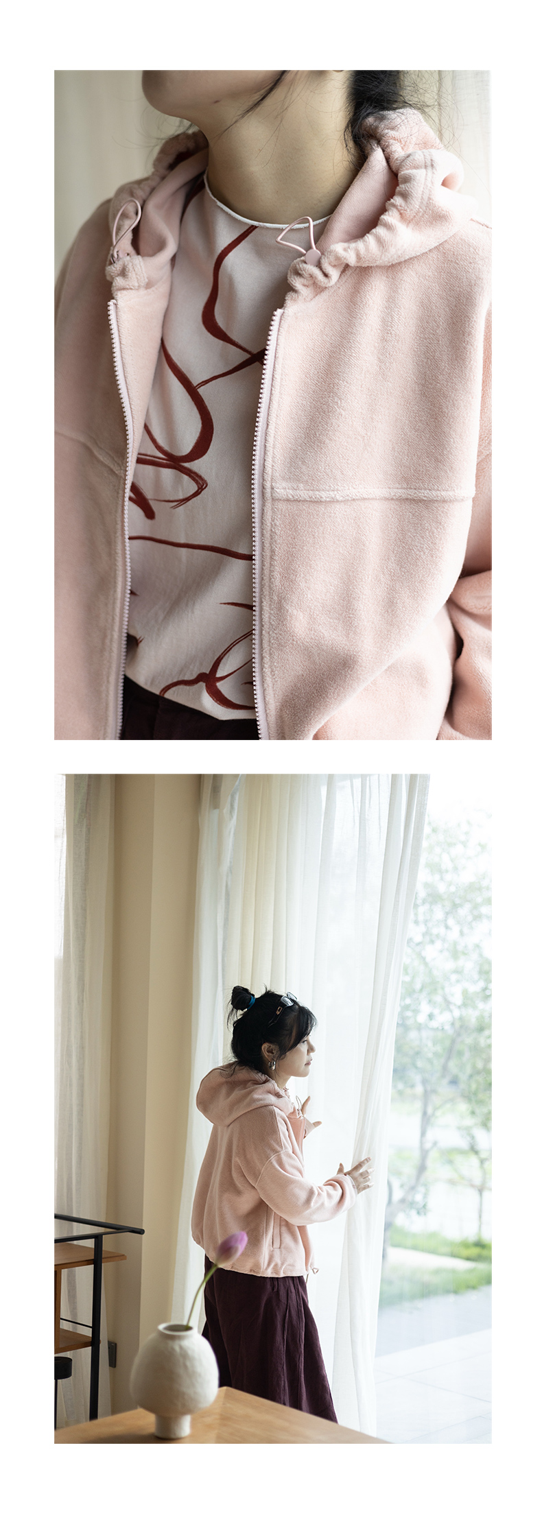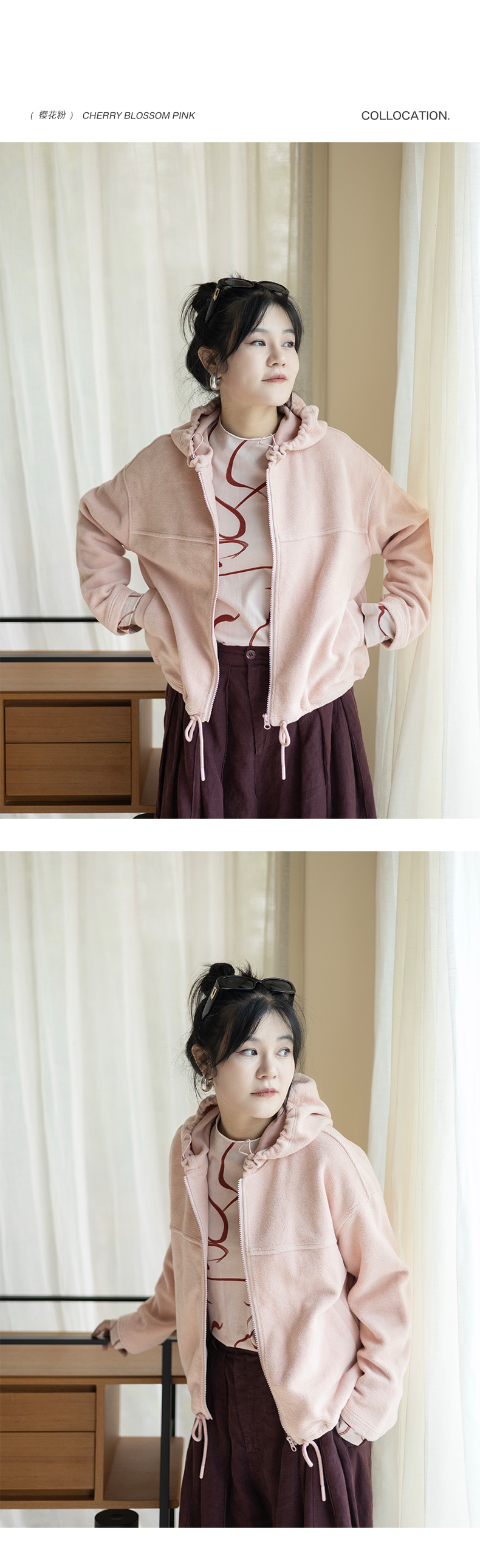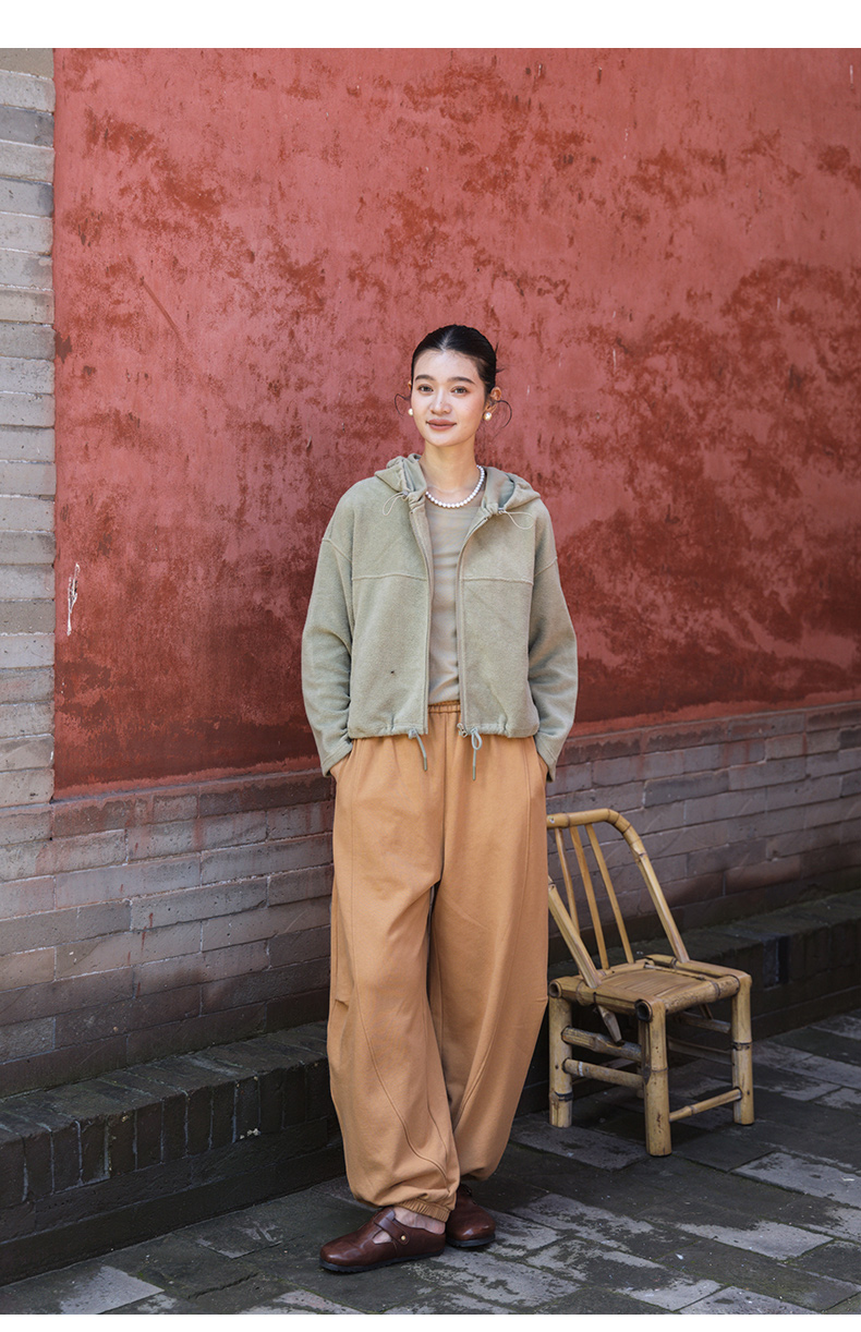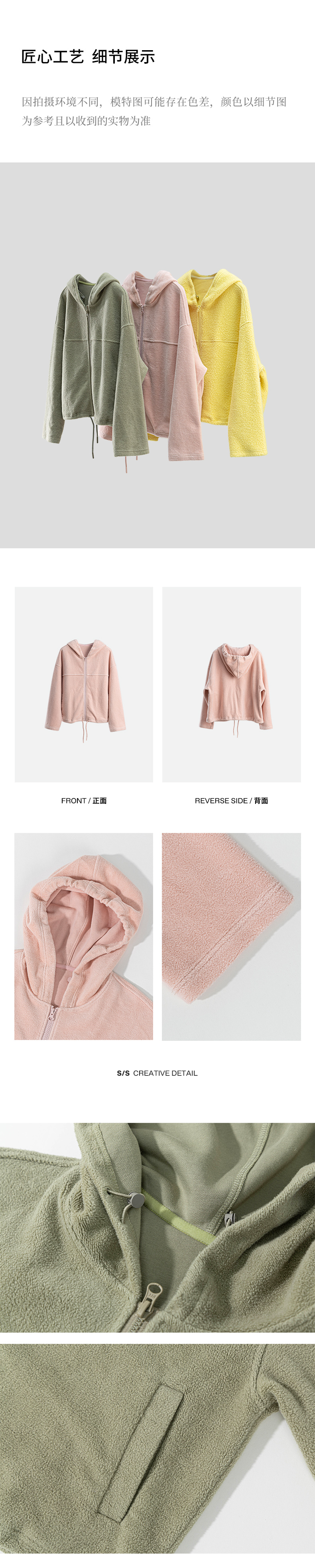 绽放558朵/摇粒绒休闲带帽可调节抽绳宽松百搭外套女秋冬新款开衫