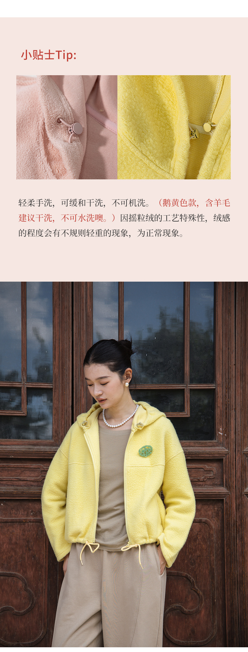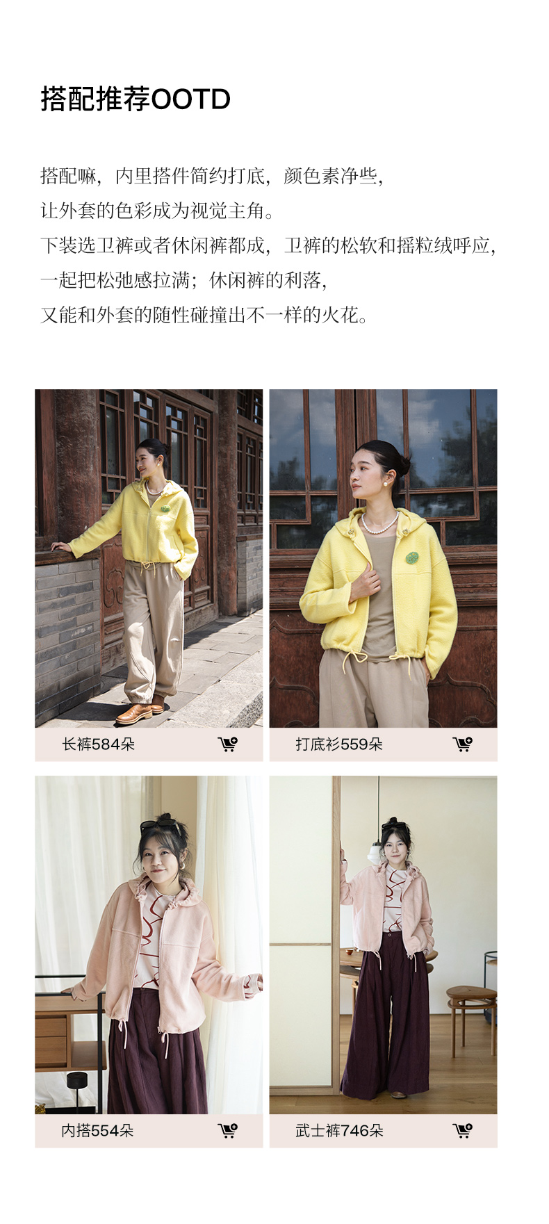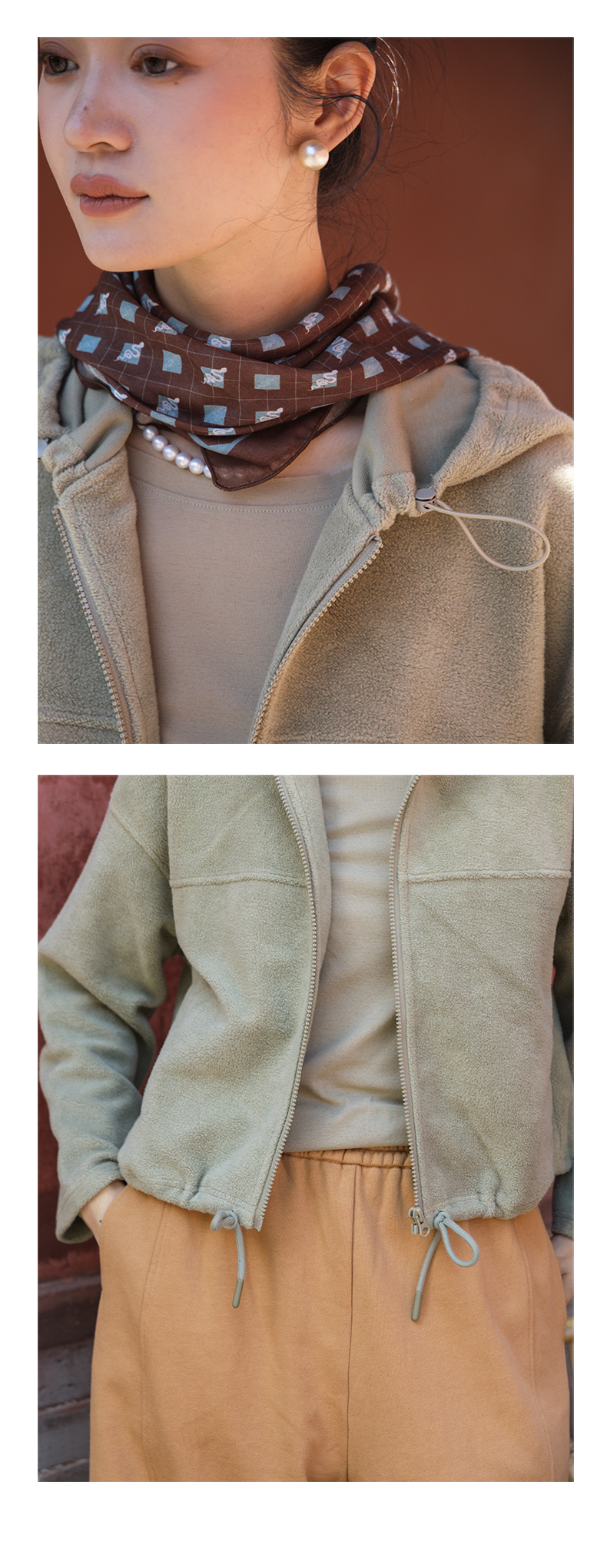 绽放558朵/摇粒绒休闲带帽可调节抽绳宽松百搭外套女秋冬新款开衫