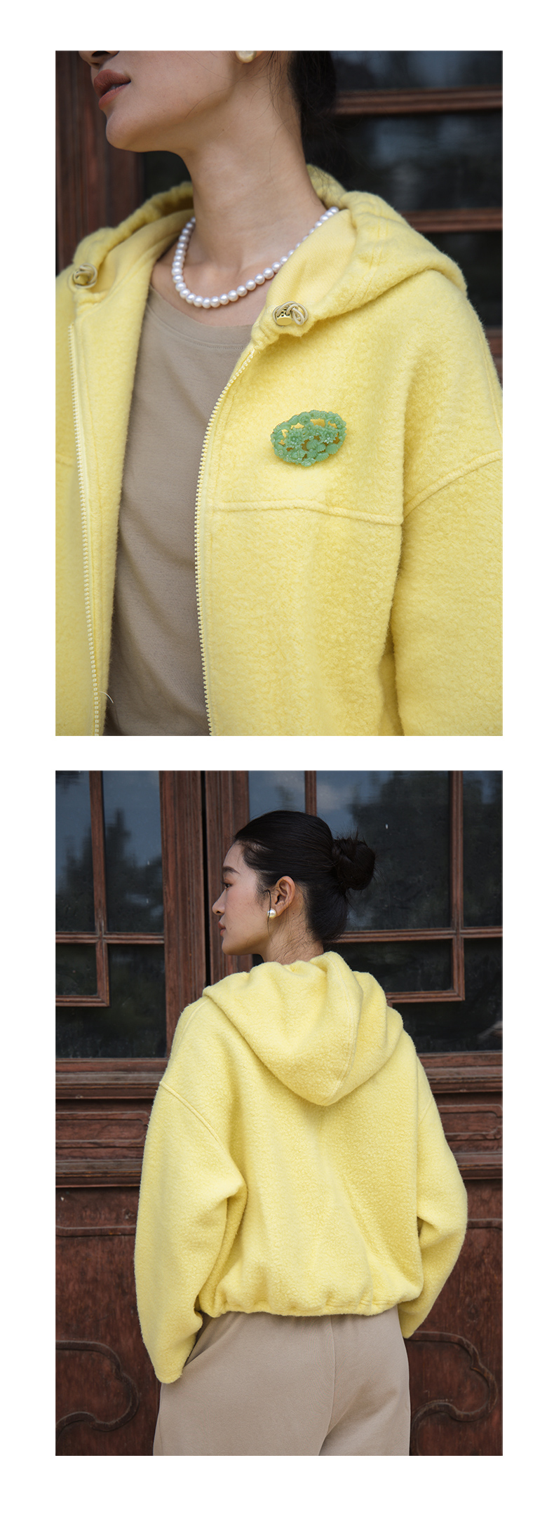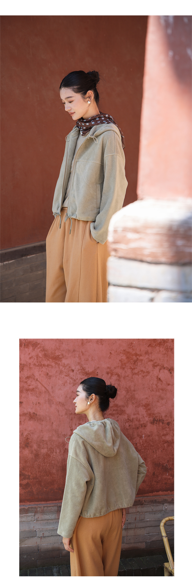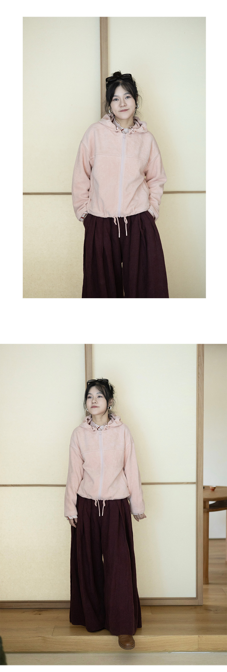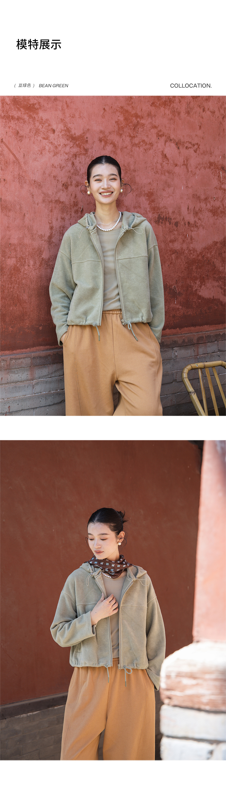 绽放558朵/摇粒绒休闲带帽可调节抽绳宽松百搭外套女秋冬新款开衫