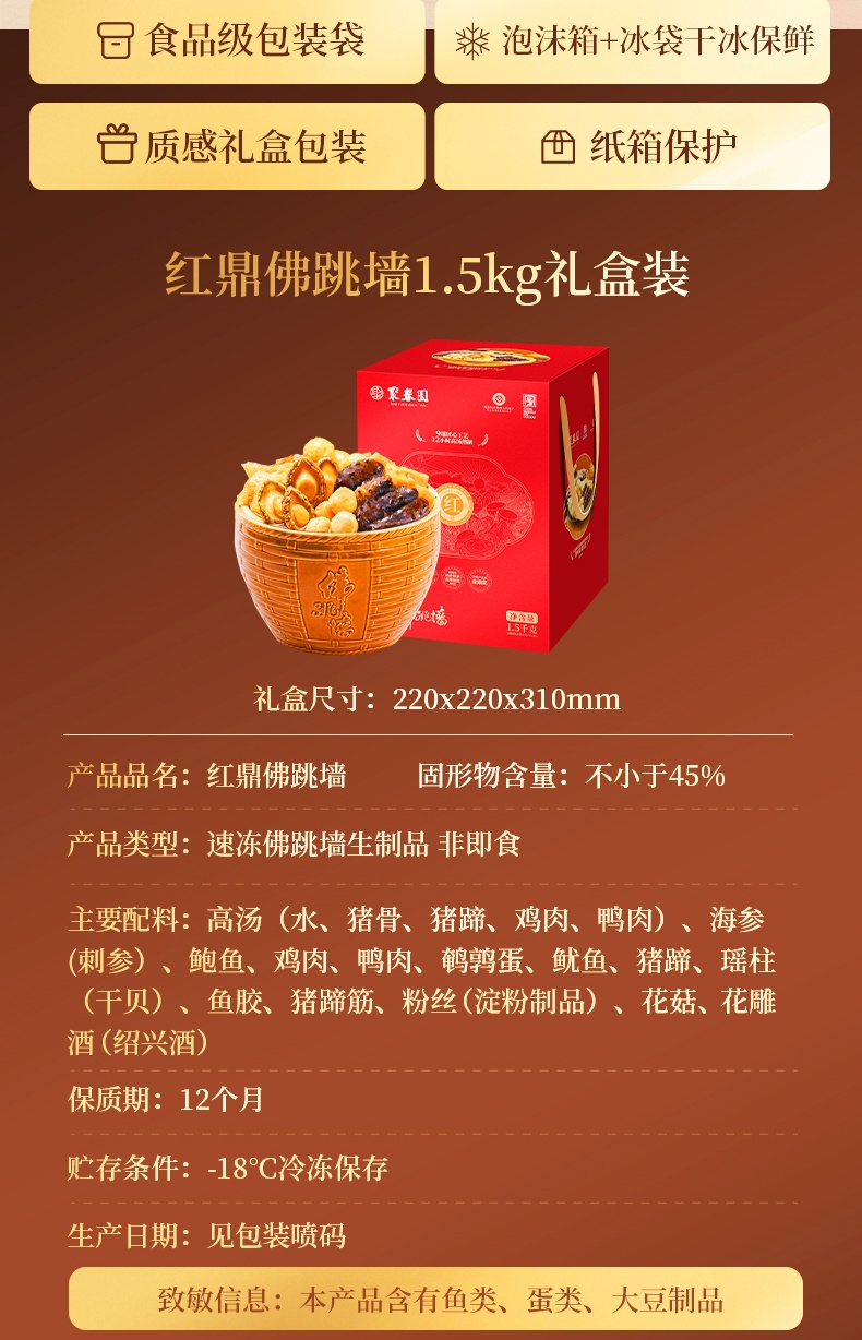 聚春园红鼎佛跳墙1500g坛装礼盒