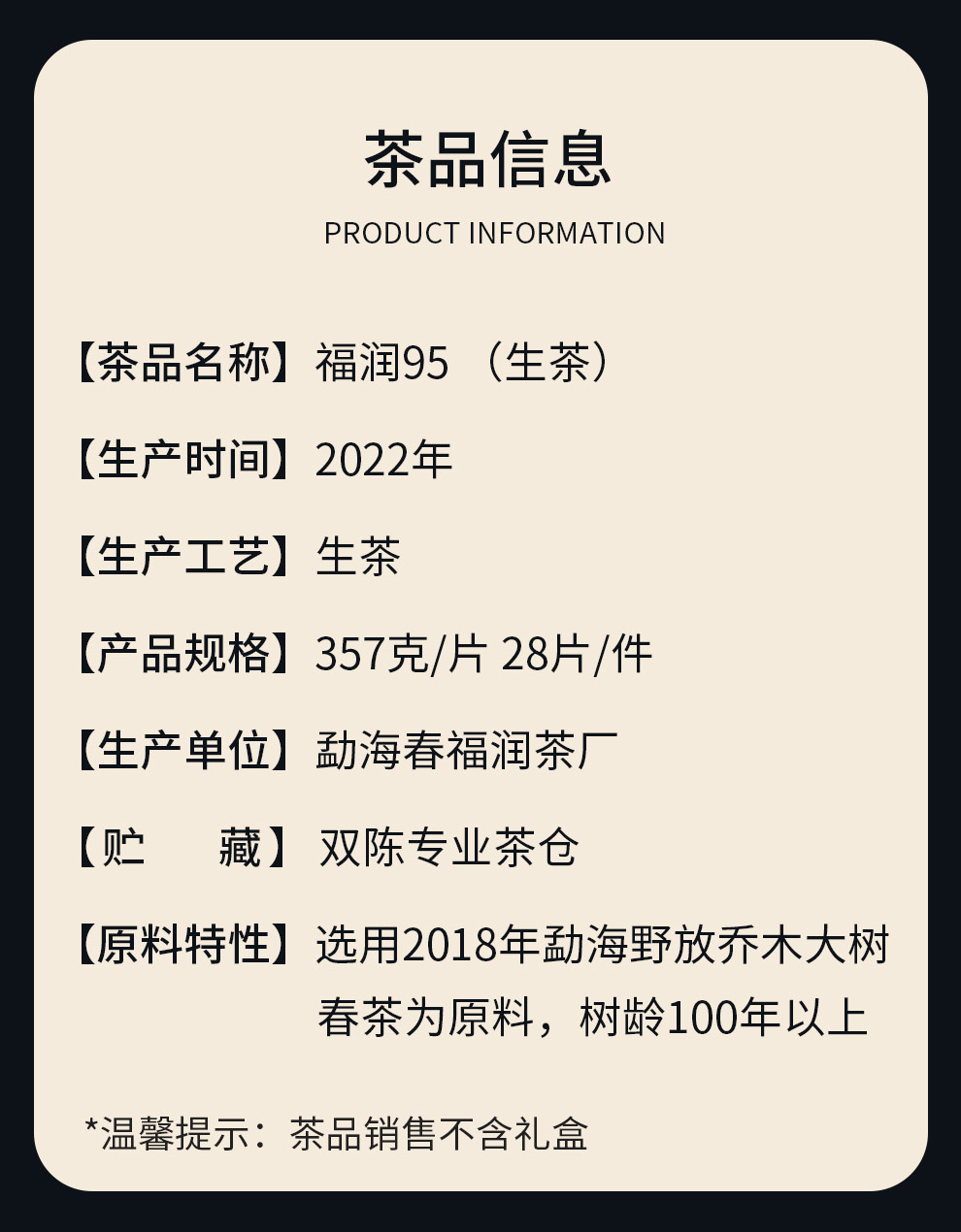 双陈2022年福润95生茶357g勐海产区云南七子饼茶