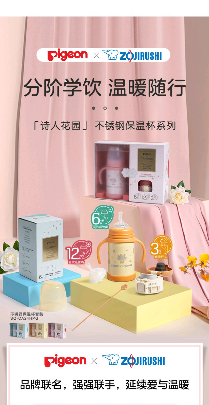 【6F】象印丨贝亲联名款保温杯/奶瓶/婴儿奶嘴杯/吸管杯6个月小月龄水杯Pigeon AA24