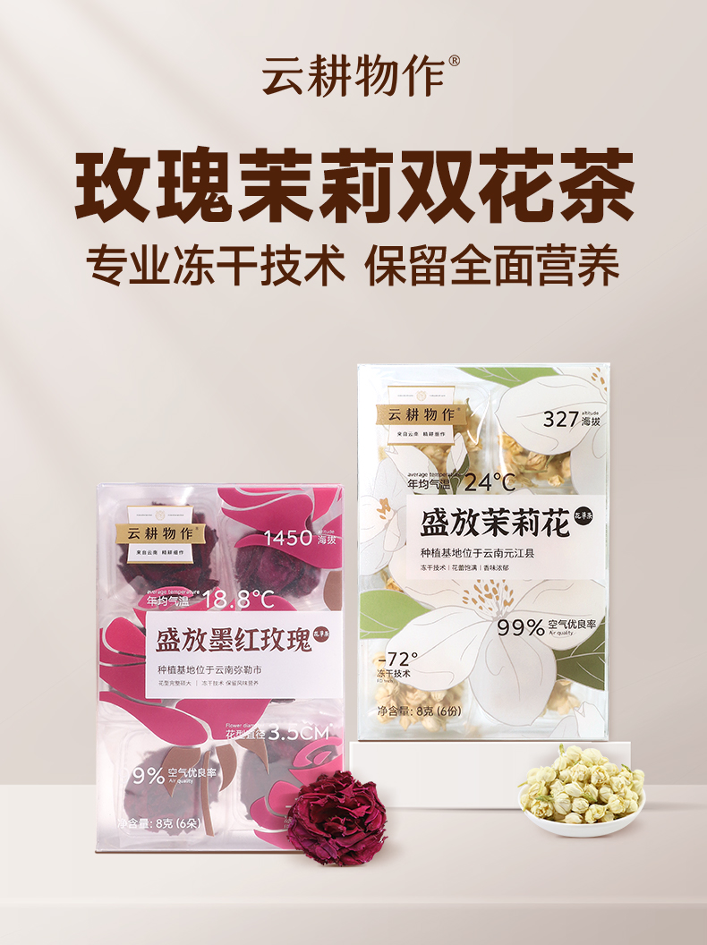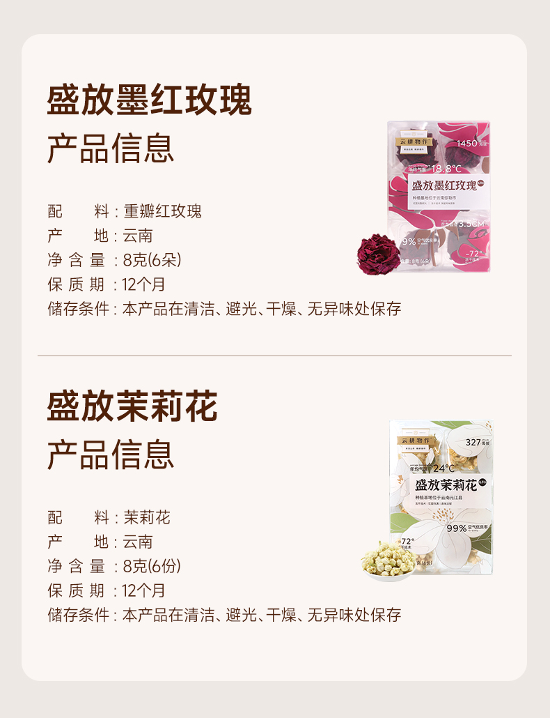 【双花组合】云耕物作盛放墨红玫瑰/茉莉花 8g/盒 独立包装6份