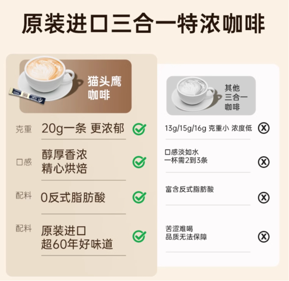 马来西亚猫头鹰OWL牌 三合一速溶特浓咖啡100g(5条盒装)