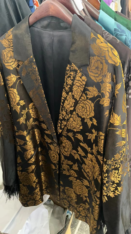 盛唐牡丹| 民国真丝老面料配鸵鸟毛西装外套-黄色