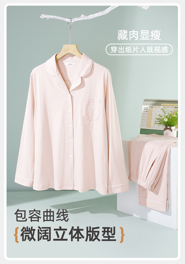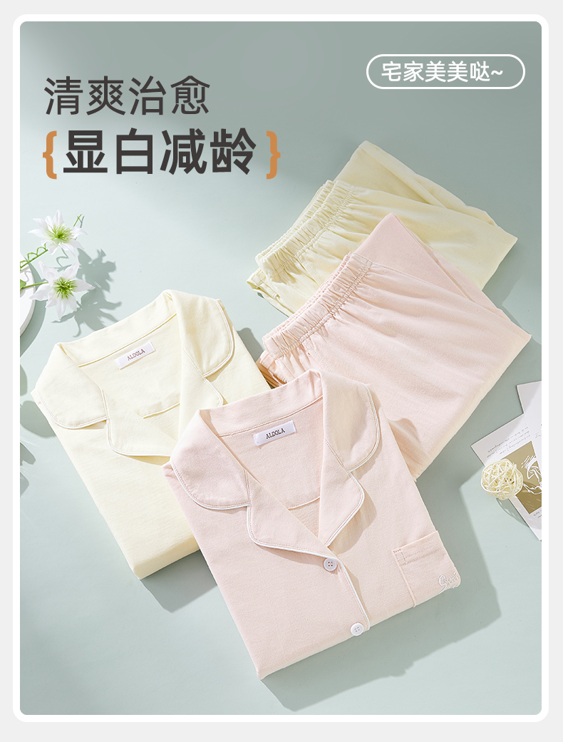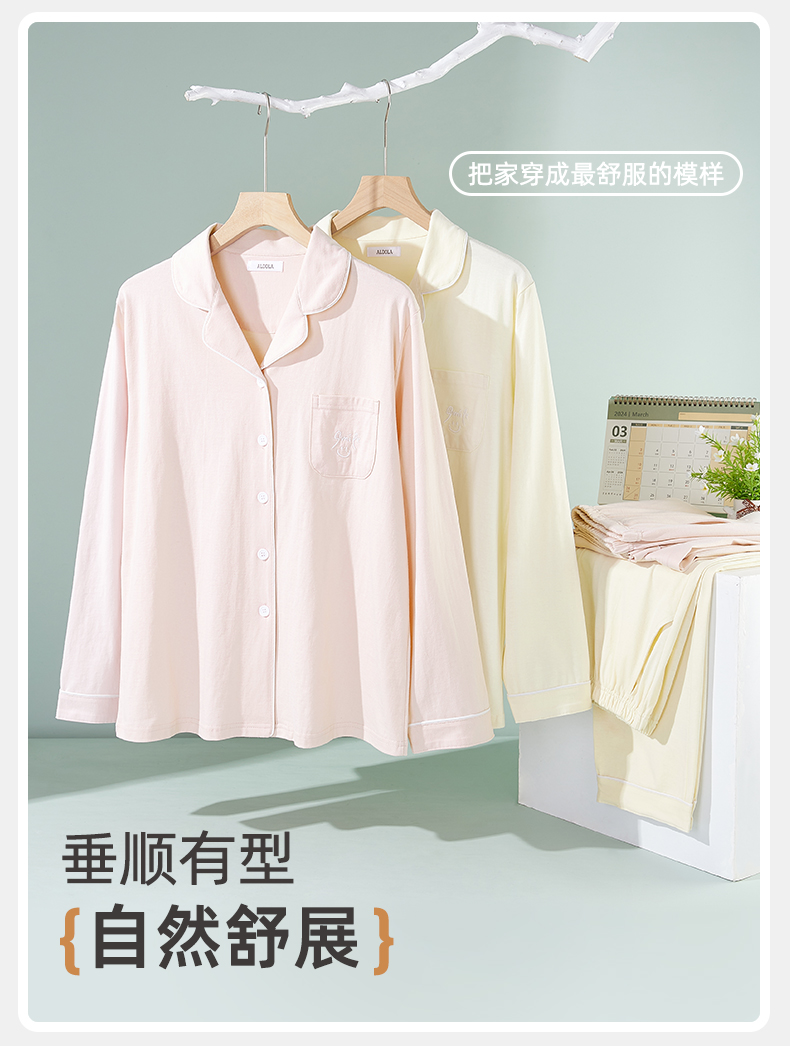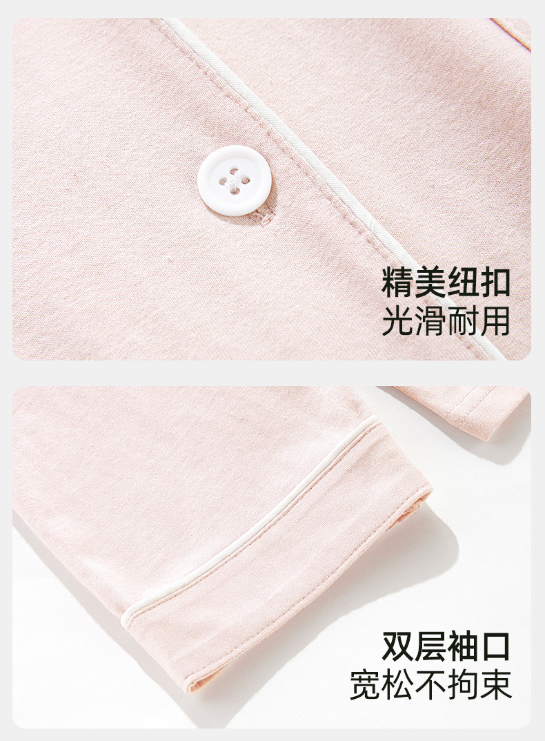 雅黛俪纯棉春秋开衫翻领长袖长裤女士家居服可外穿睡衣套装空调房