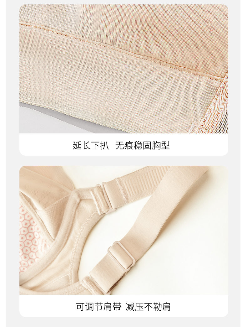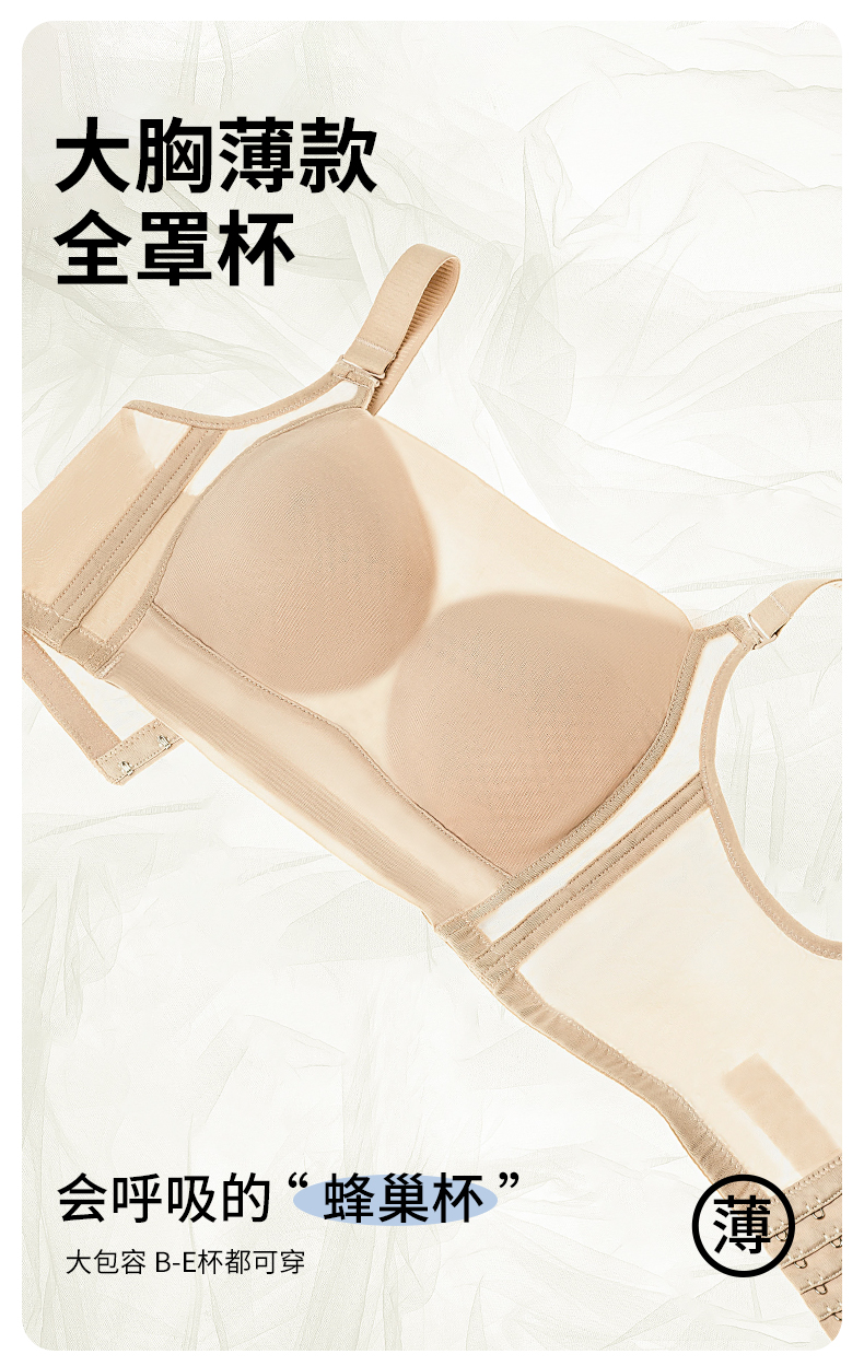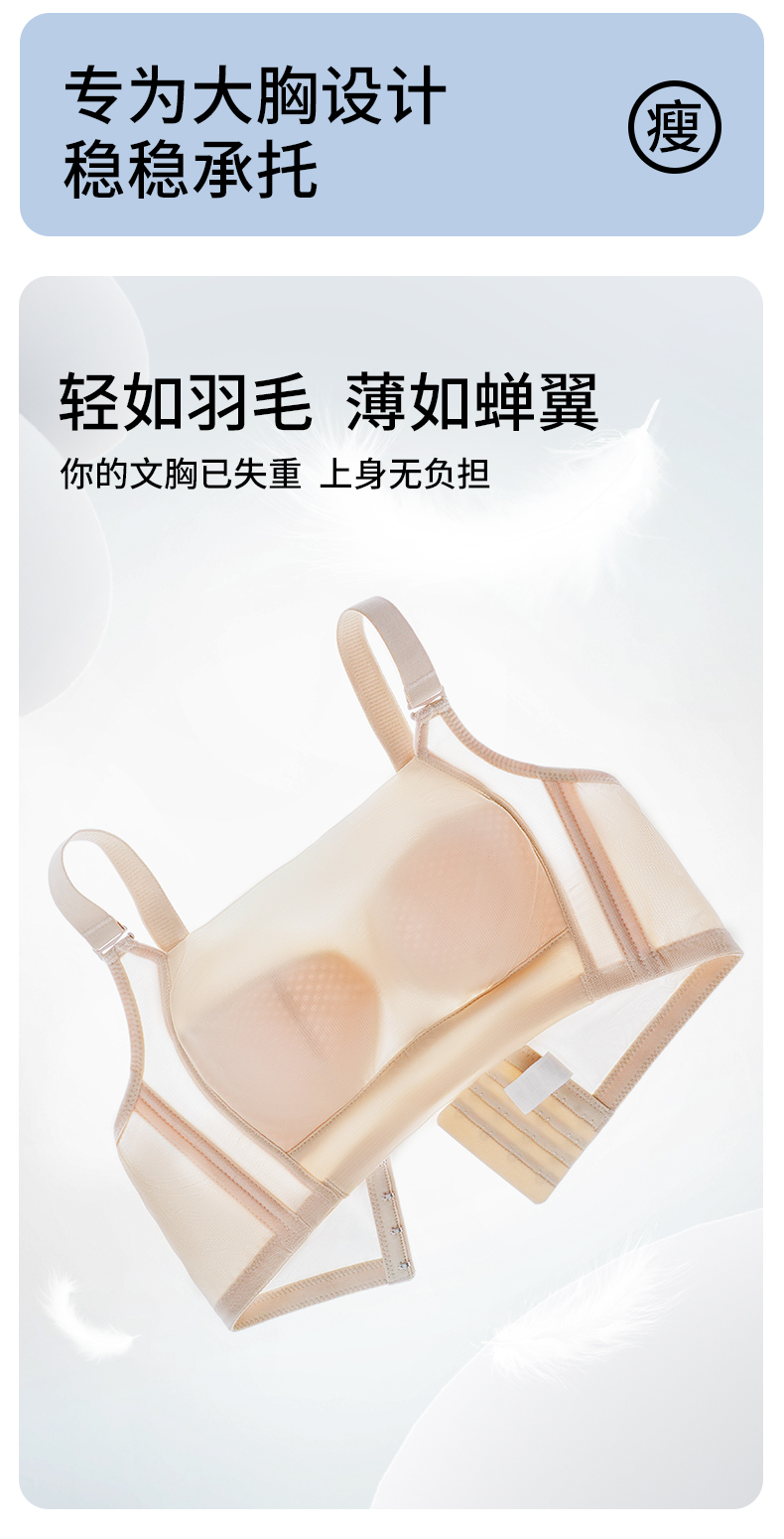 雅黛丽内衣大胸显小夏季薄款2024新款文胸收副乳防下垂调整型胸罩