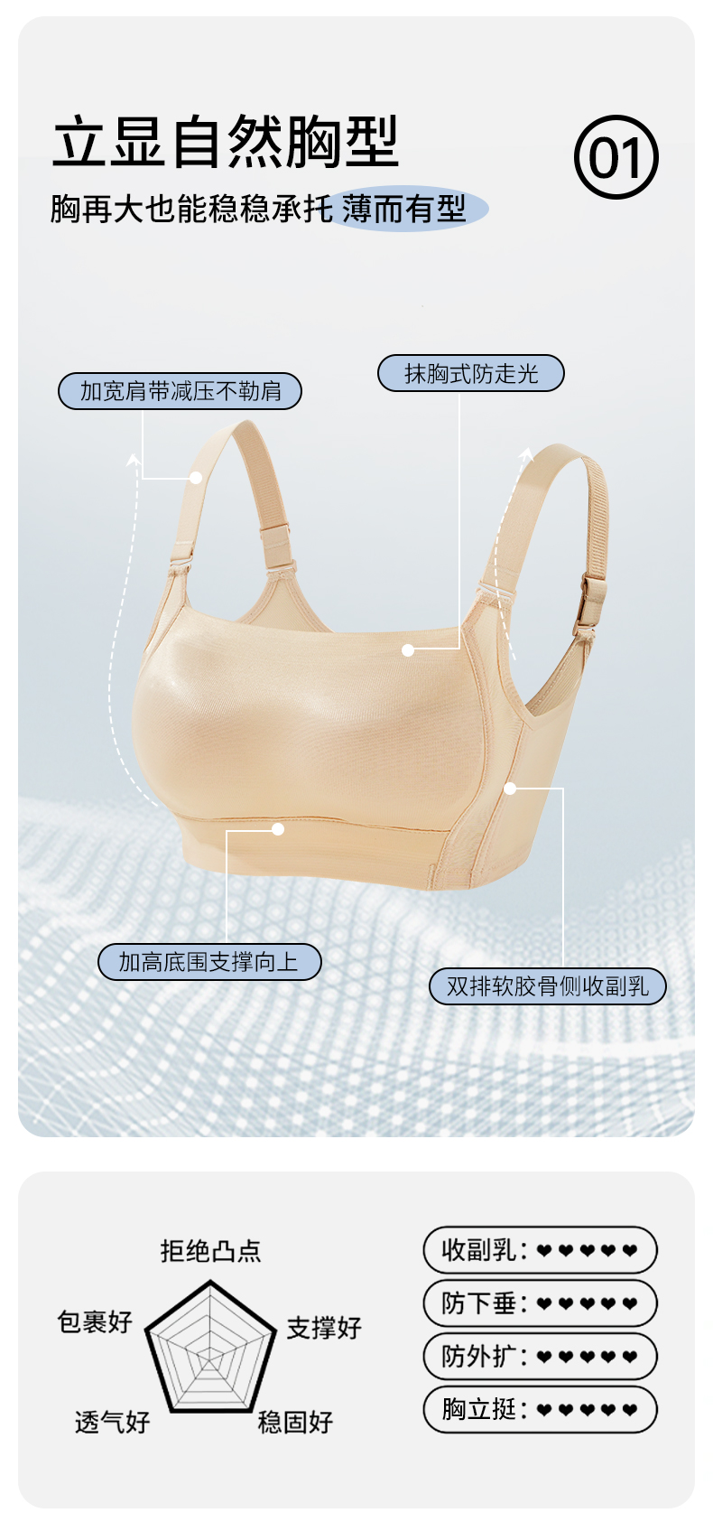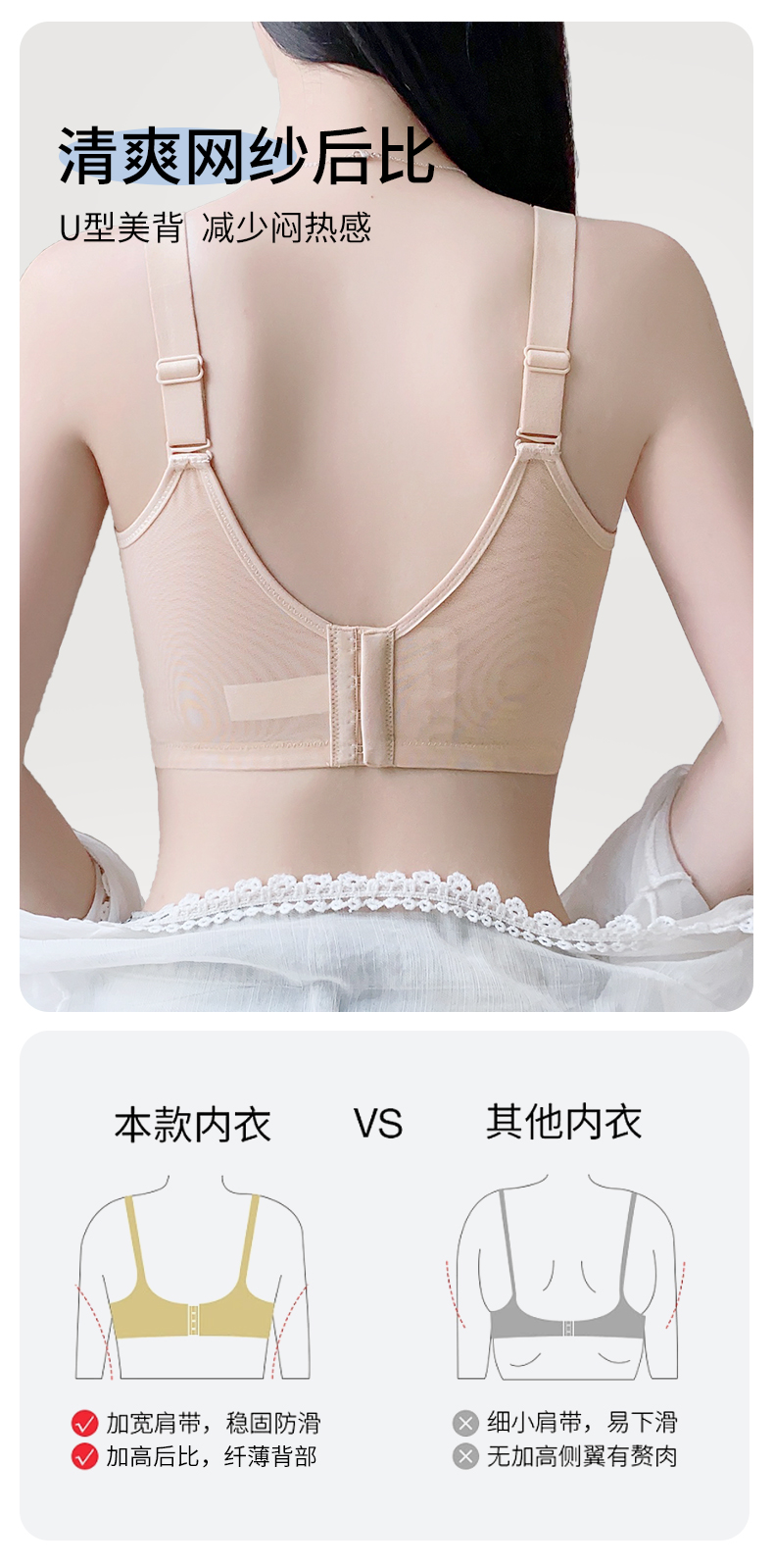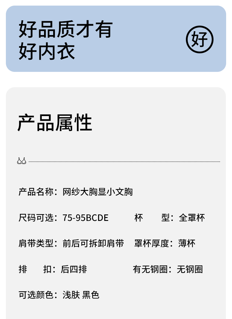 雅黛丽内衣大胸显小夏季薄款2024新款文胸收副乳防下垂调整型胸罩