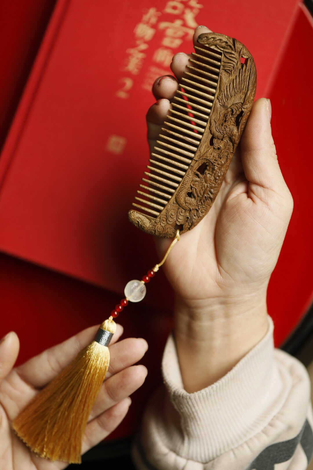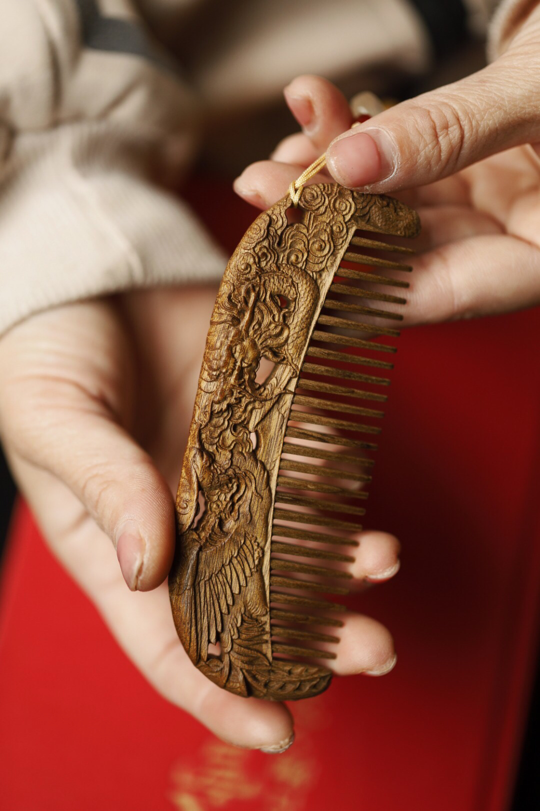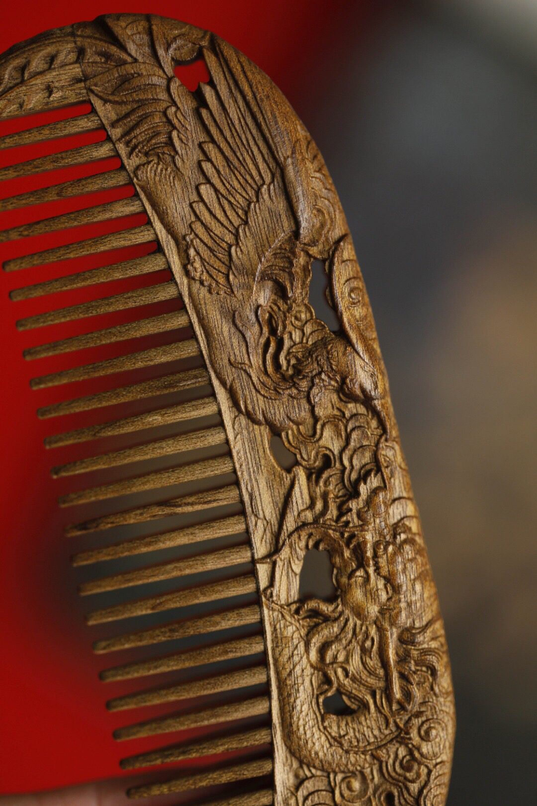 金丝楠木镂空雕刻龙凤纹,立体感强,