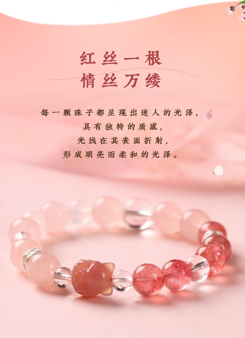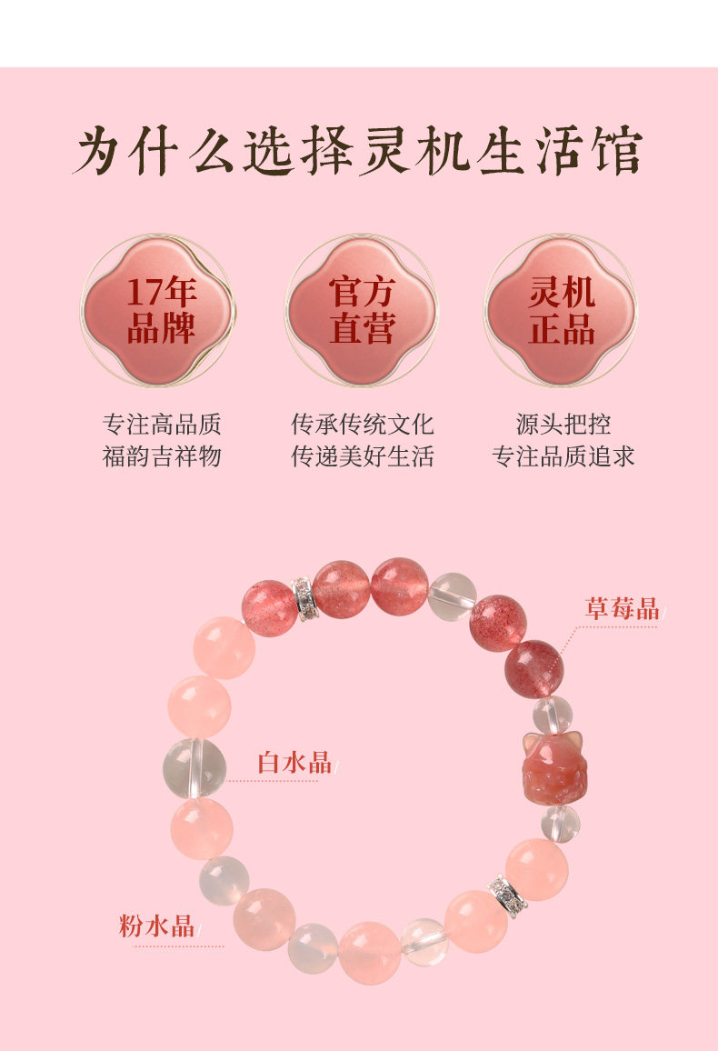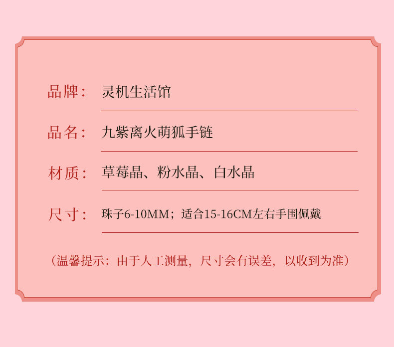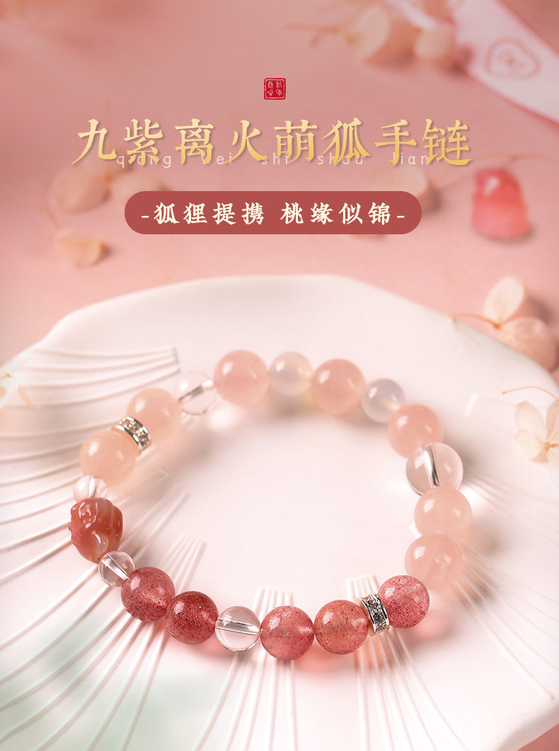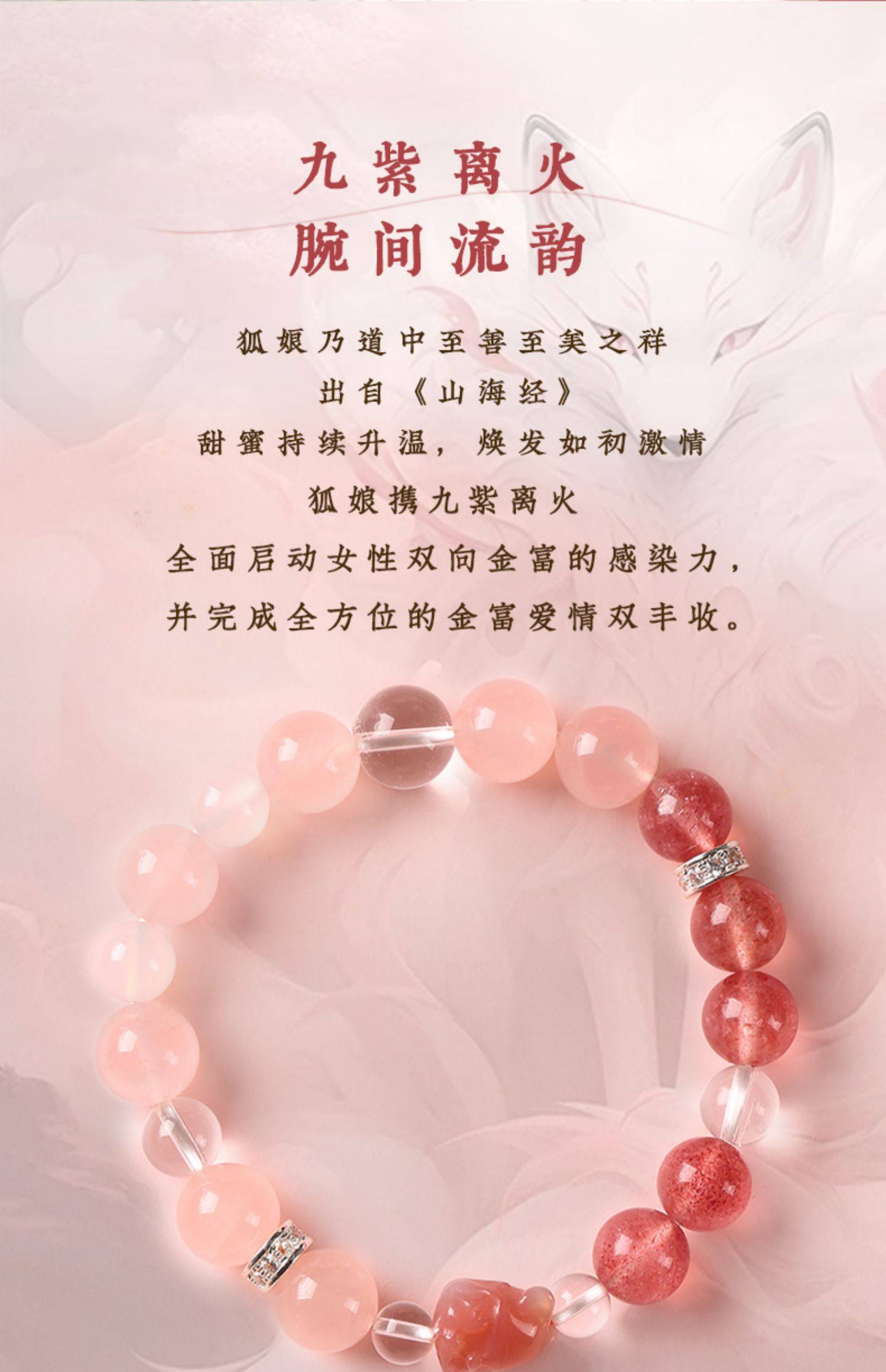 【祈愿吉品】九紫离火萌狐狸粉水晶手链女