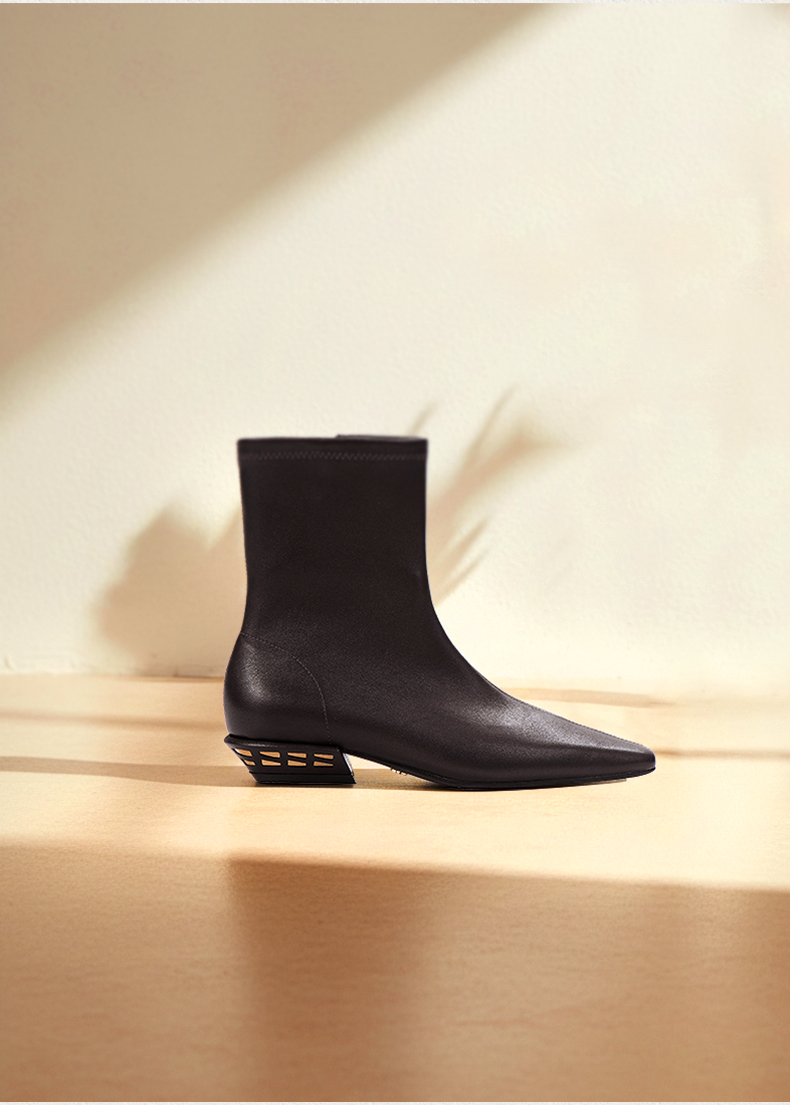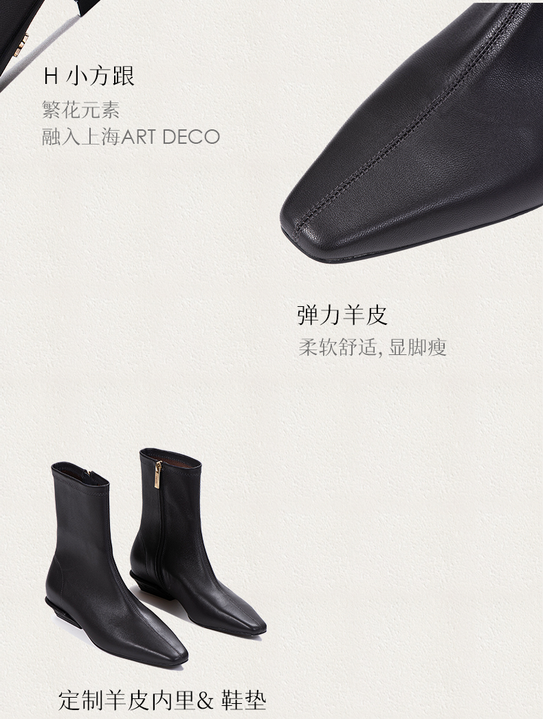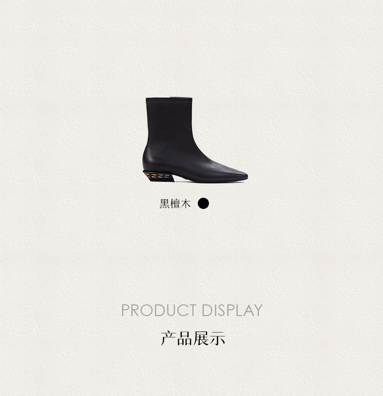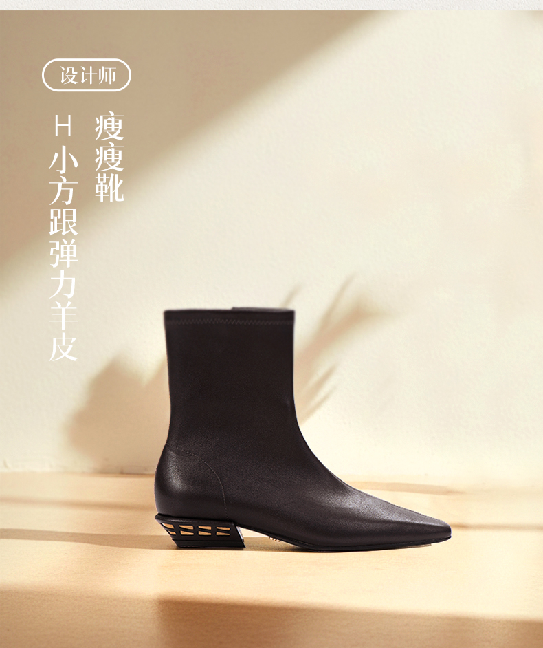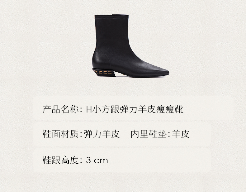 【黑檀木】heelz设计师手工鞋履|H小方跟弹力羊皮瘦瘦靴 3公分
