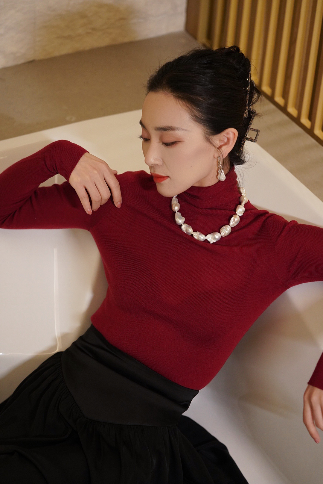 超推荐!堆堆领长袖100羊纯色百搭毛衣高领套头打底衫 2108012