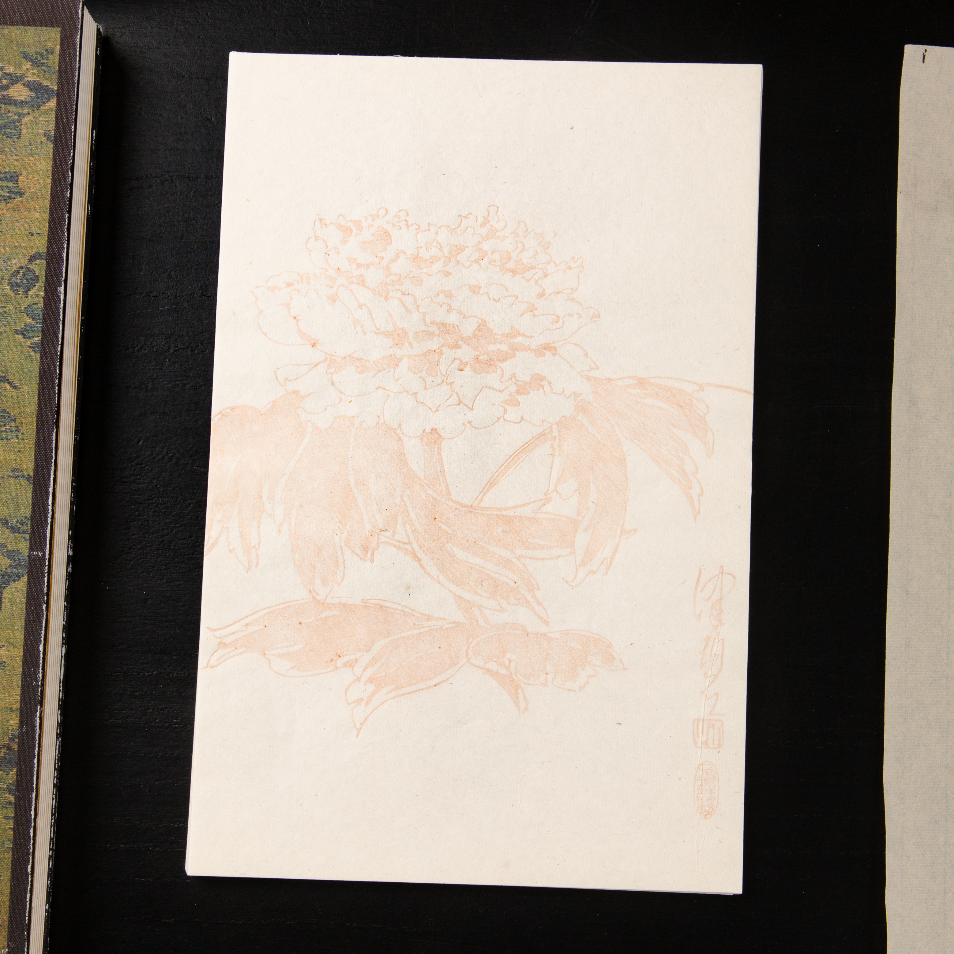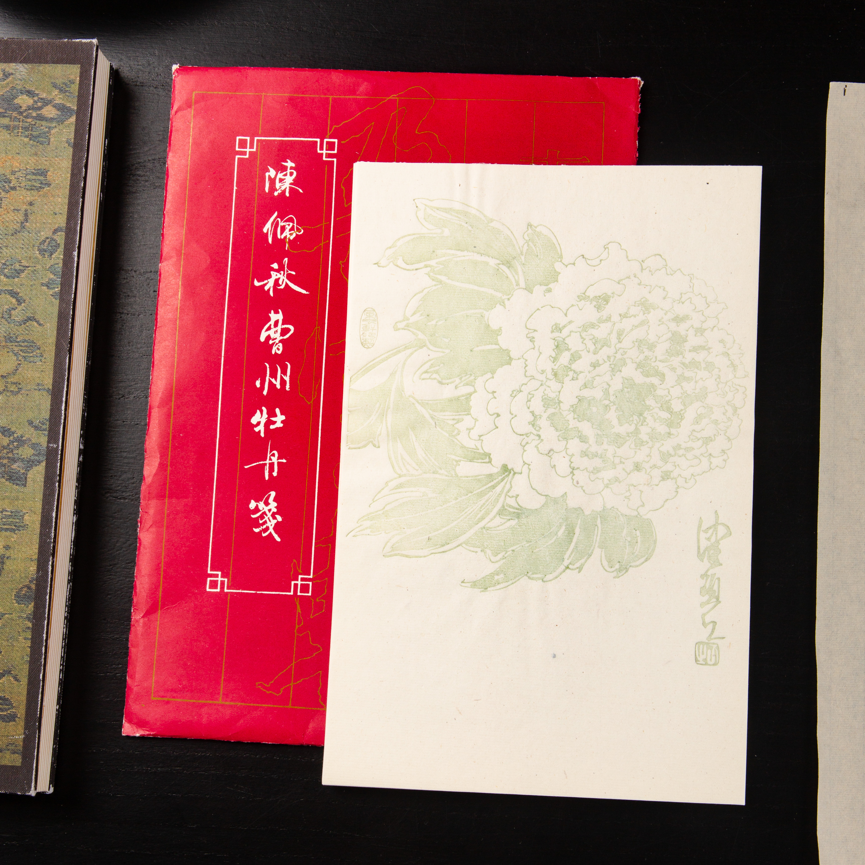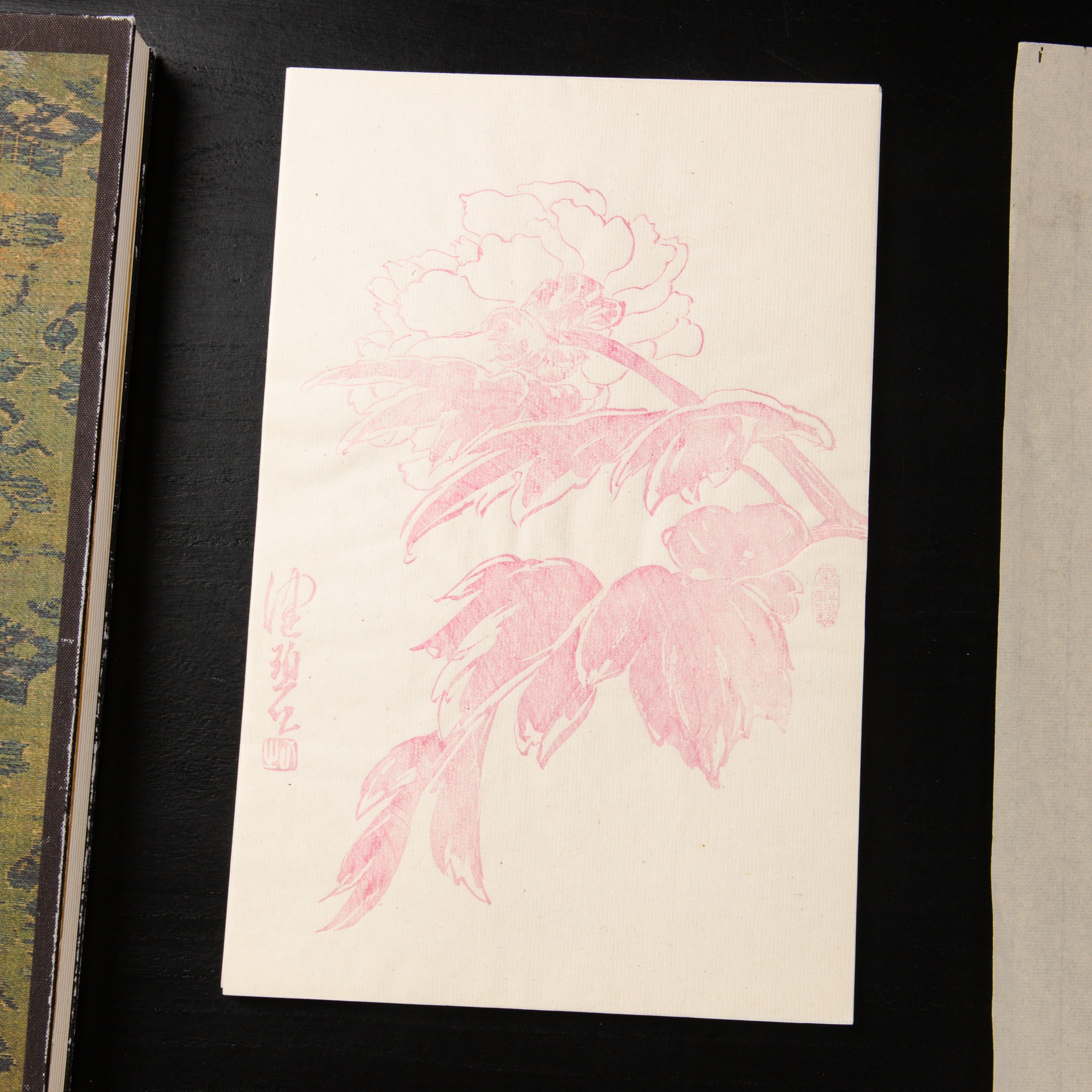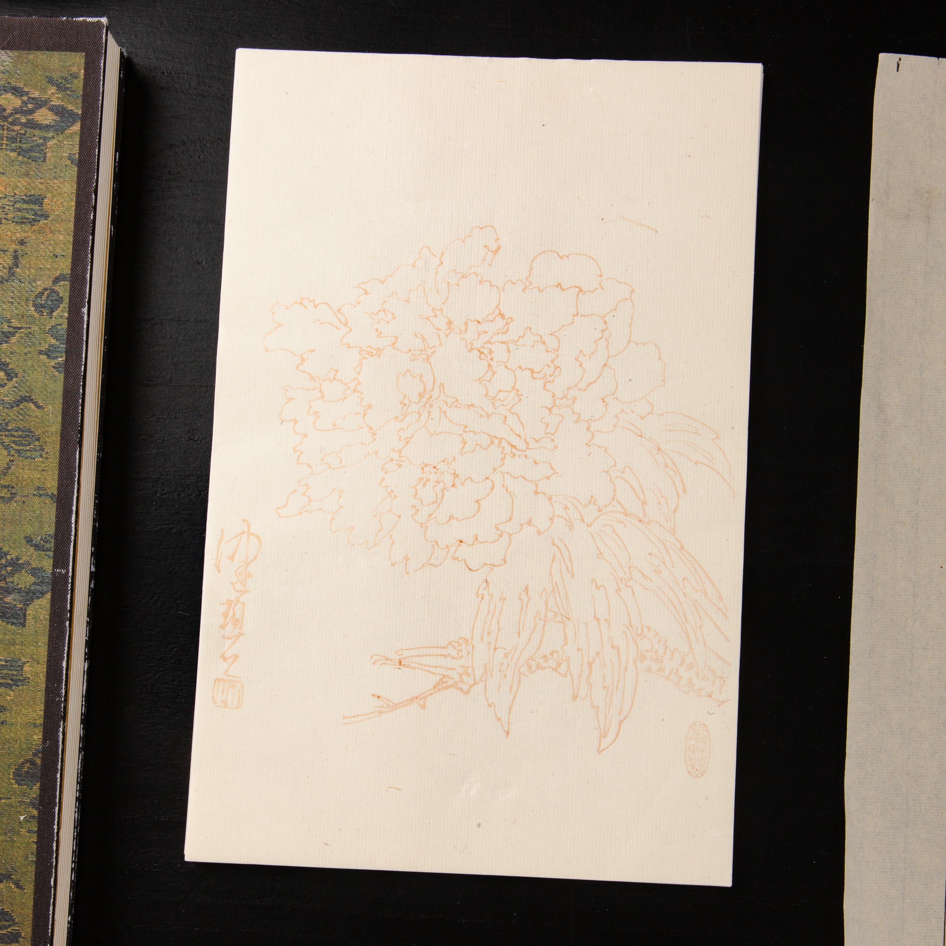 80-90年代朵云轩制木版水印《陈佩秋曹州牡丹》老信笺,一套8种图案,每种图案5张,共40张。其雕版精美,颜色雅致,纸张质地上乘。