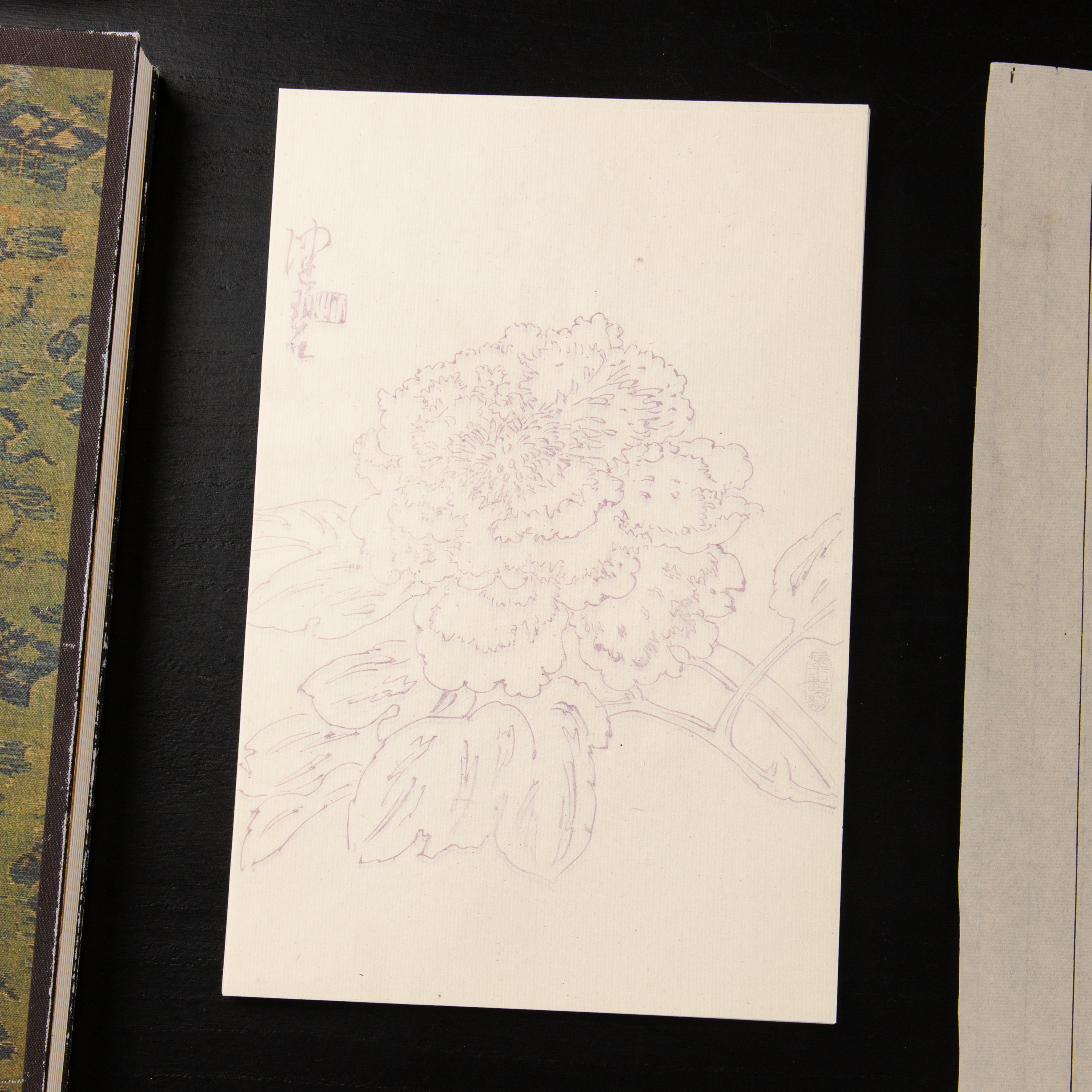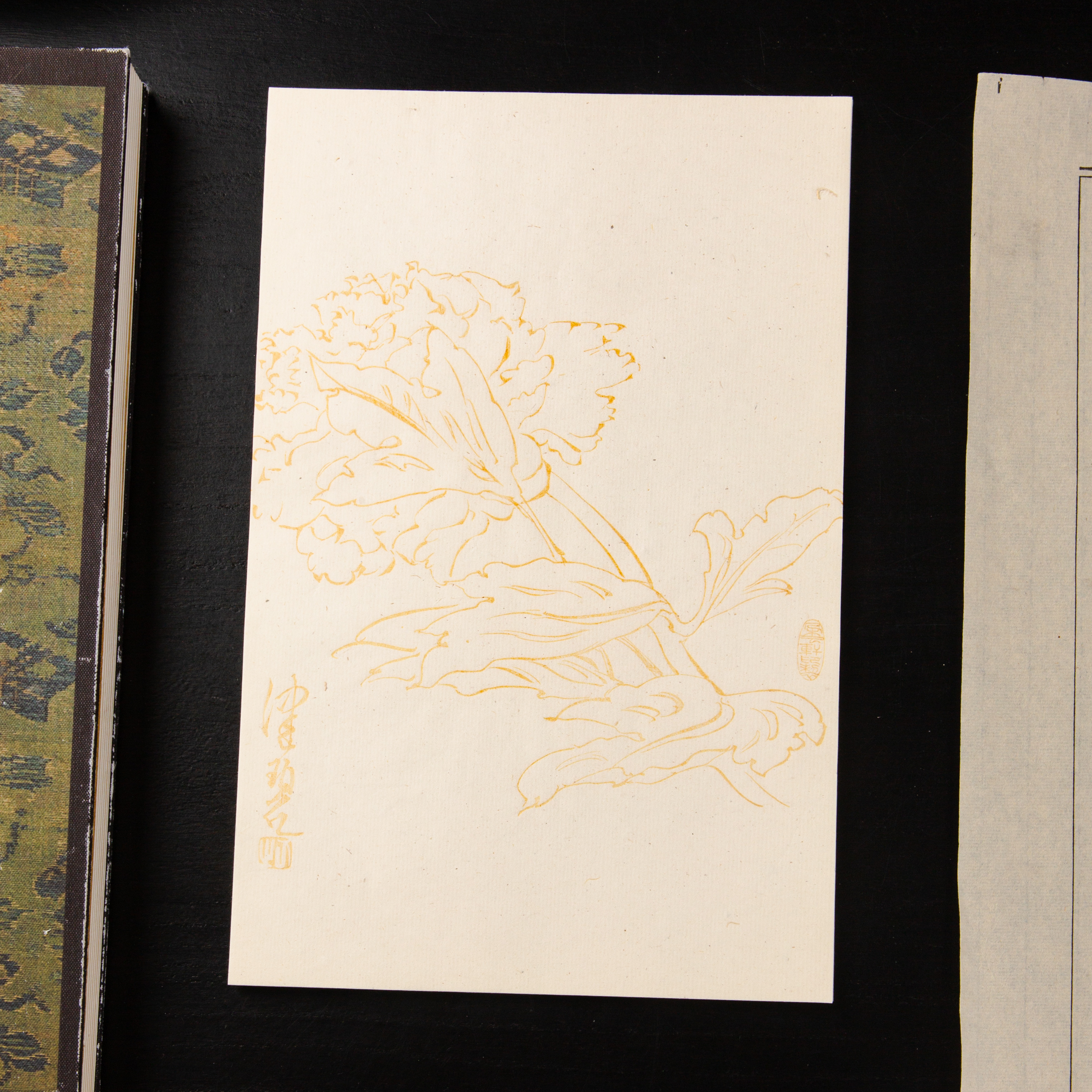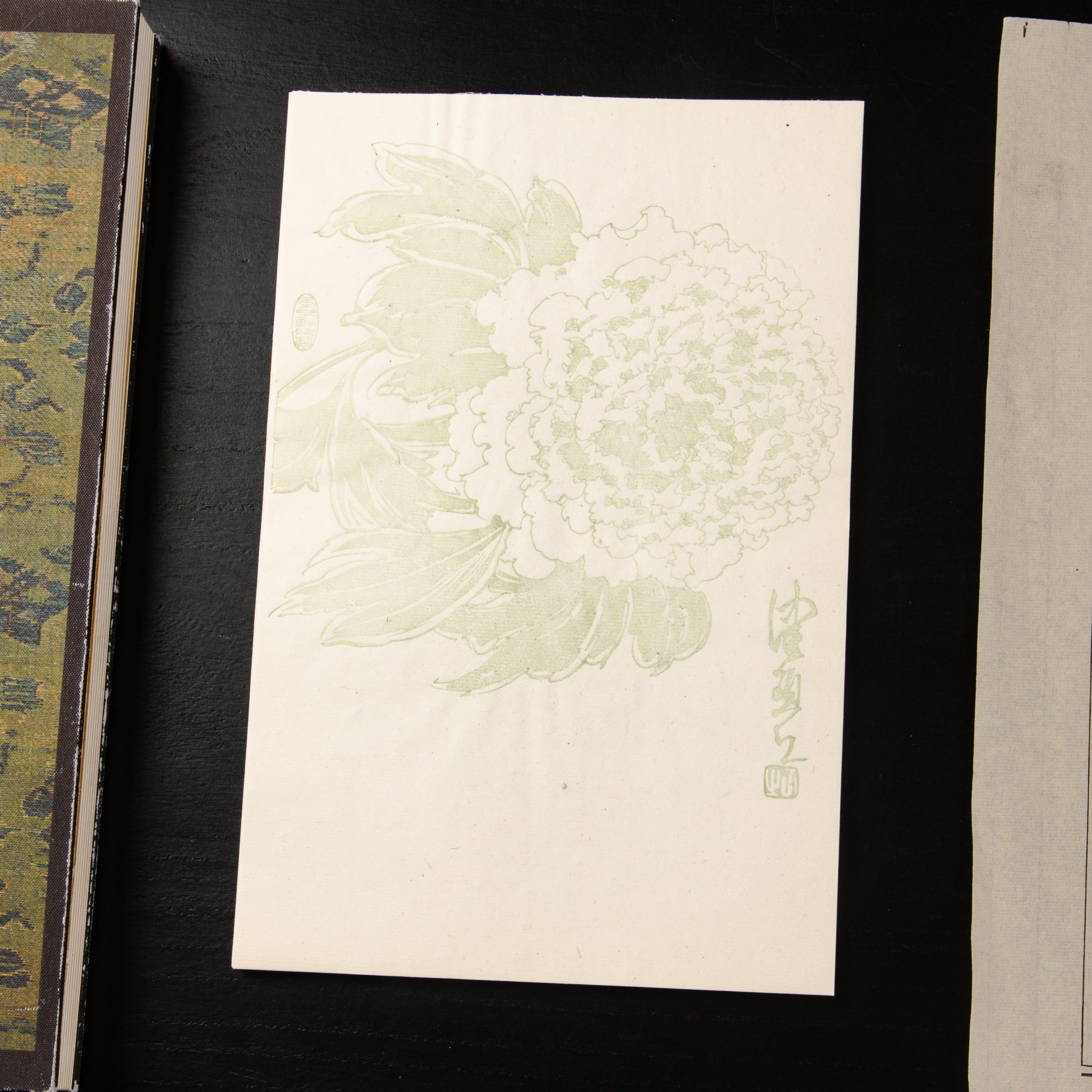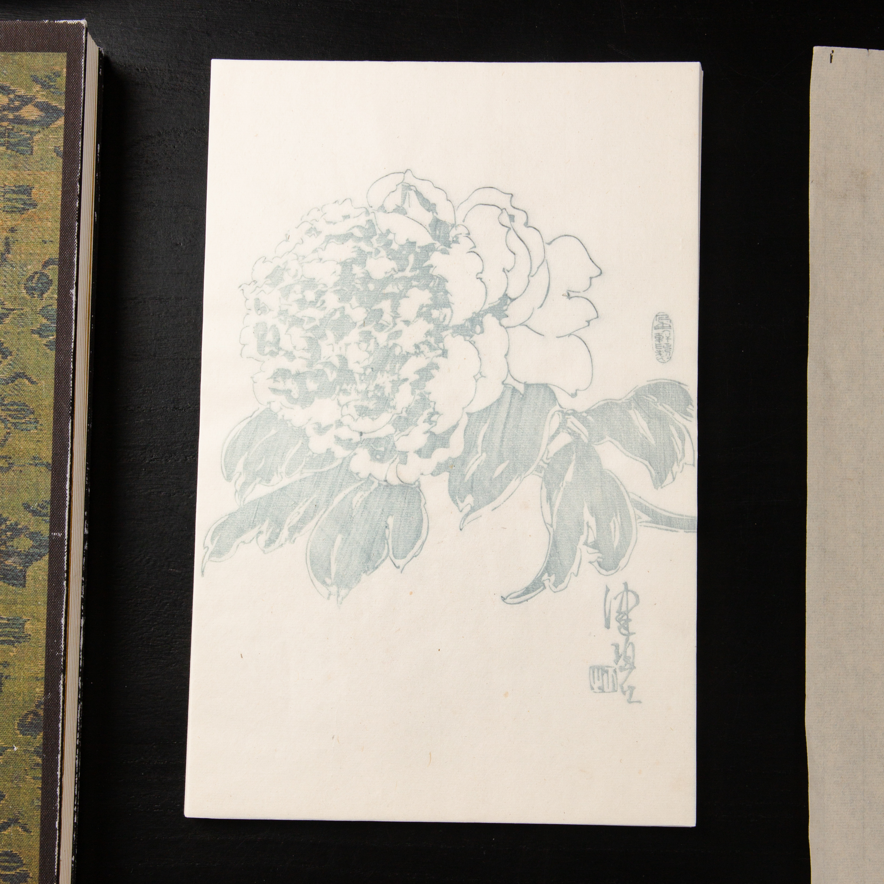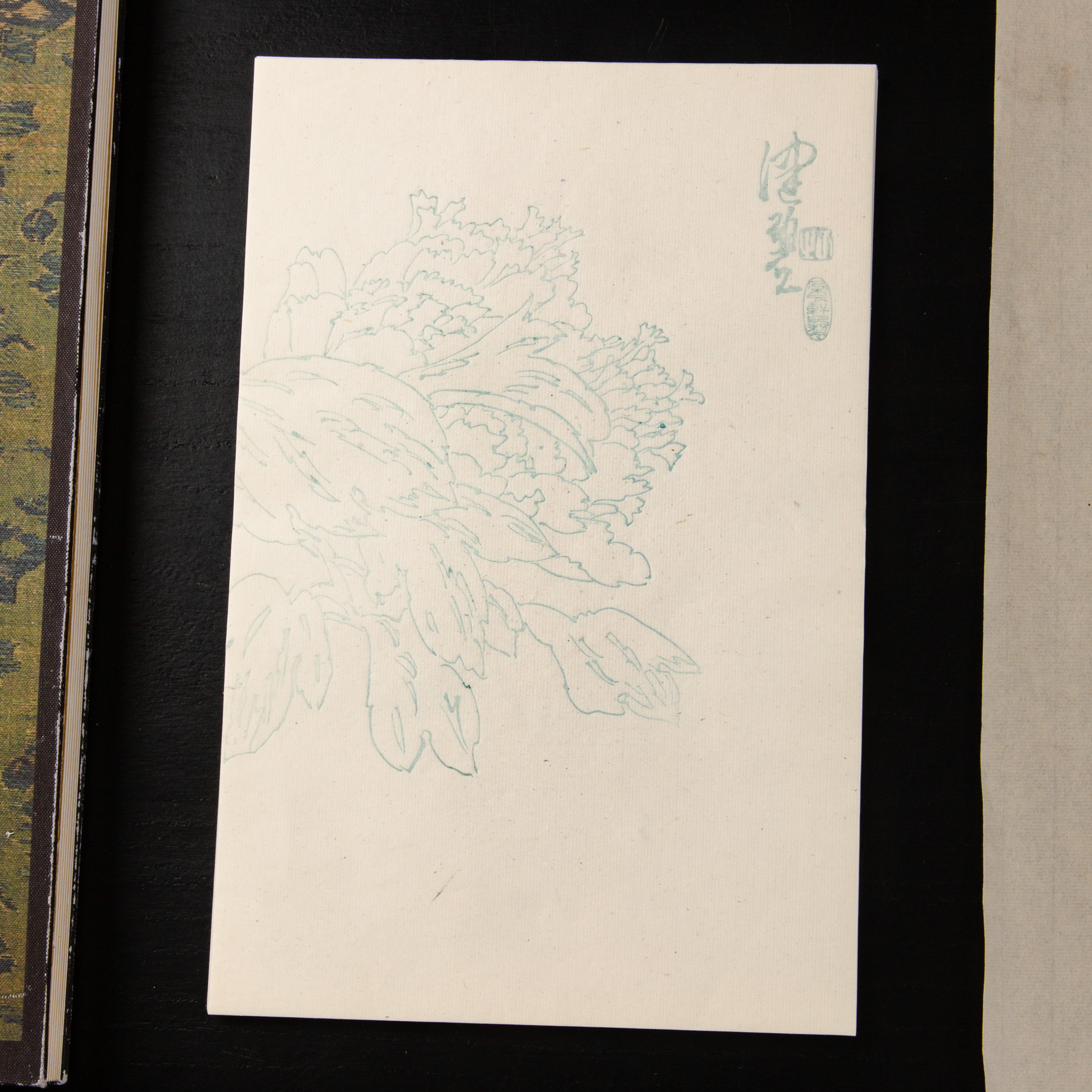 80-90年代朵云轩制木版水印《陈佩秋曹州牡丹》老信笺,一套8种图案,每种图案5张,共40张。其雕版精美,颜色雅致,纸张质地上乘。